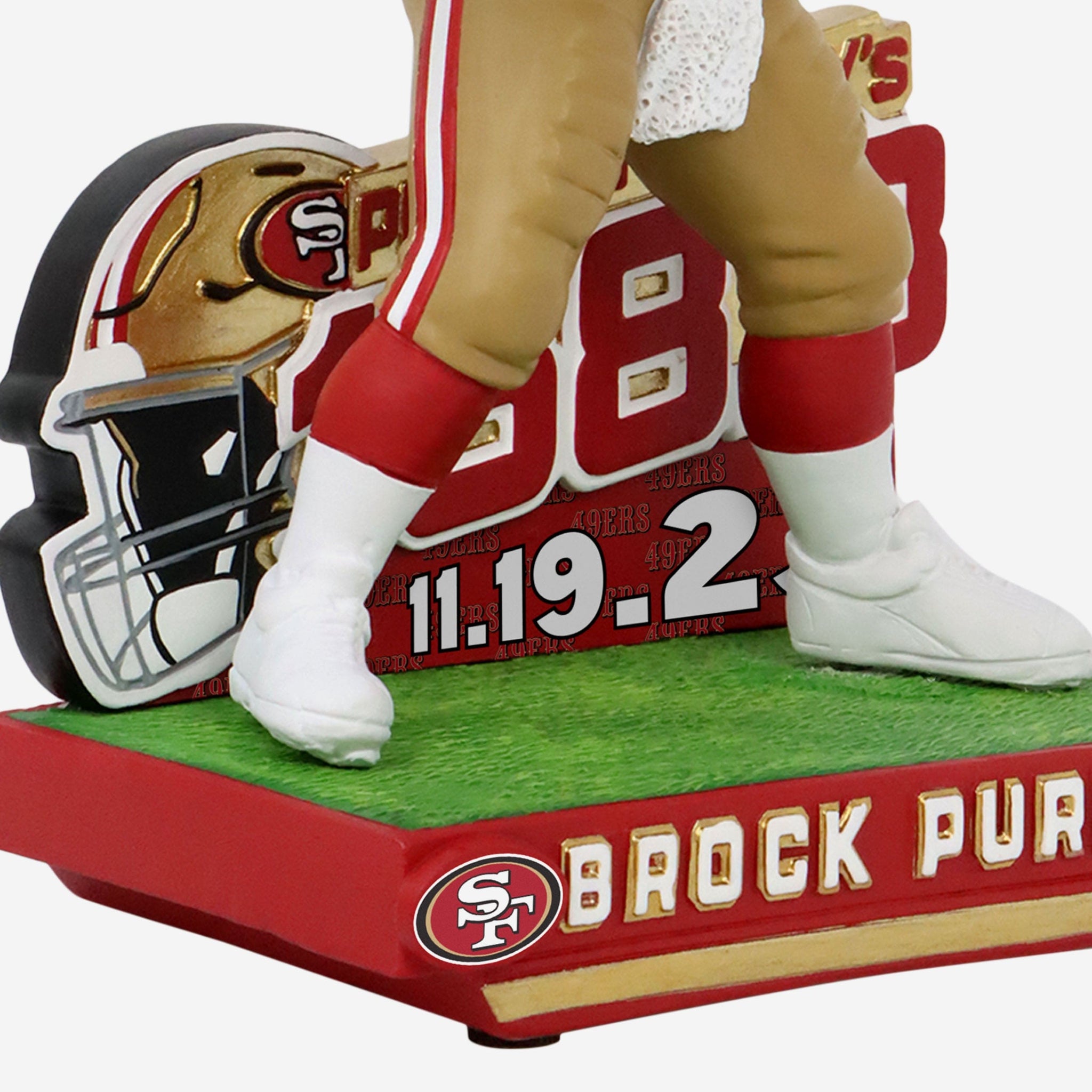 • Portrays Purdy wearing his red and gold gameday uniform in an action pose, ready to make the play of the game