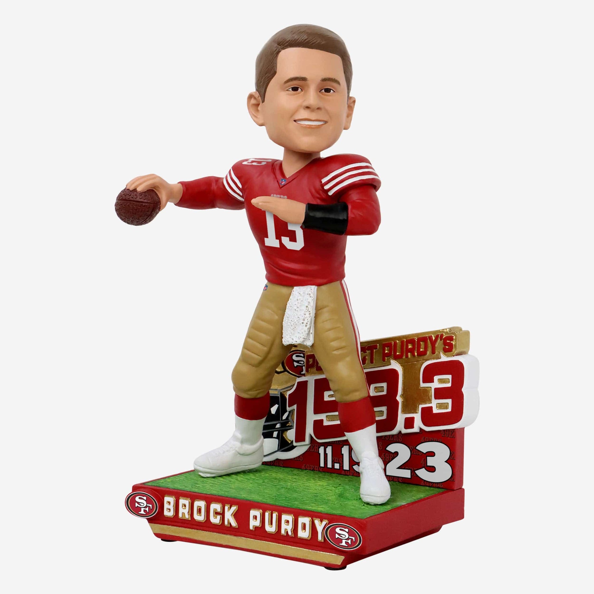 Brock Purdy posted a perfect passer rating en route to a truly Pur-fect day. Immortalize that impeccable performance in your collection with this Brock Purdy San Francisco 49ers Perfect Day Bobblehead.