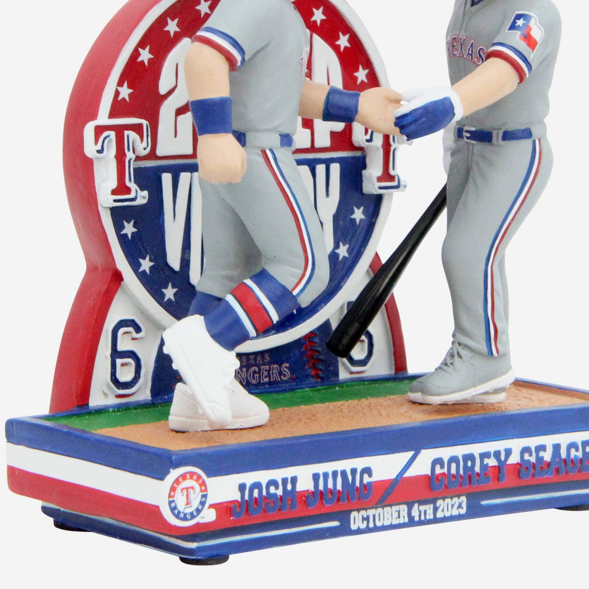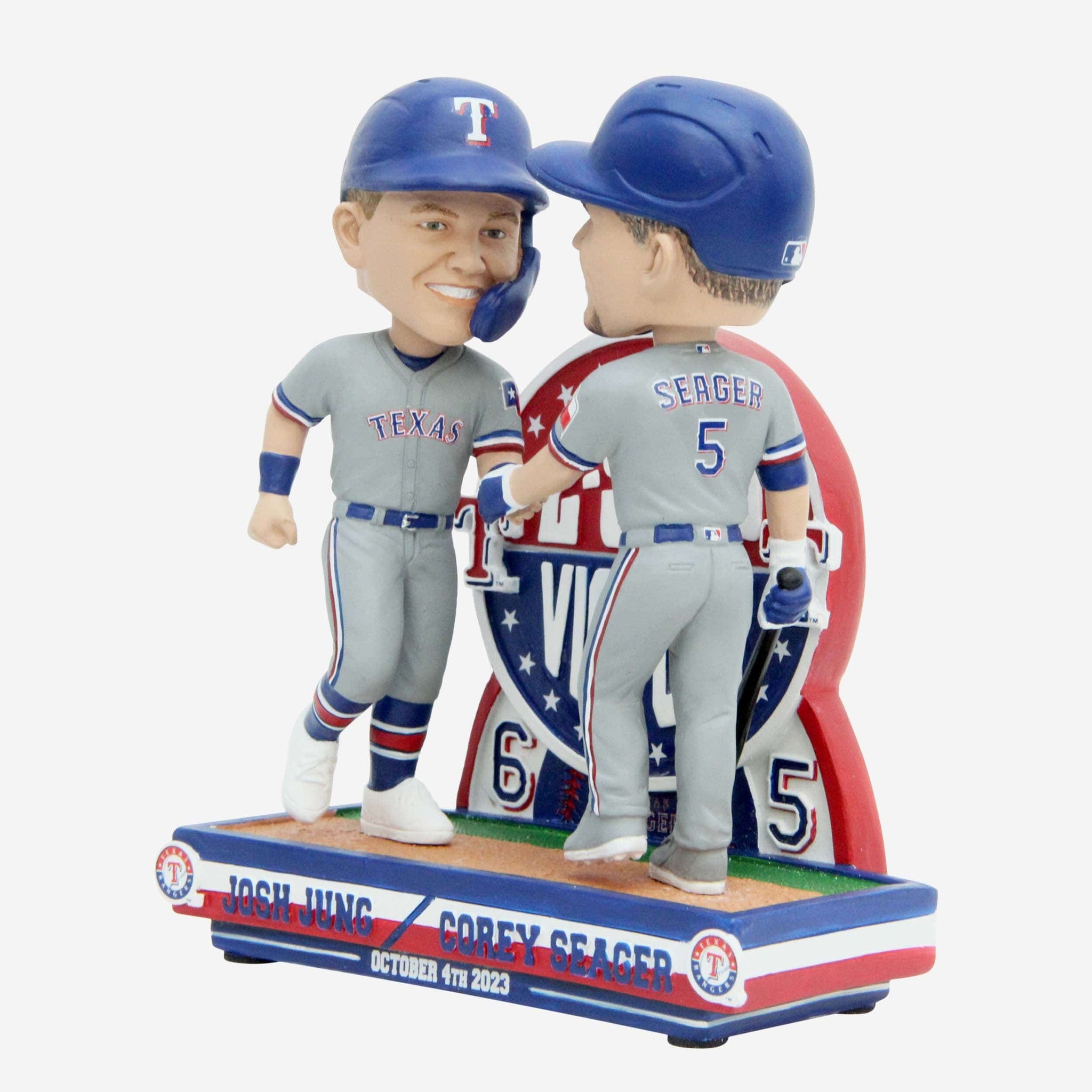 Everything's bigger in Texas, including playoff wins. Mosey on into the next round with the Corey Seager & Josh Jung Texas Rangers 2023 Wild Card Texas Two-Step Victory Dual Bobblehead.