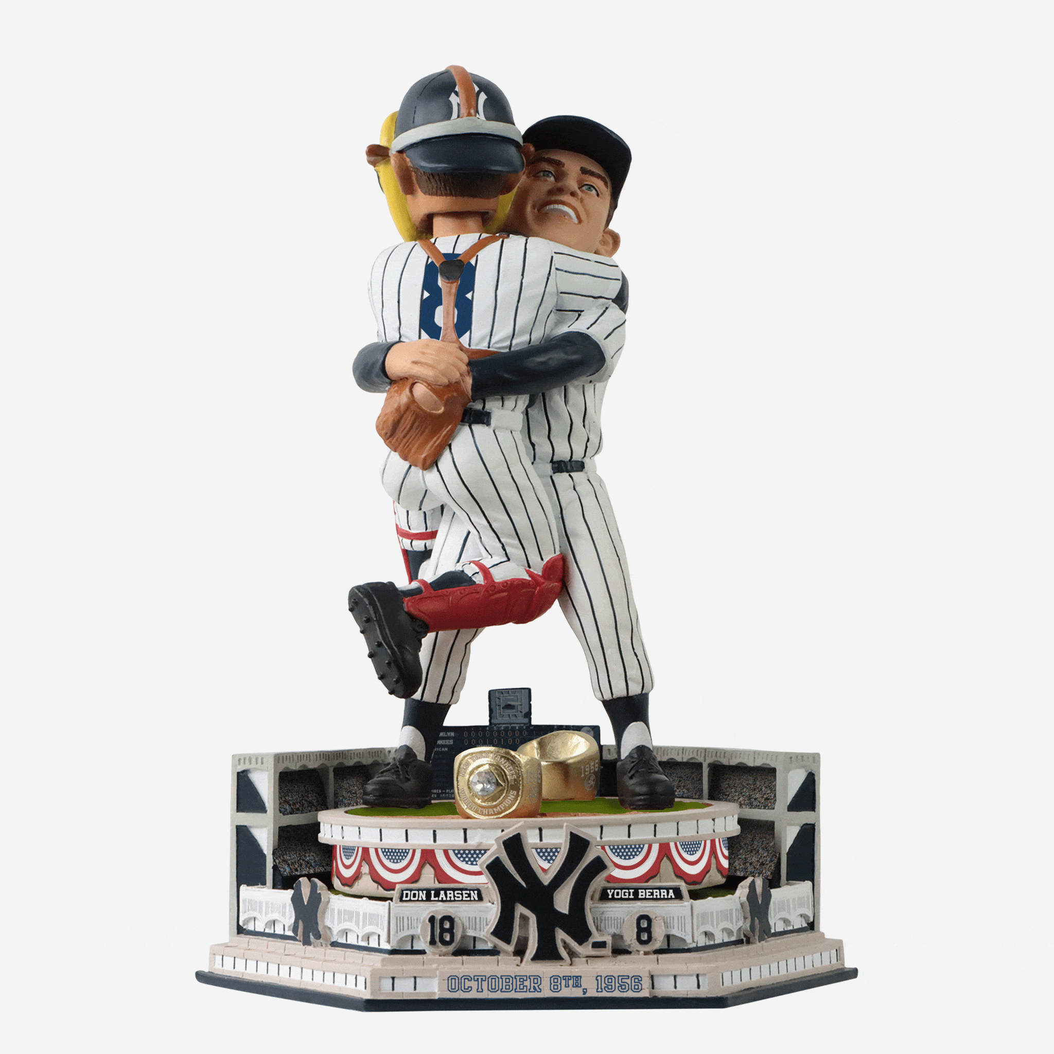 60+ years later, one of the most amazing achievements in World Series history lives on. Immortalize this historic connection with the Don Larsen & Yogi Berra New York Yankees Perfect Game Dual Spinner Bobblehead.