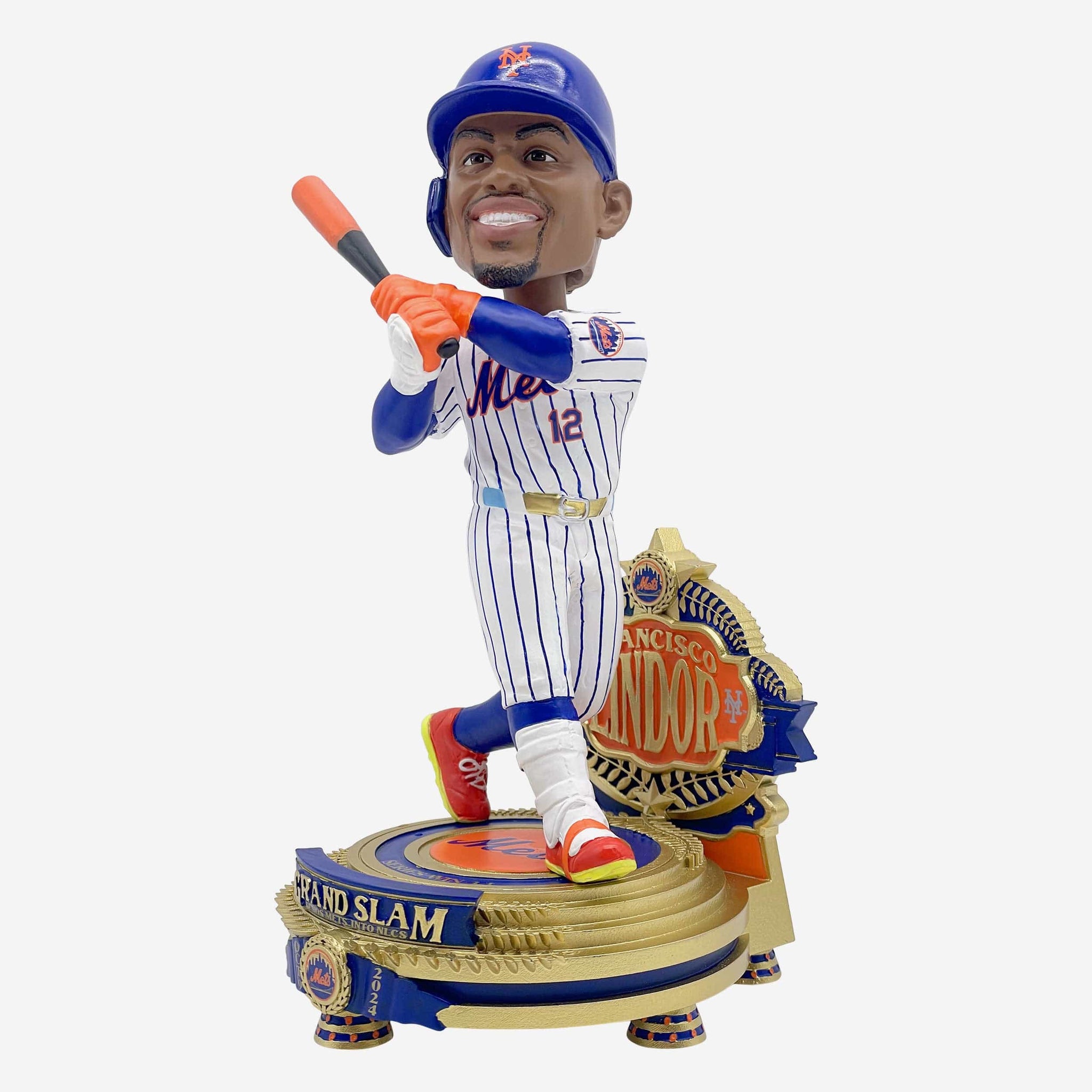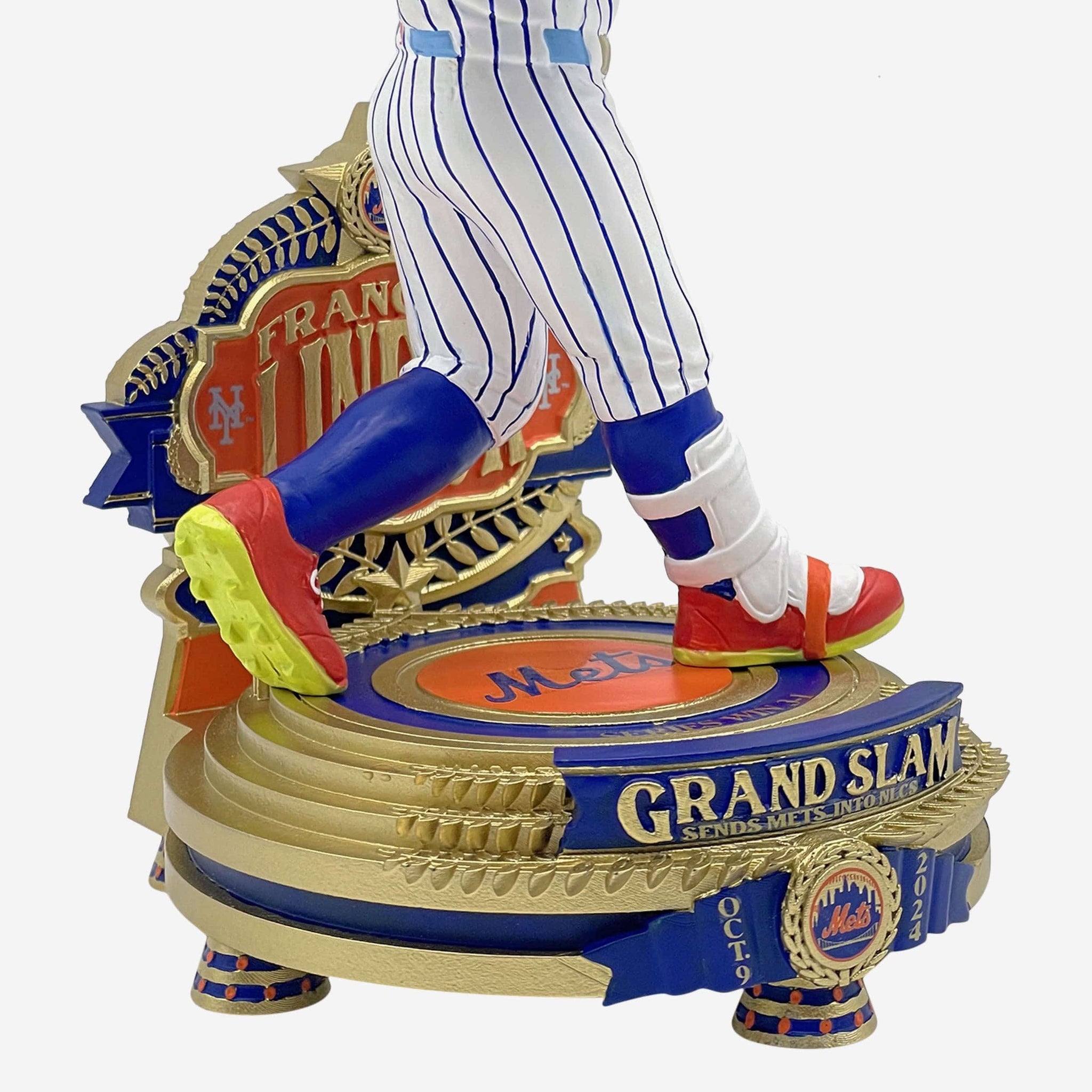 • ”GRAND SLAM SENDS METS INTO NLCS” and “OCT. 9 2024” text displays on front of base to bring your fancave some lindsanity