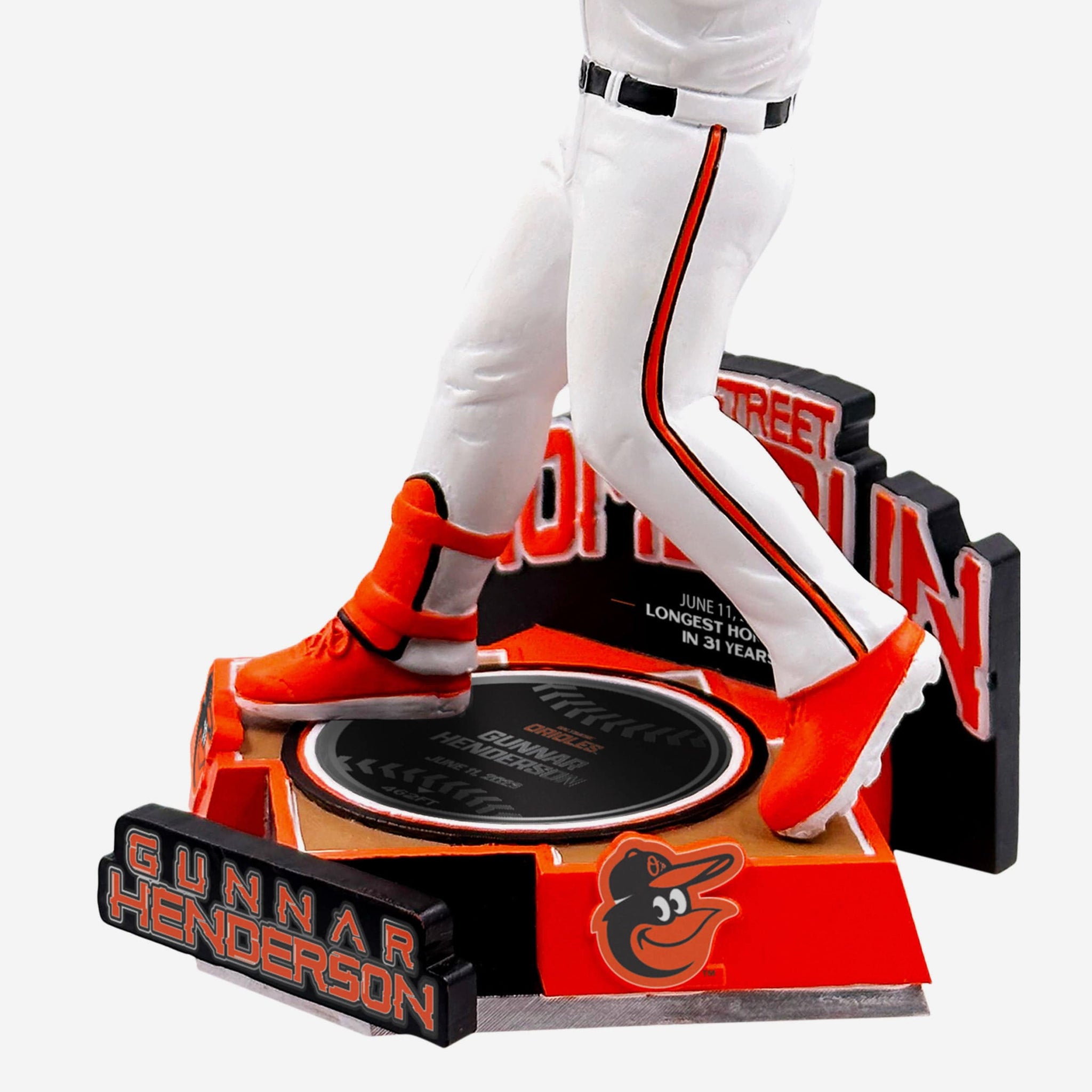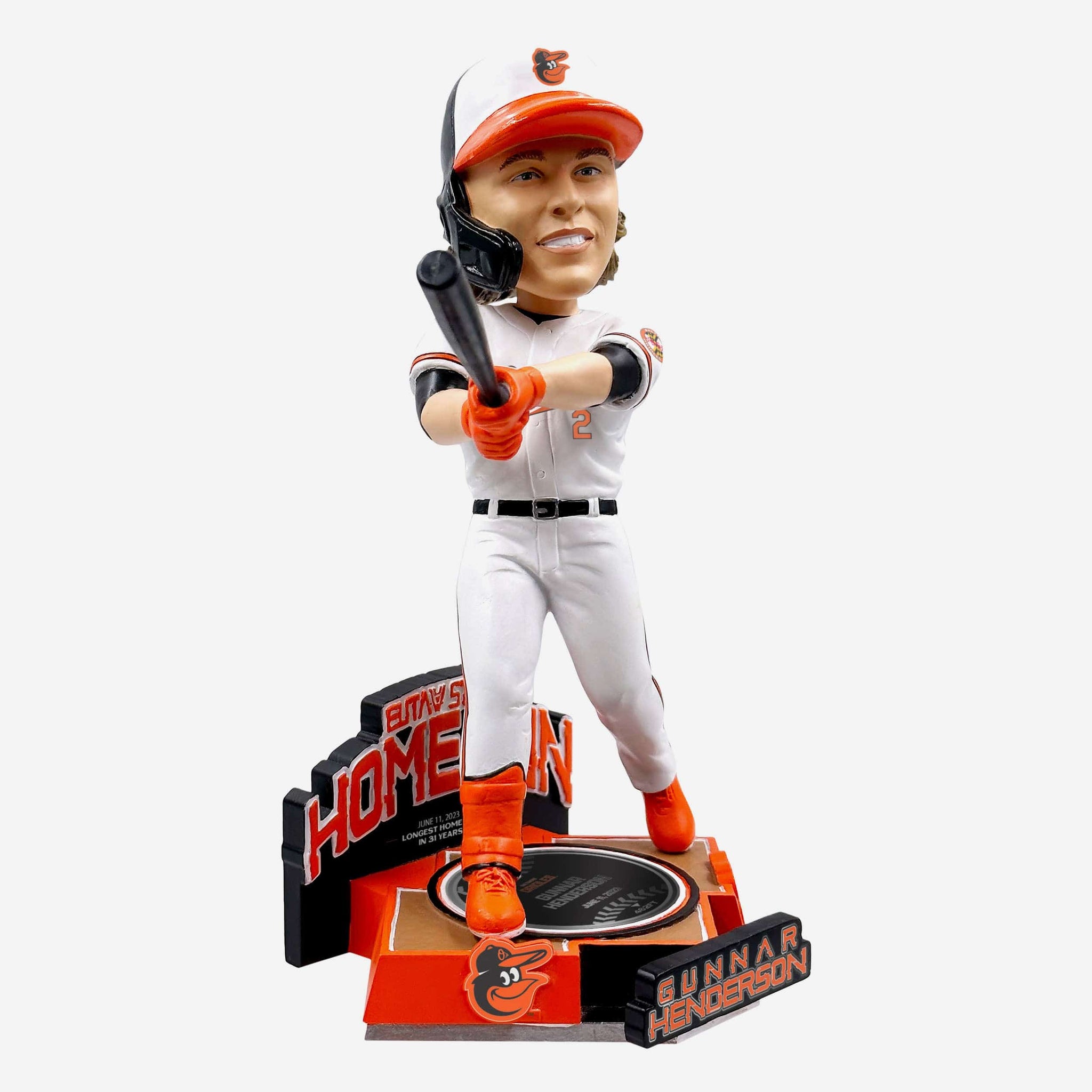Out of the park. Into your collection. This slugger had the O's fans saying "O my goodness", and you can re-live that incredible moment with the Gunnar Henderson Baltimore Orioles Eutaw Street Bobblehead.