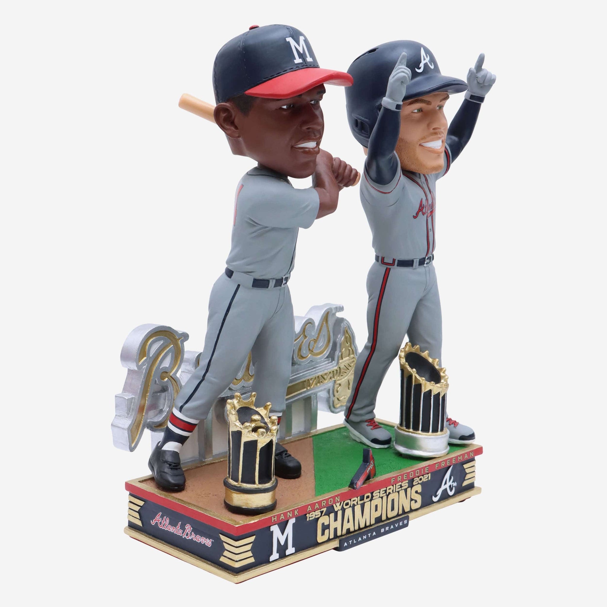 Hank Aaron & Freddie Freeman Atlanta Braves 1957 & 2021 World Series Champions Dual Bobblehead
