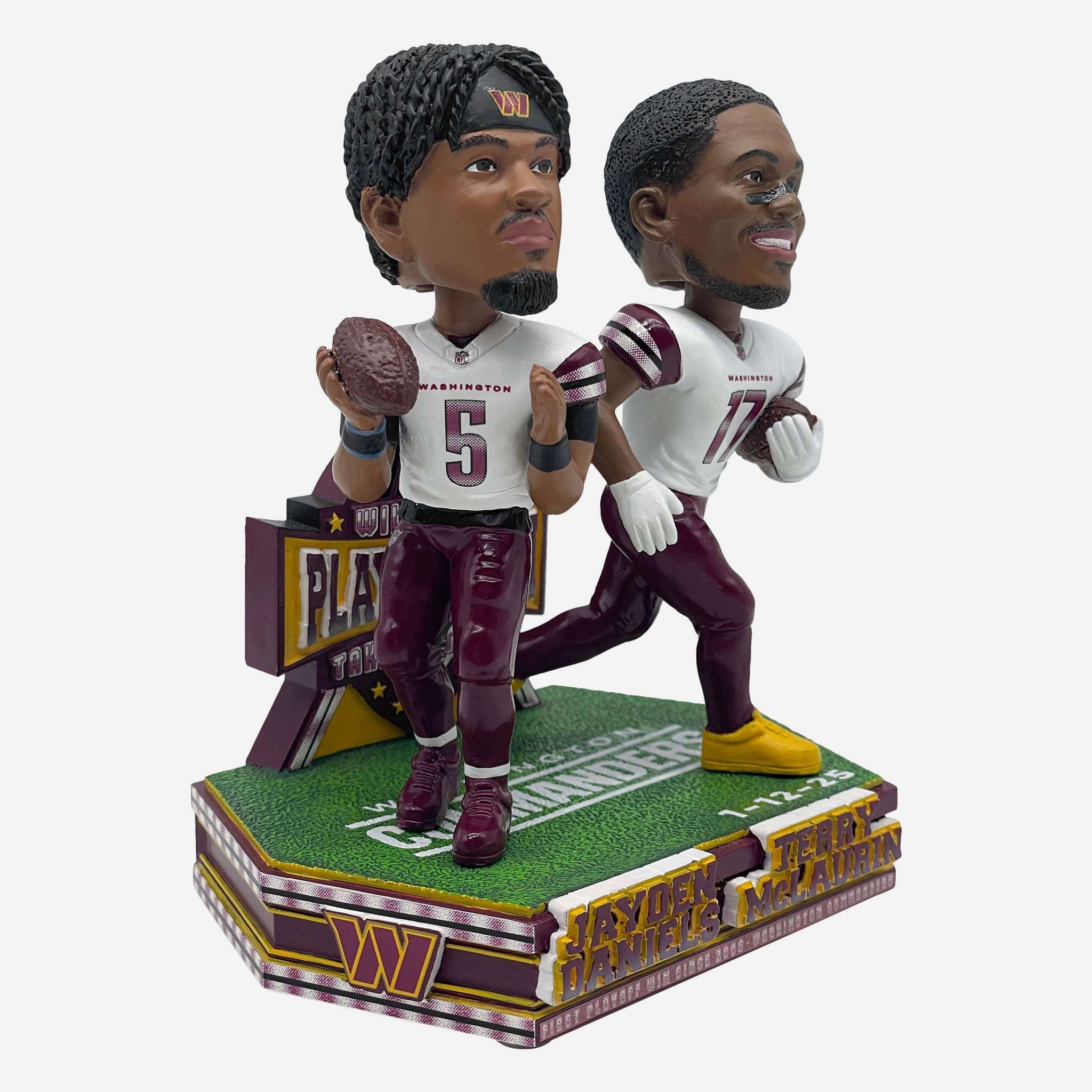 HTTC! The decades-long wait for a playoff win is over, and you can celebrate with the Jayden Daniels & Terry McLaurin Washington Commanders Wild Card Dual Gamebreaker Bobblehead.