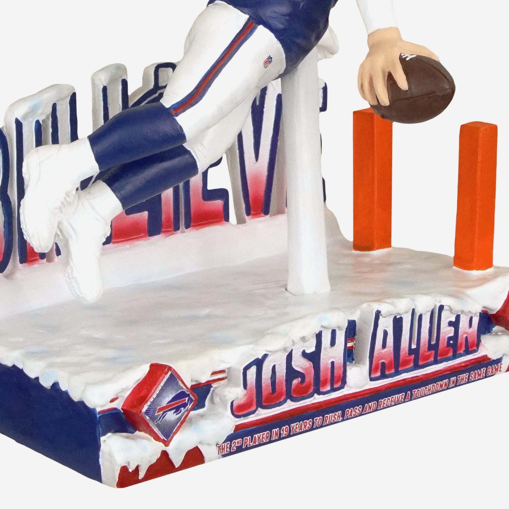 Passing TD. Rushing TD. Receiving TD. Cross them all off your list in one game with the Josh Allen Buffalo Bills Rushing & Receiving & Throwing Touchdown Milestone Bobblehead!