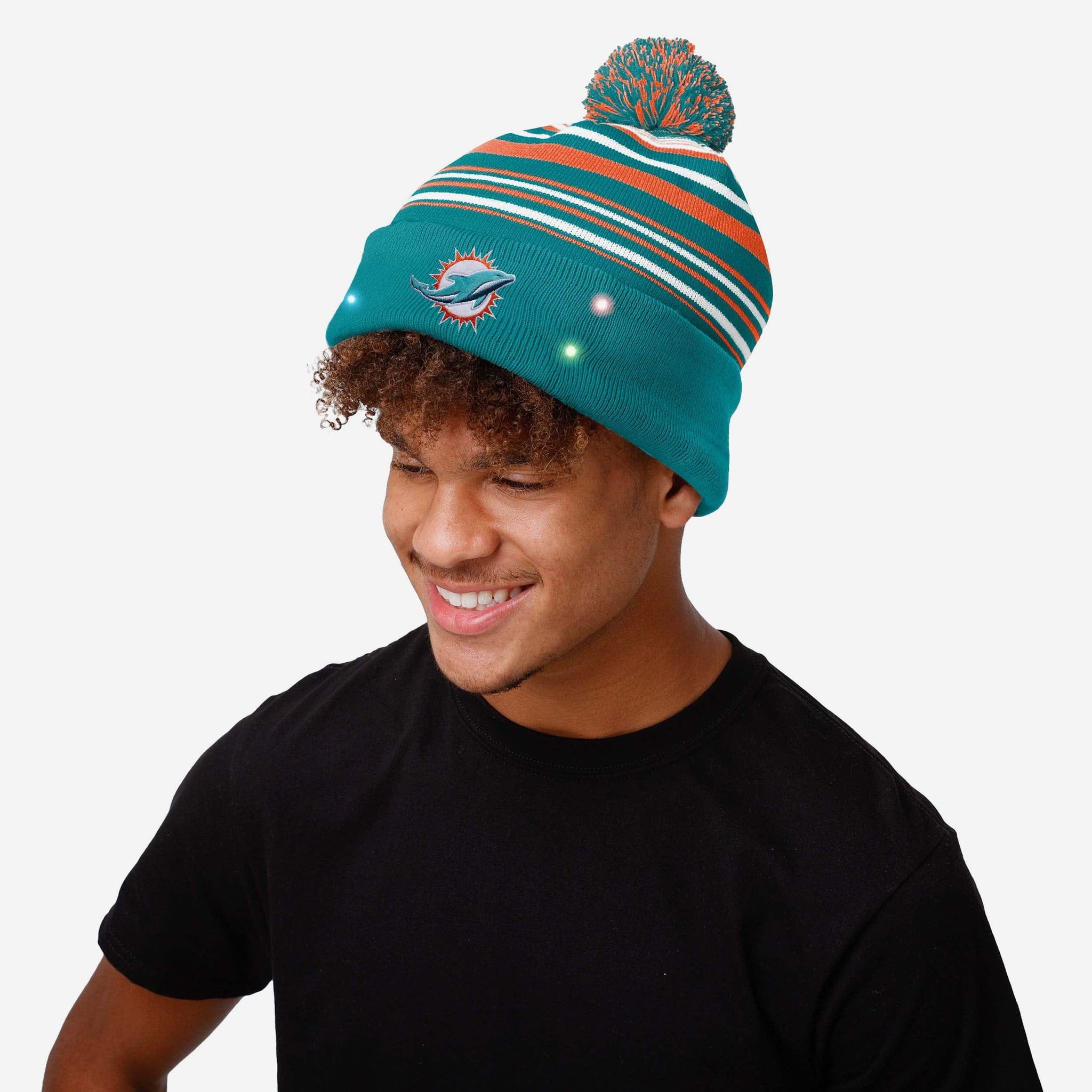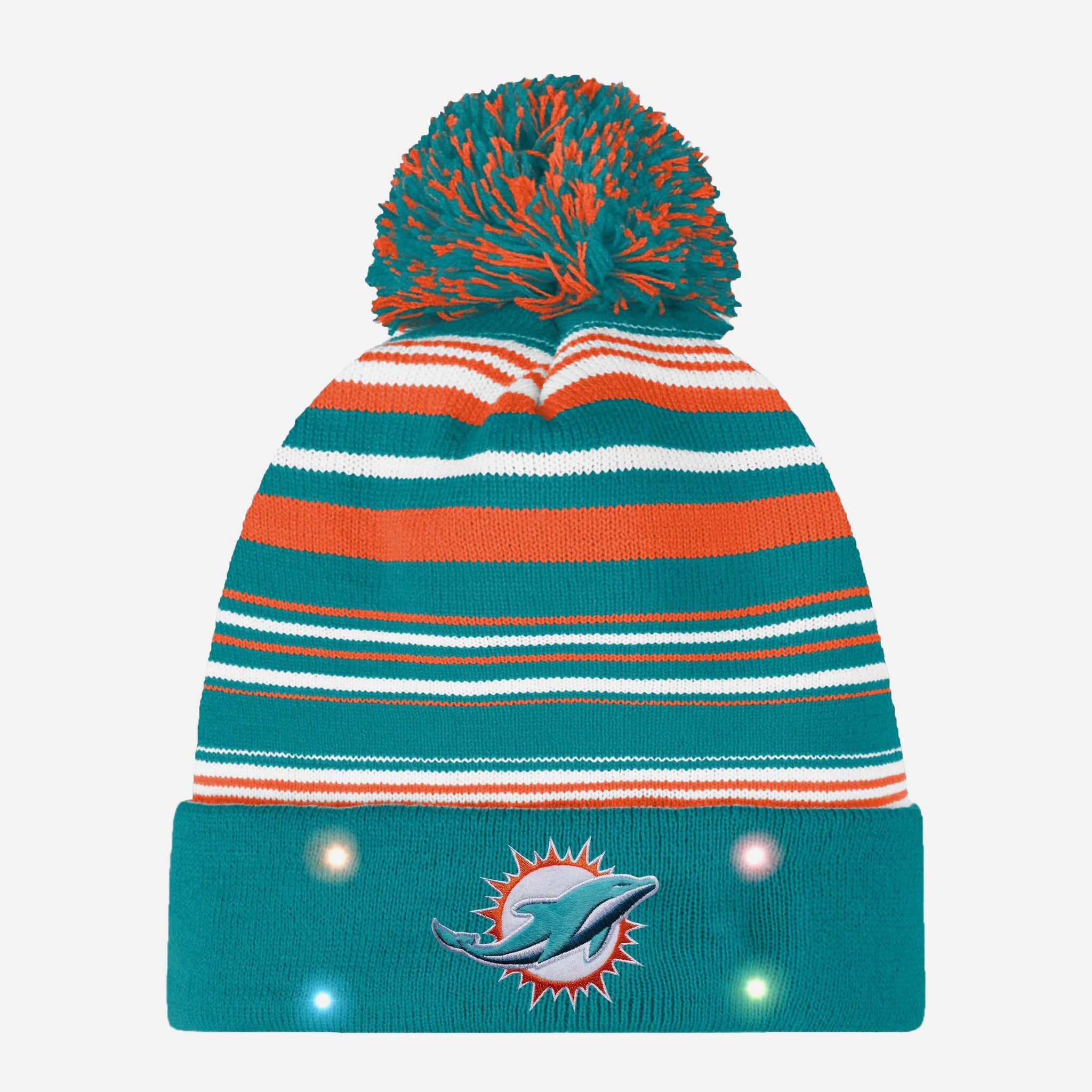 Braving the chilly weather? That's just another opportunity to let your team spirit shine when you're wearing this Miami Dolphins Horizontal Stripe Light Up Beanie.