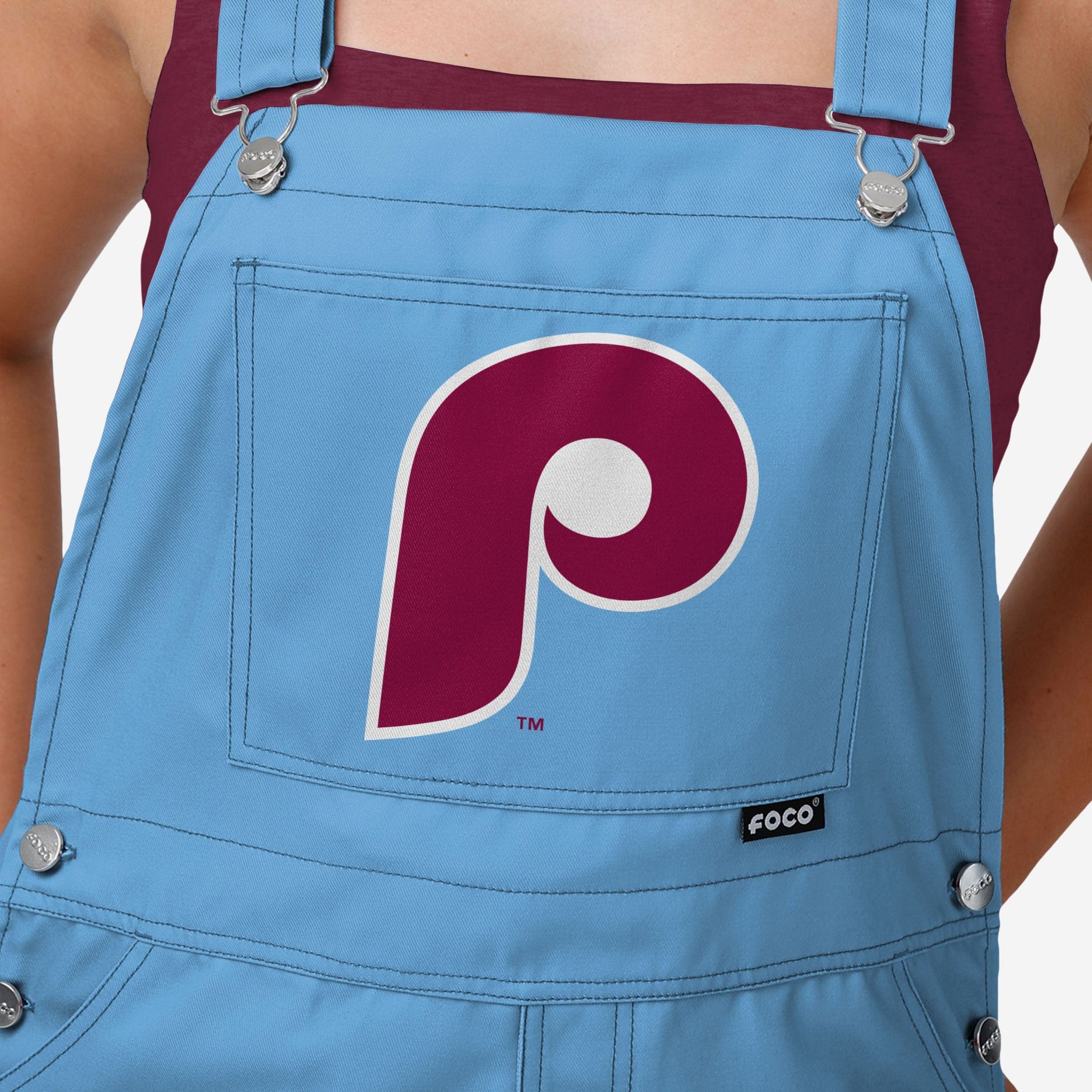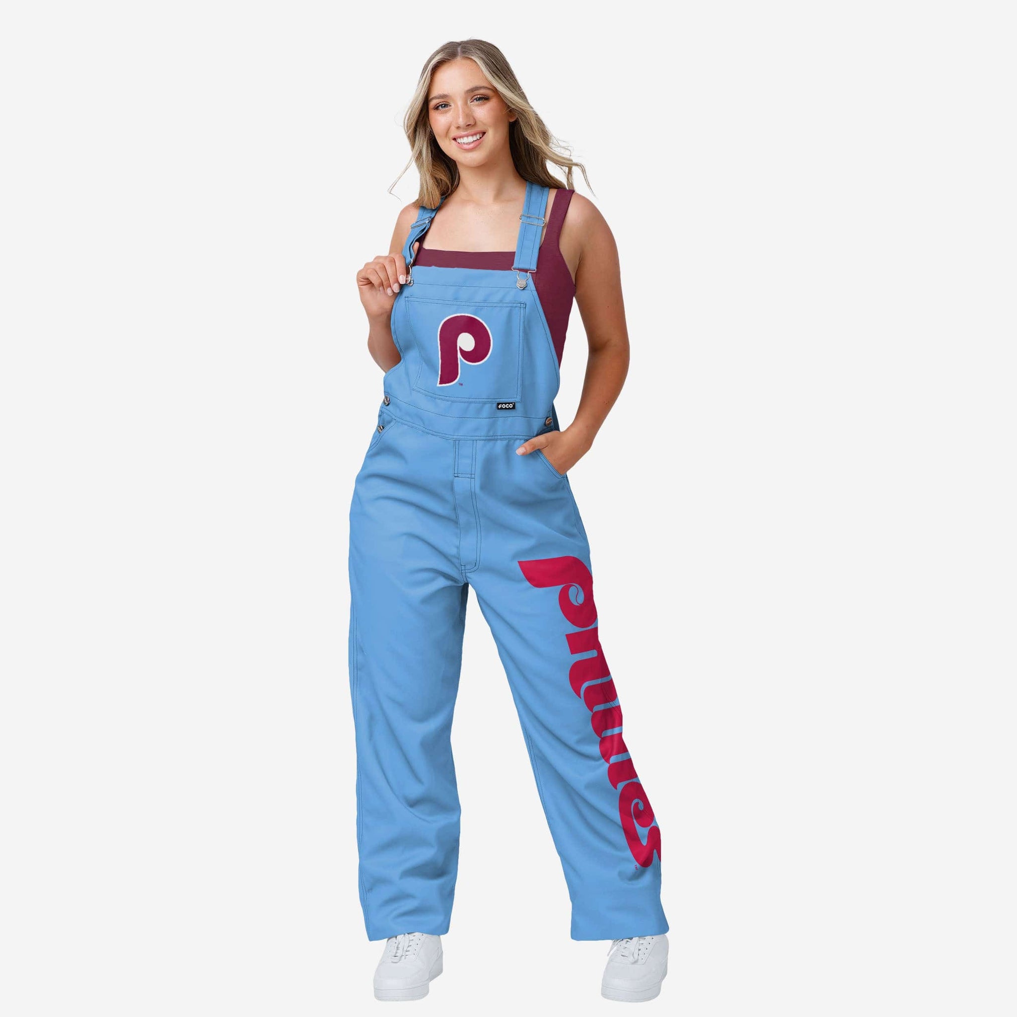 Philadelphia Phillies Womens Powder Blue Big Logo Bib Overalls FOCO - FOCO.com