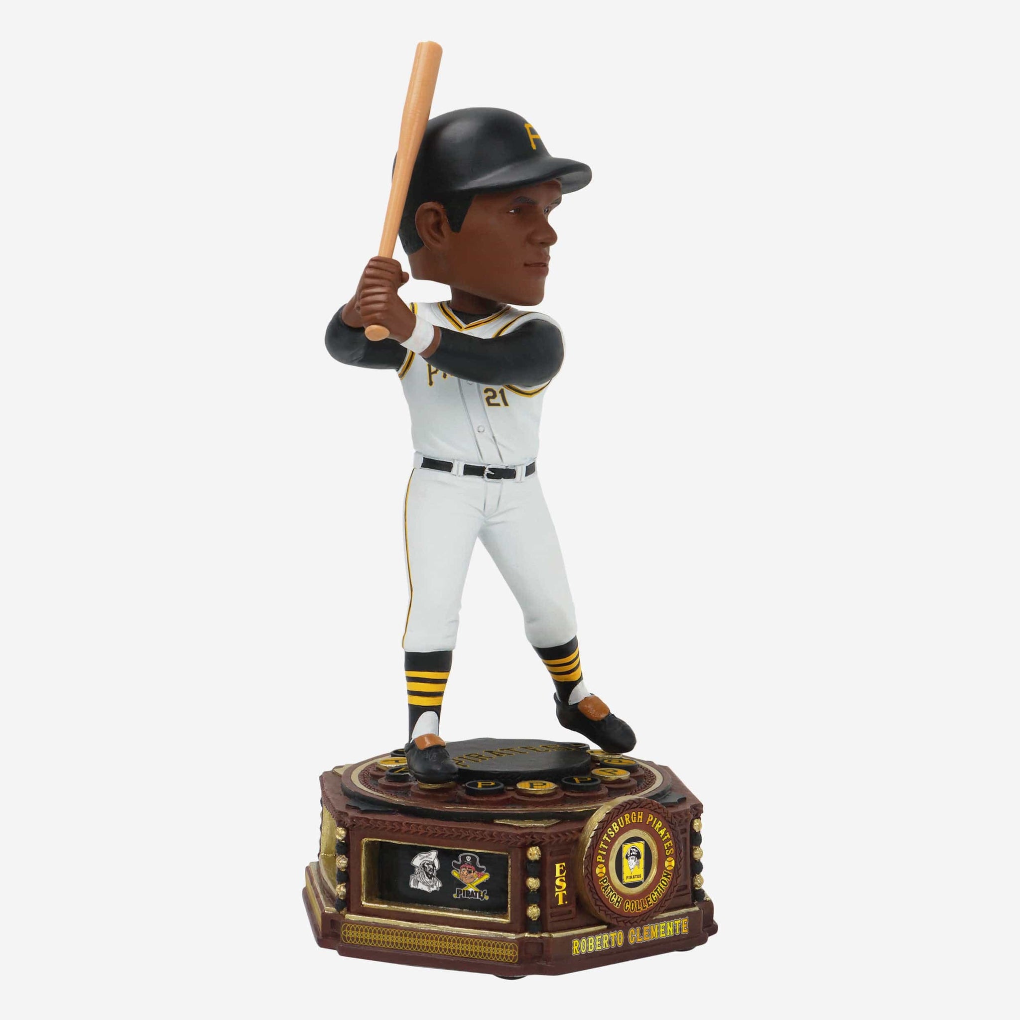 Established in 1887! Take a trip down memory lane with this Roberto Clemente Pittsburgh Pirates Patch Collection Bobblehead.