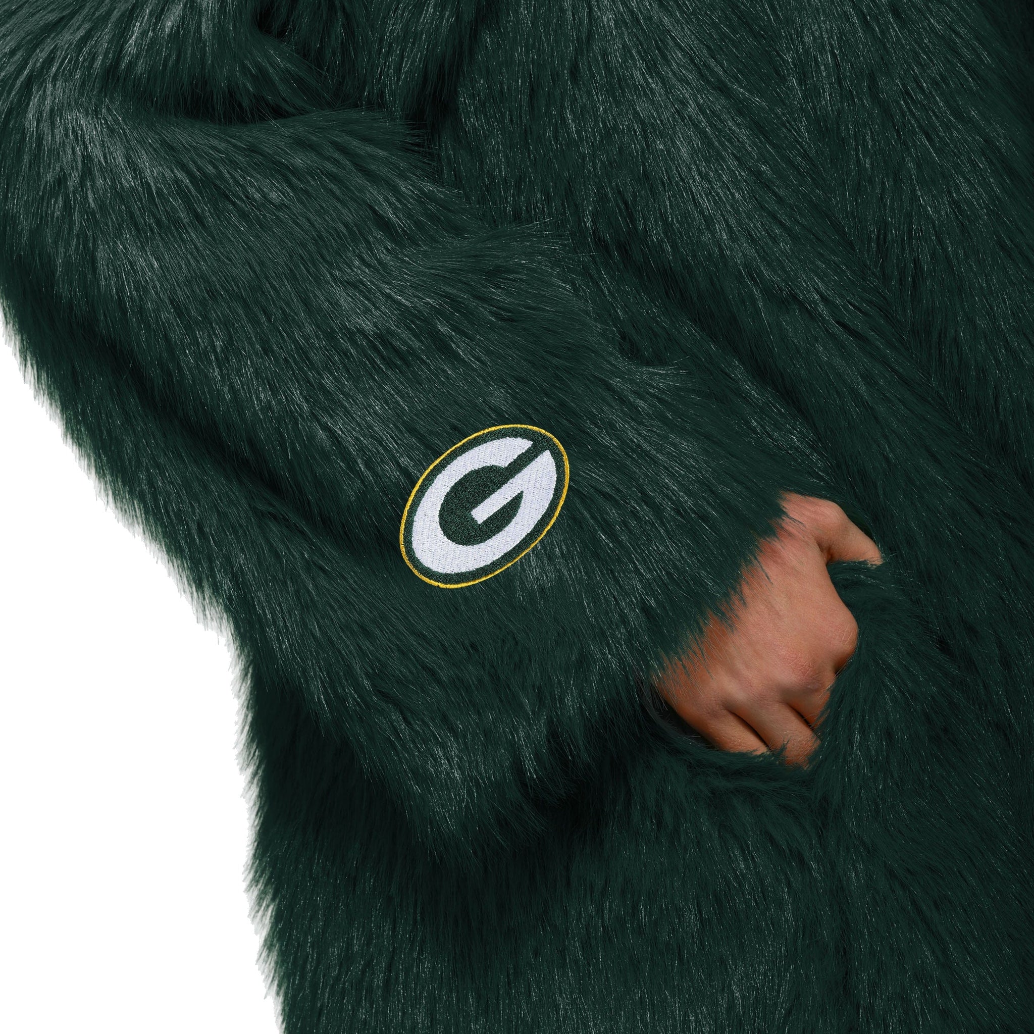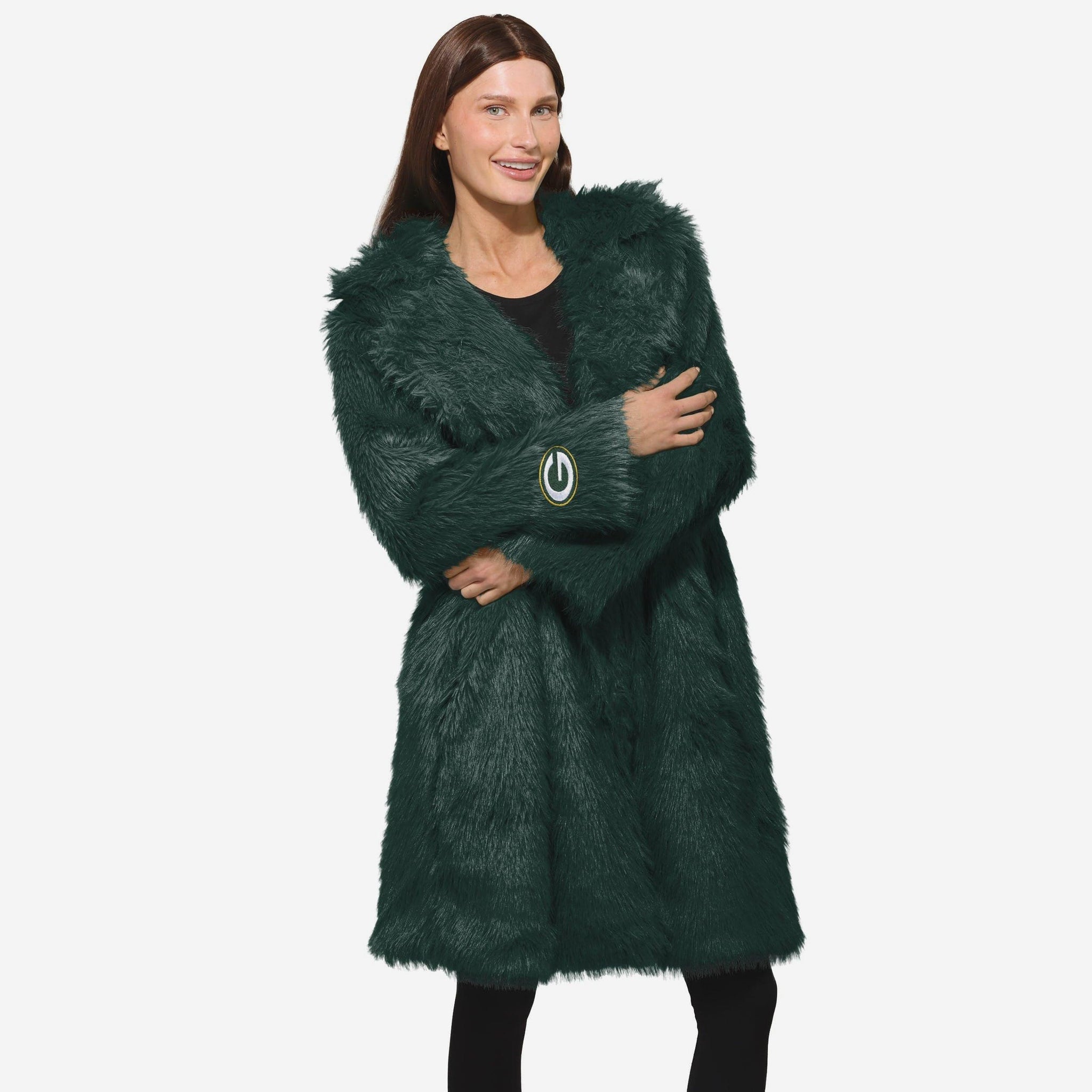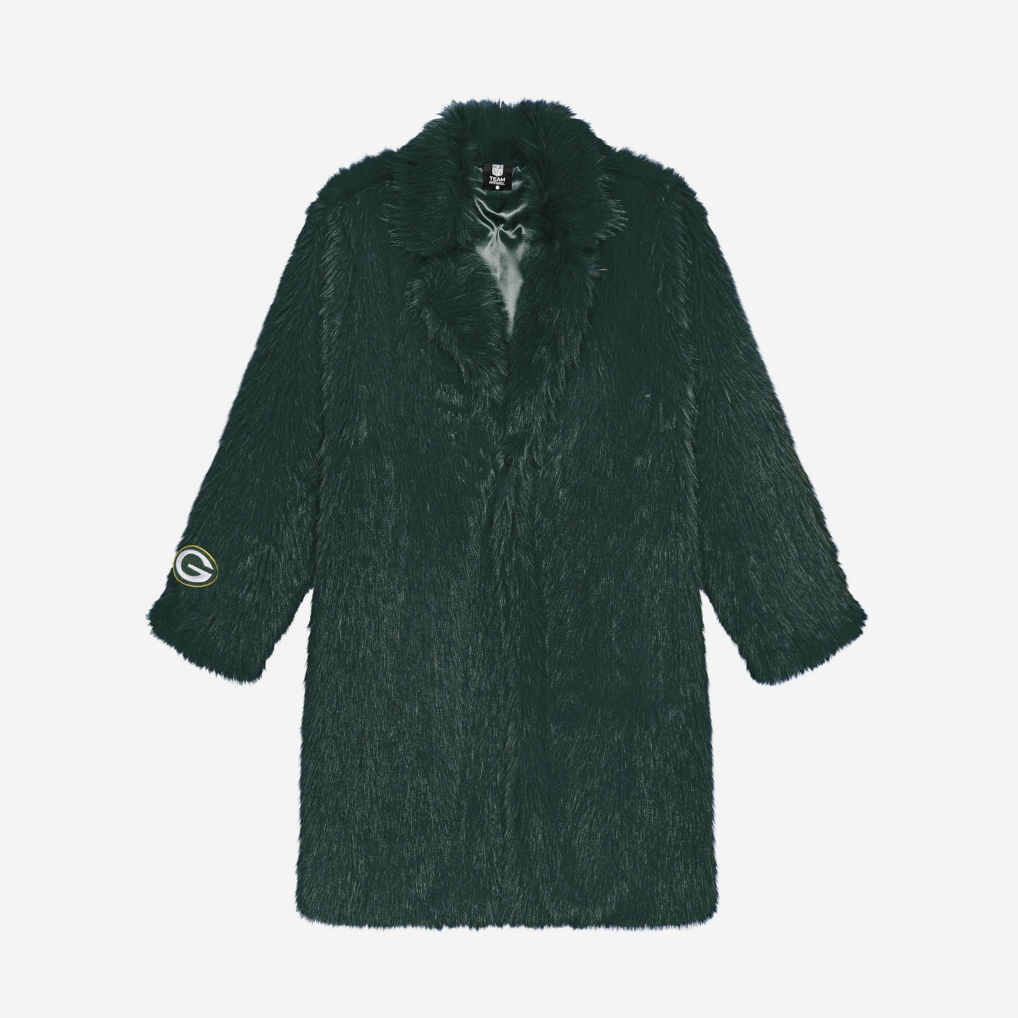 Stay warm, look sharp, and rep your squad with the Green Bay Packers Faux Fur Long Jacket. Made from ultra-soft faux fur with an all-over team-colored design and bold embroidered logos, this jacket brings game day glam and cozy comfort together in one statement piece.