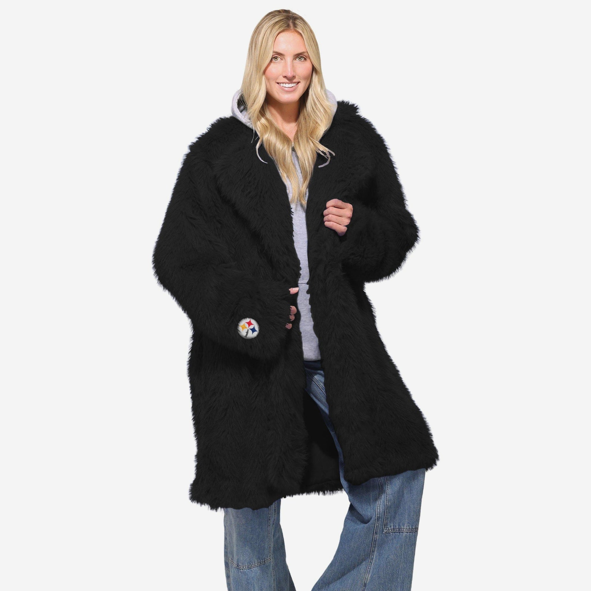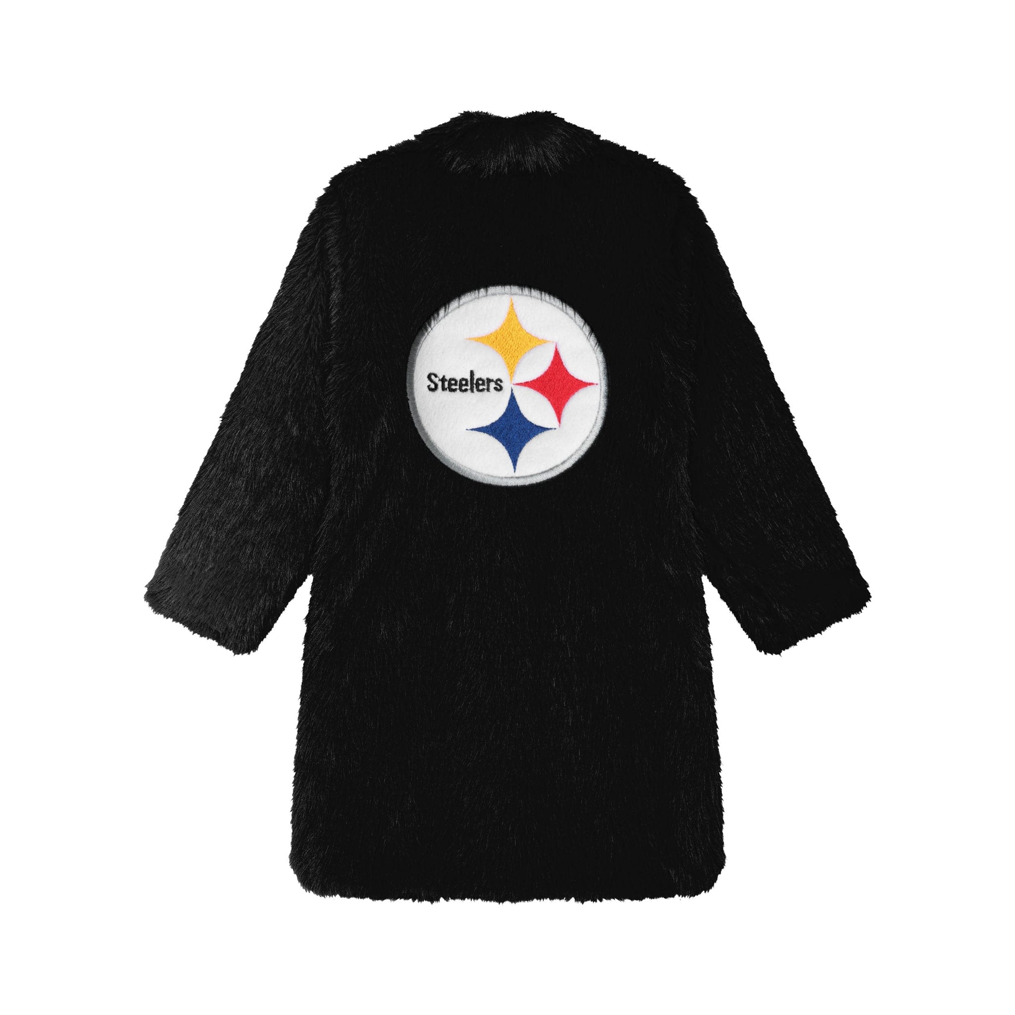 Stay warm, look sharp, and rep your squad with the Pittsburgh Steelers Faux Fur Long Jacket. Made from ultra-soft faux fur with an all-over team-colored design and bold embroidered logos, this jacket brings game day glam and cozy comfort together in one statement piece.