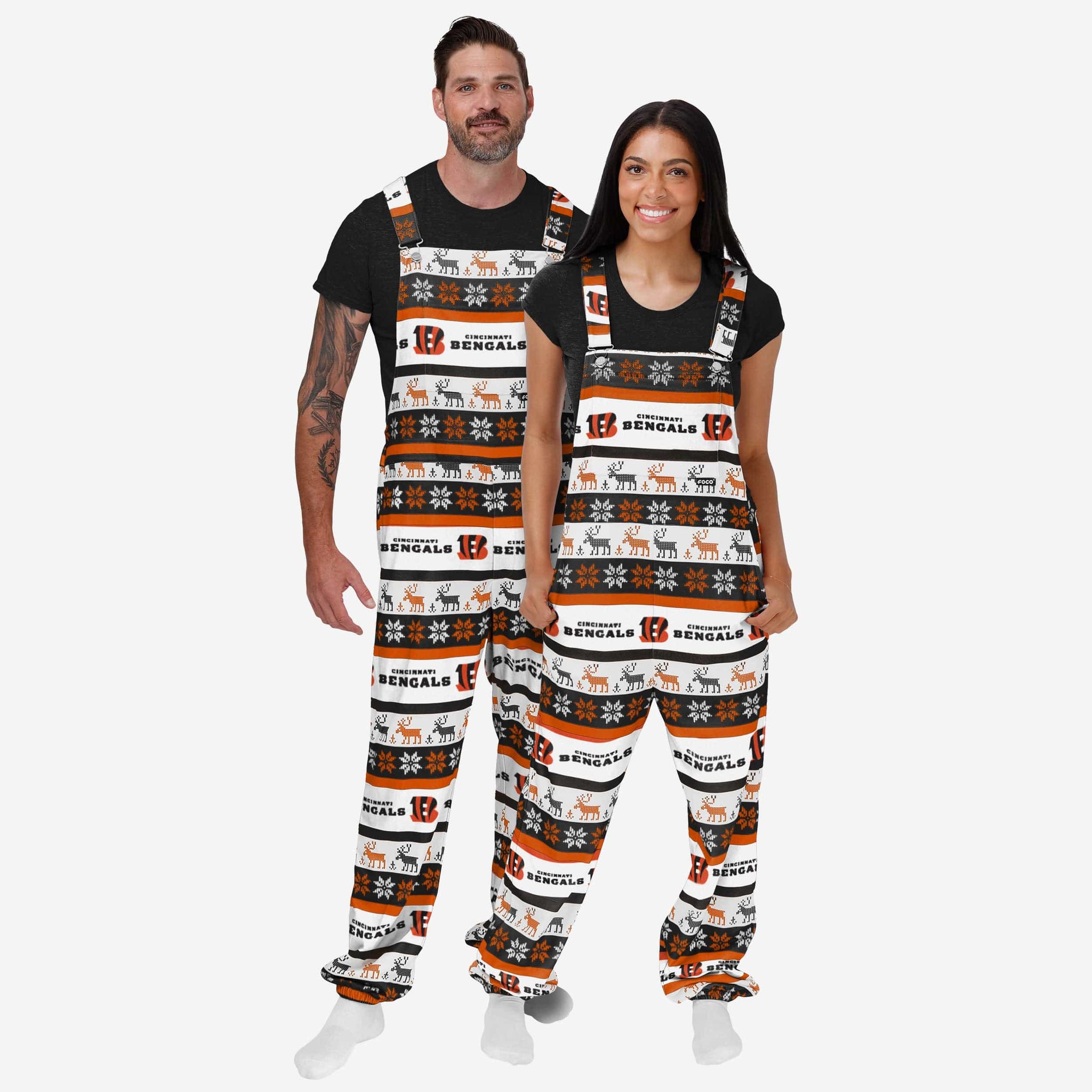 Show your team spirit in these stylish and comfortable Cincinnati Bengals Women's Ugly Home Gating Bib Overalls. With their all-over team-colored design and bold team logo display, these overalls are the perfect way to show your support for the Cincinnati Bengals while showing off some beautiful style akin to your favorite ugly sweater that's perfect for the holidays, but will help you stand out year-round.