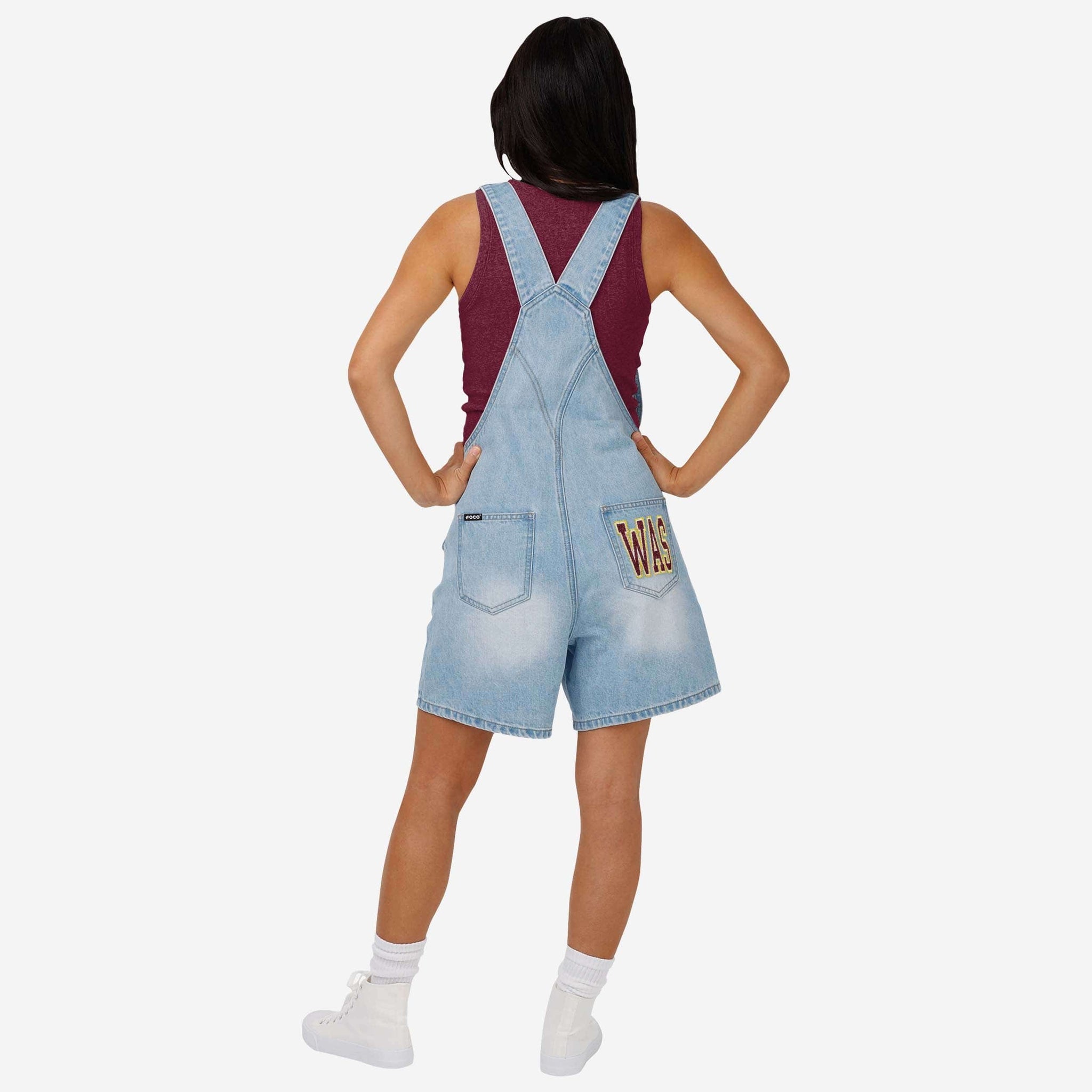 Washington Commanders Womens Big Logo Denim Bib Shortalls FOCO - FOCO.com