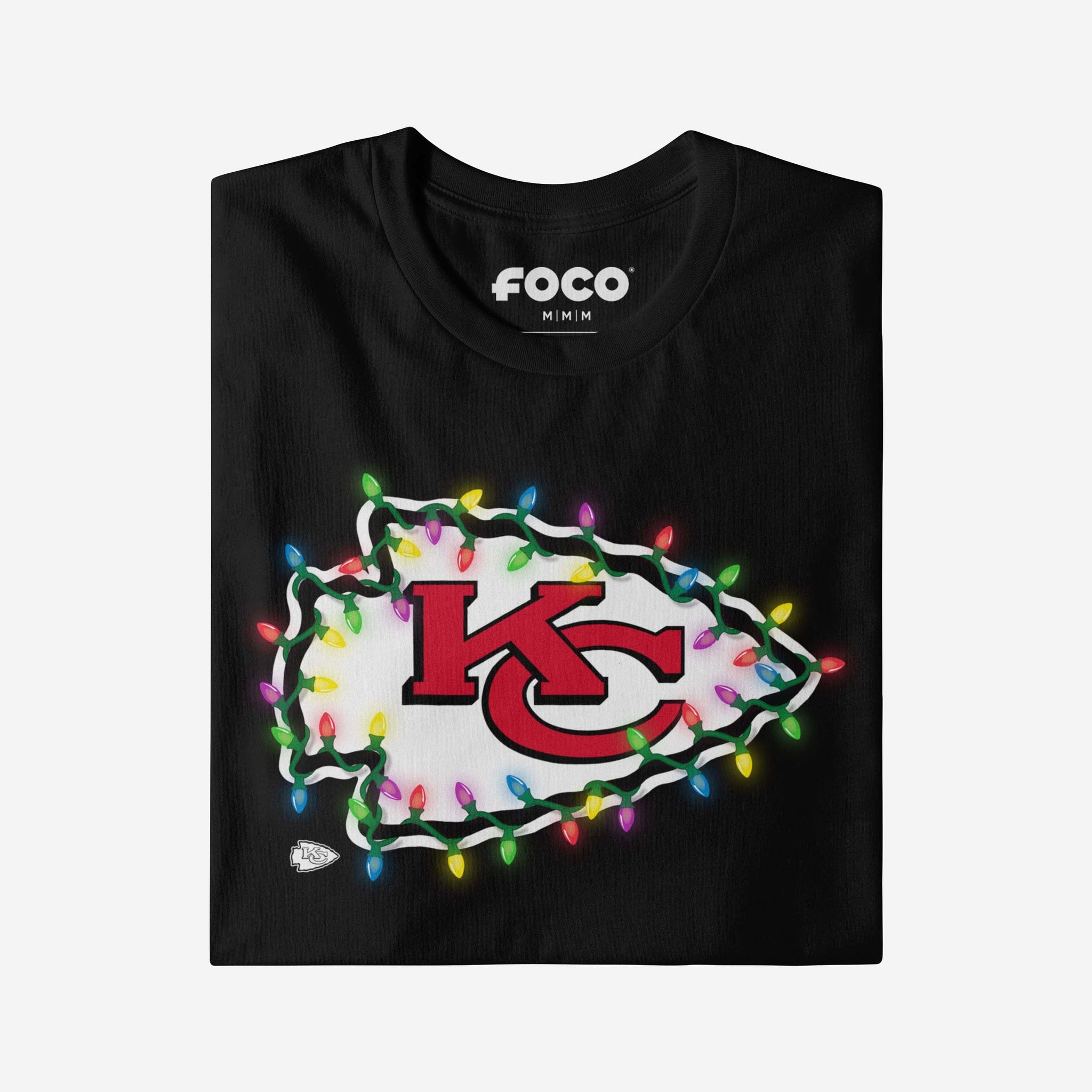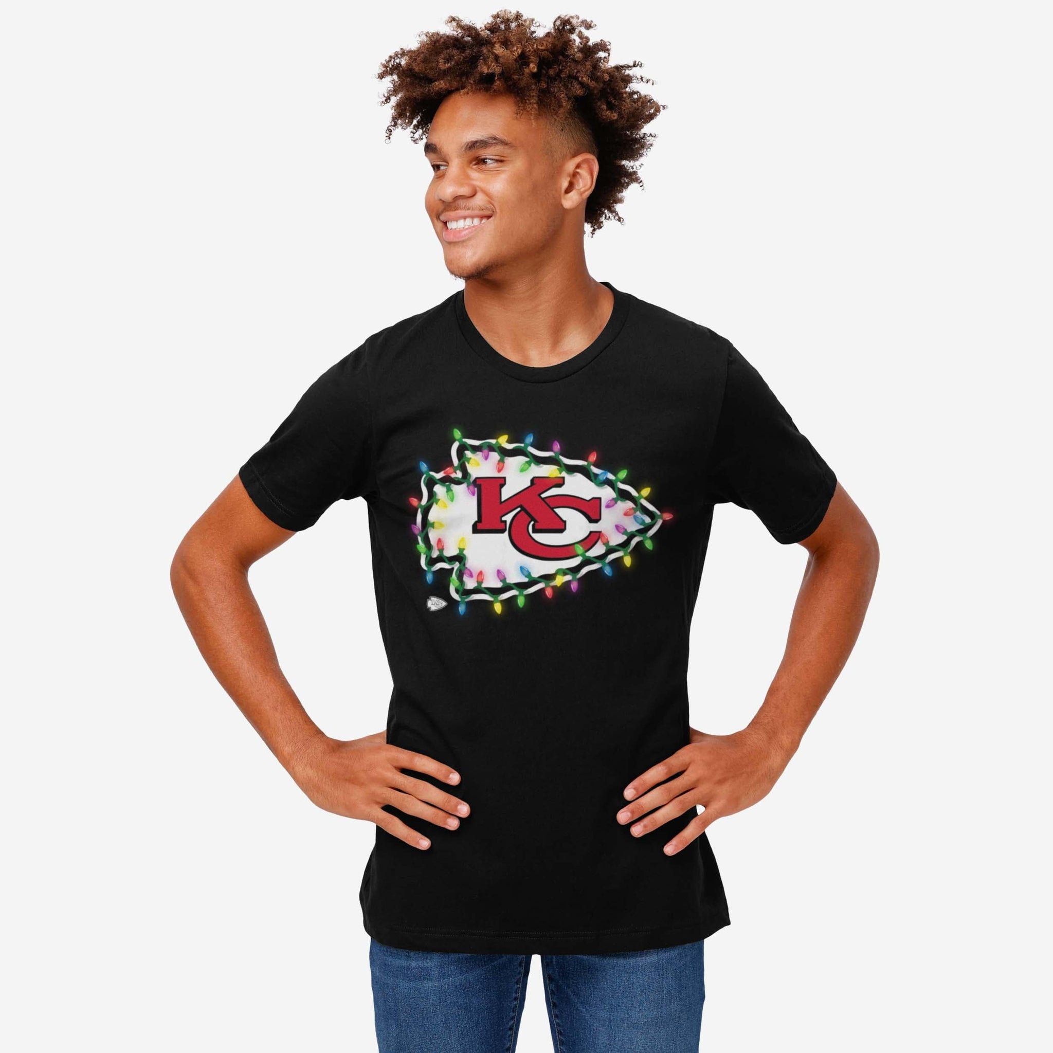 Merry, bright, and full of team spirit! Let your fandom light the way to a legendary holiday season with this Kansas City Chiefs Primary Logo Holiday Lights T-Shirt.