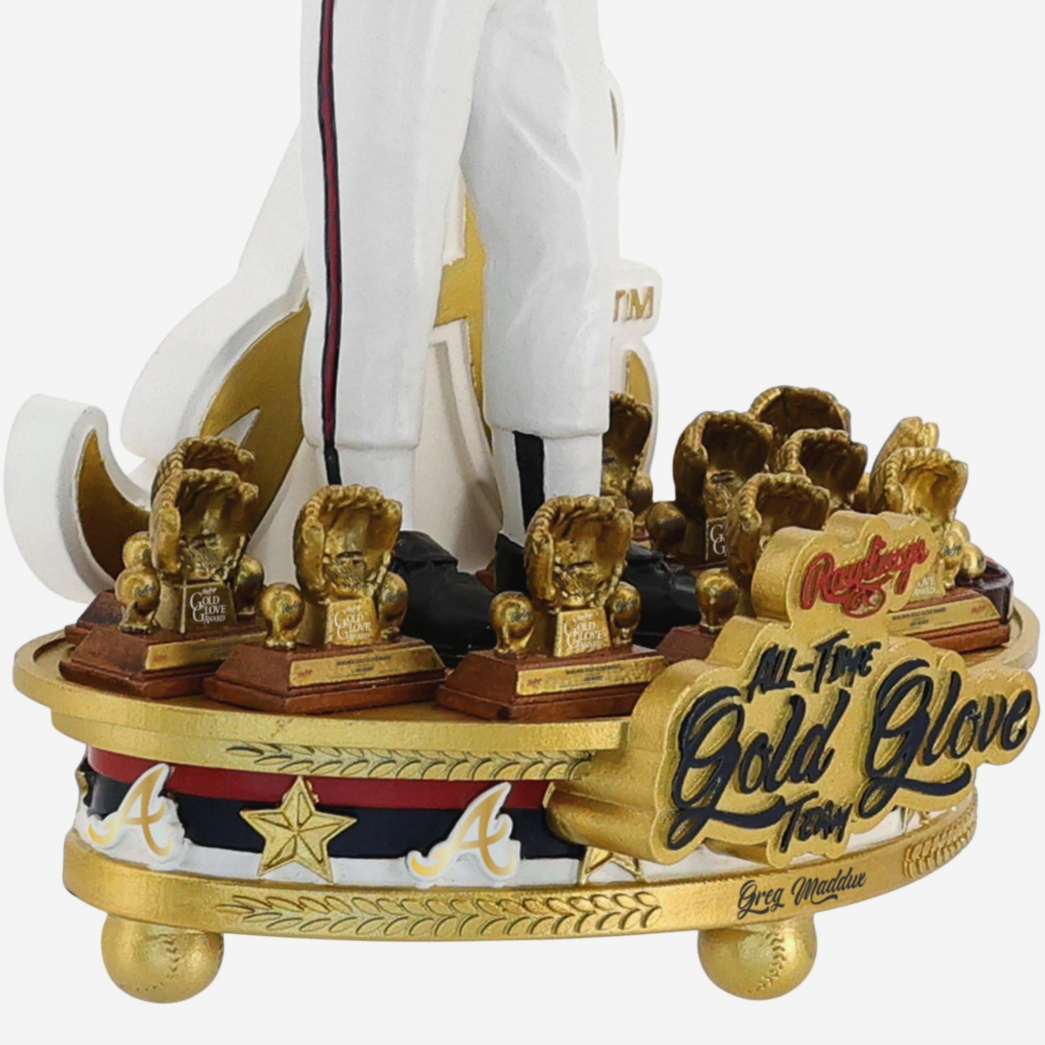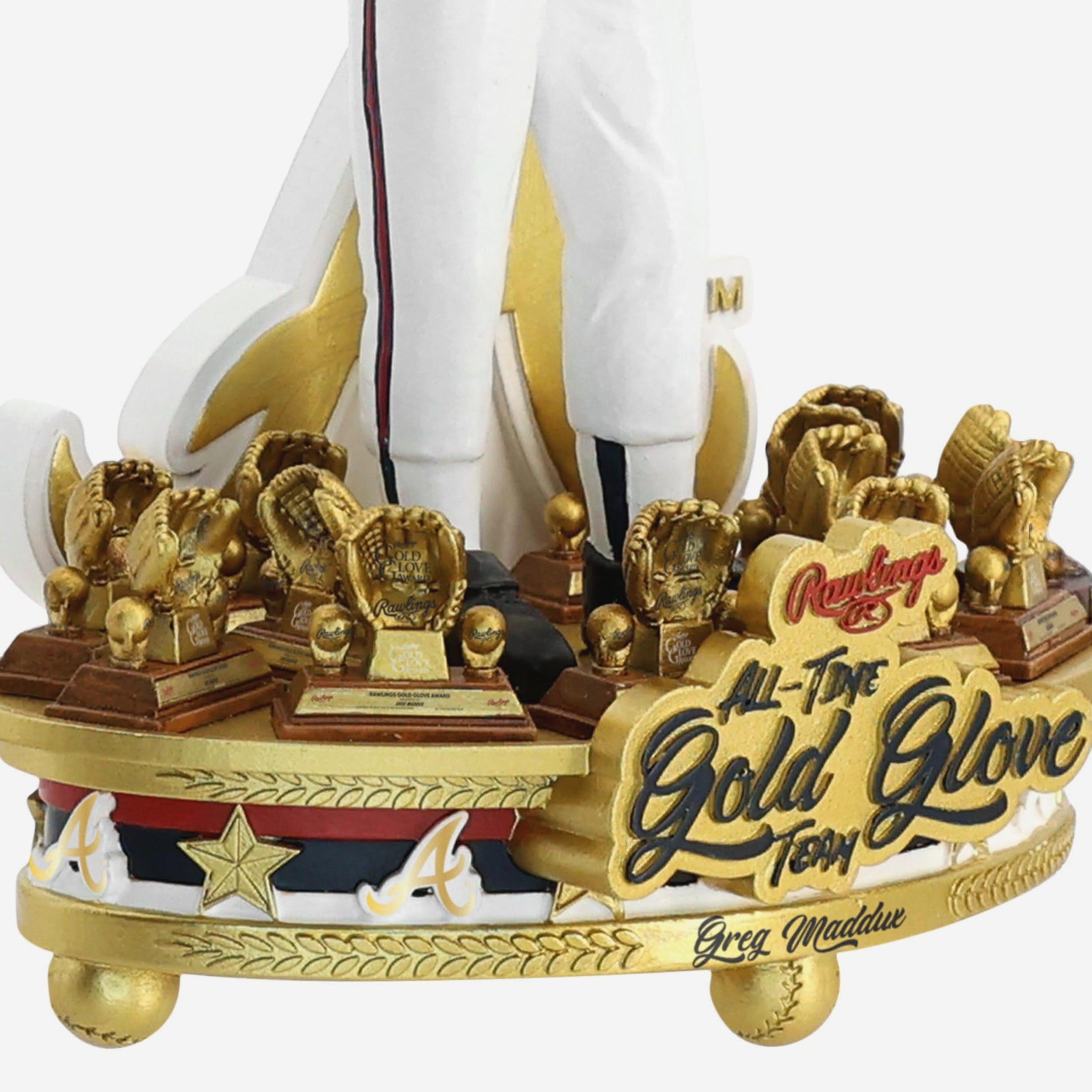 - Maddux stands on a trophy-packed base, showcasing a full display of Gold Glove hardware