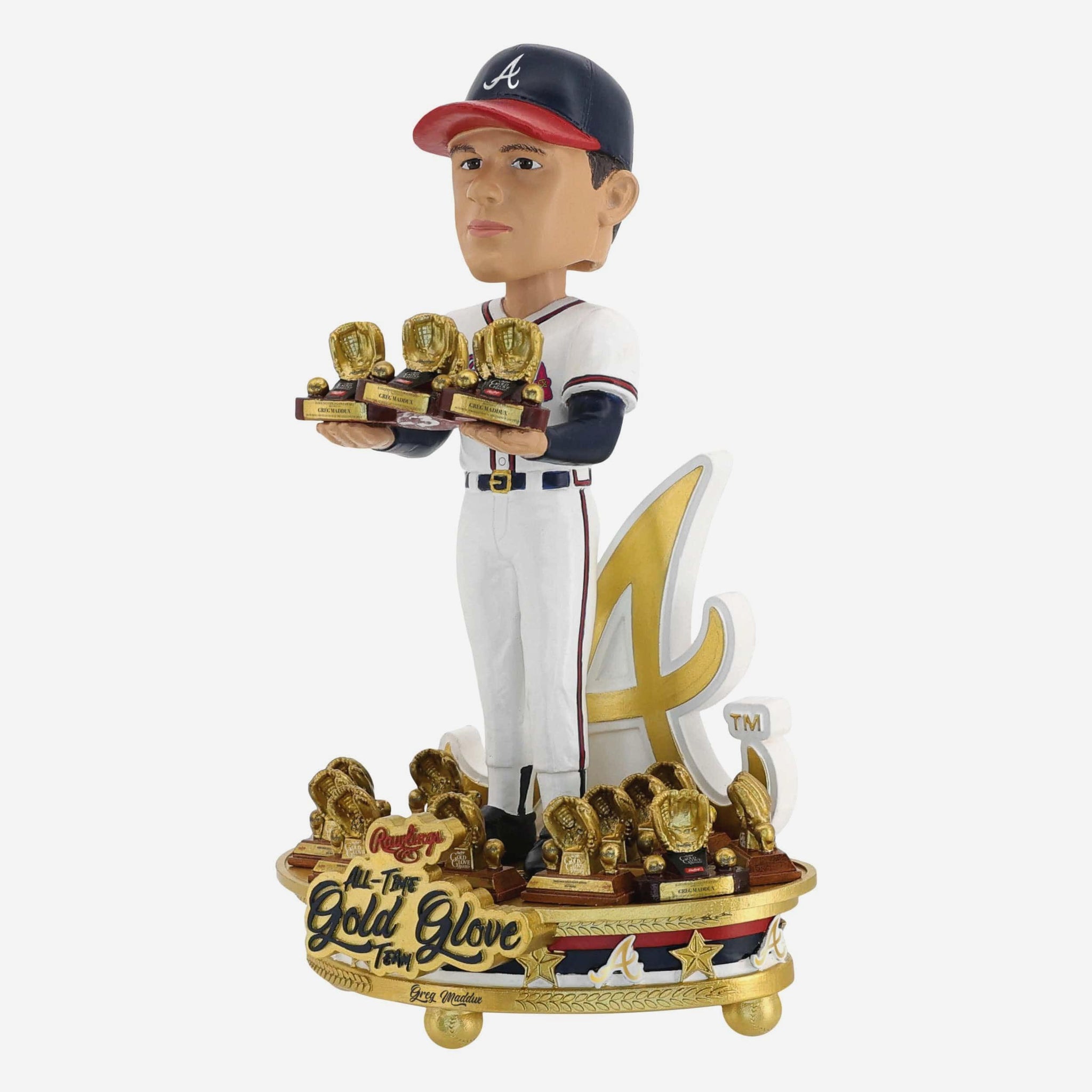 Braves fans, tip your cap to a defensive legend with this Greg Maddux Atlanta Braves All Time Gold Glove Team Bobblehead! Celebrating one of the slickest fielders to ever toe the rubber, this collectible brings his glove-first greatness and Atlanta pride straight to your lineup.