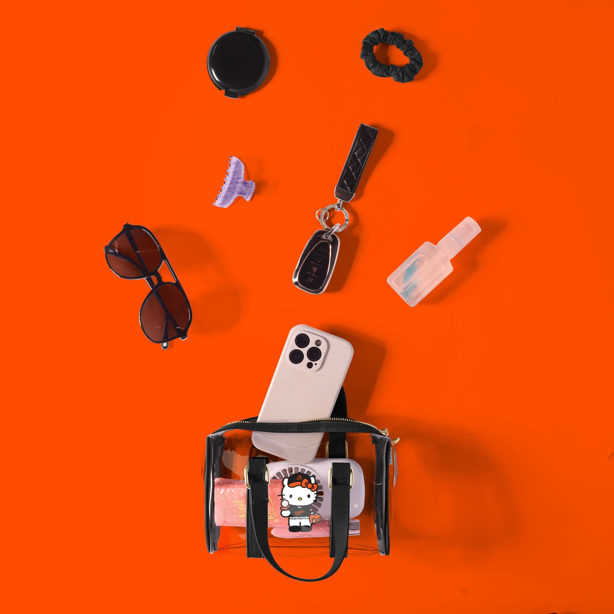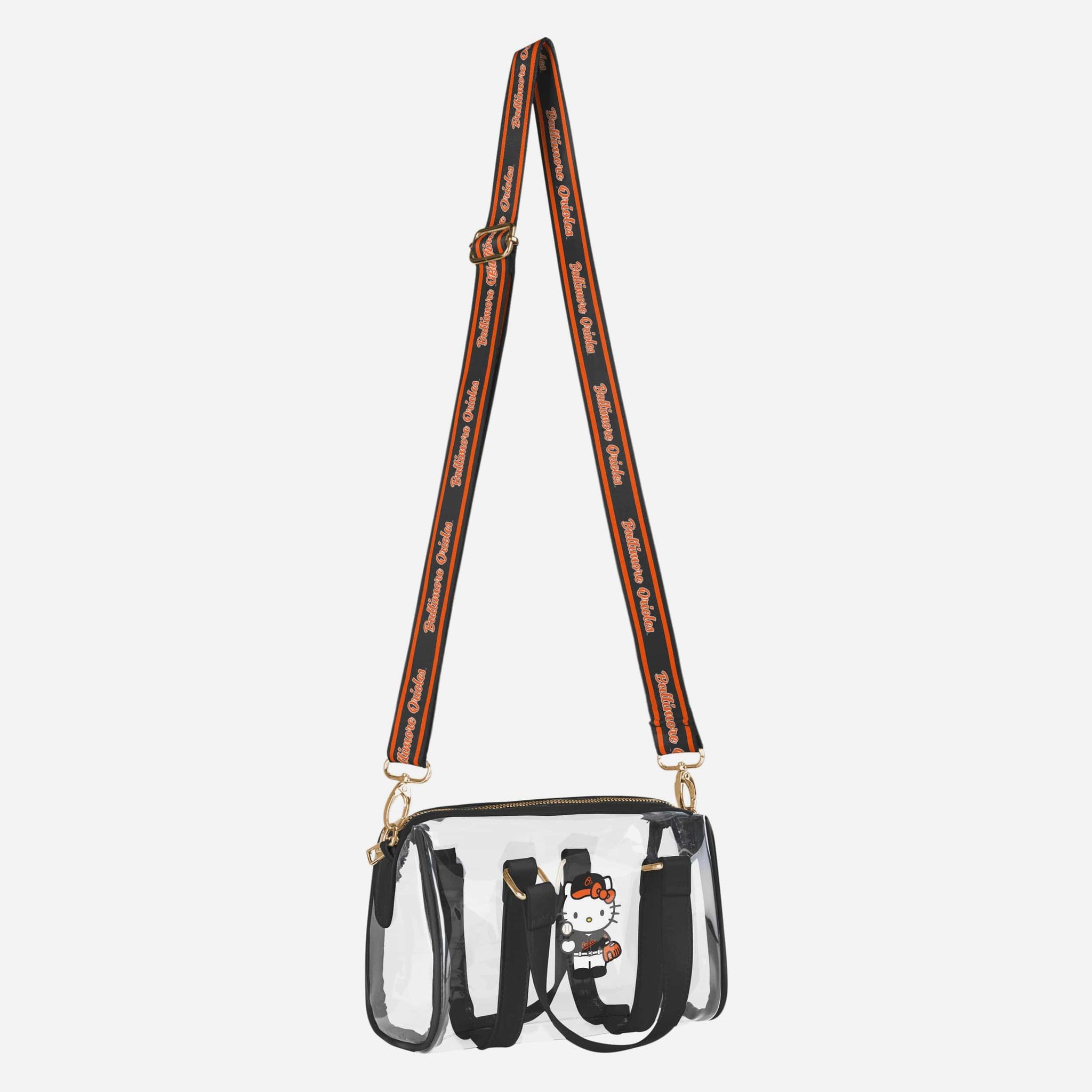 Show off your team spirit with a cute and stylish twist! This Baltimore Orioles Hello Kitty® Clear Barrel Bag is the perfect game day companion, combining iconic character charm with a clear, trend-forward design.