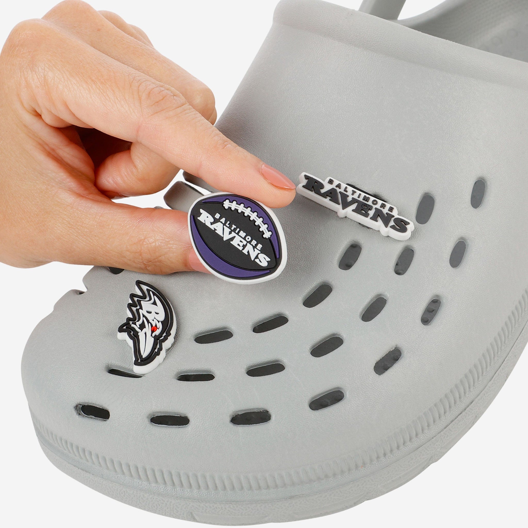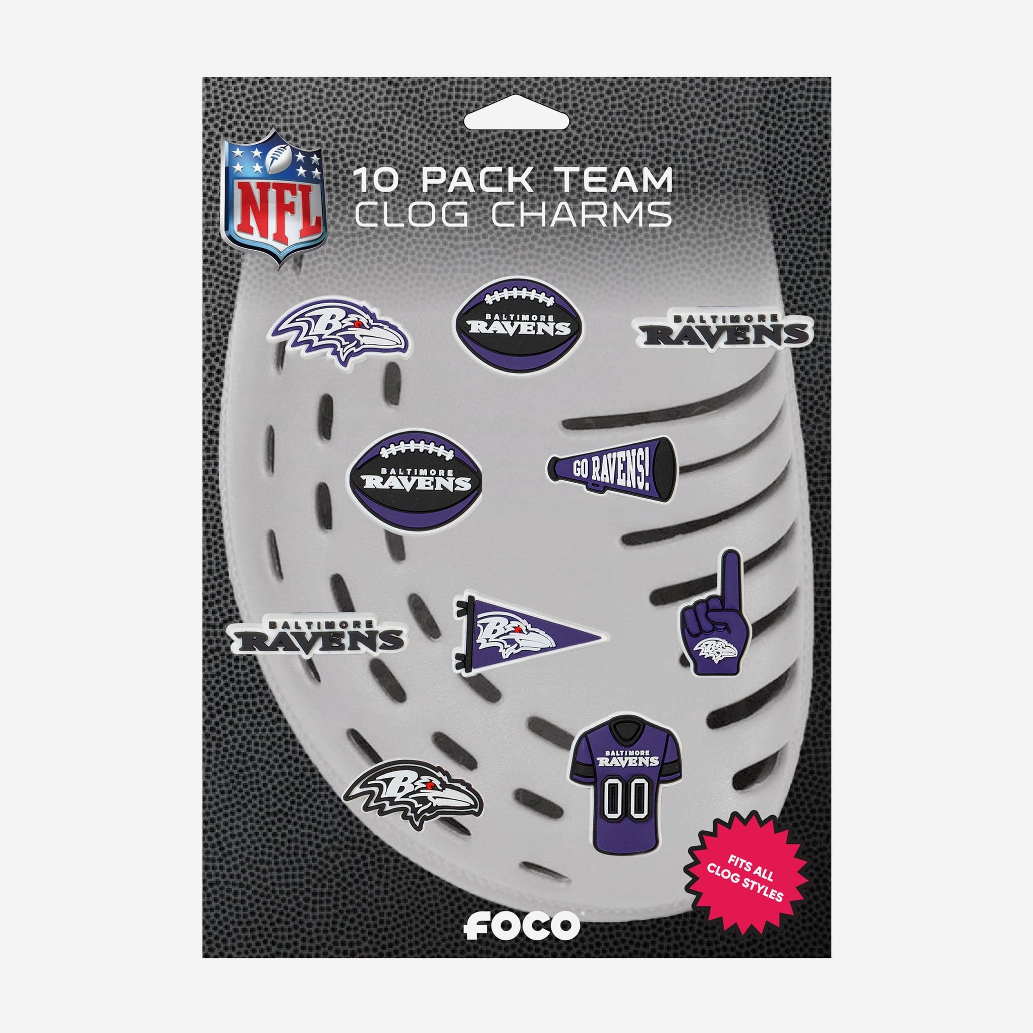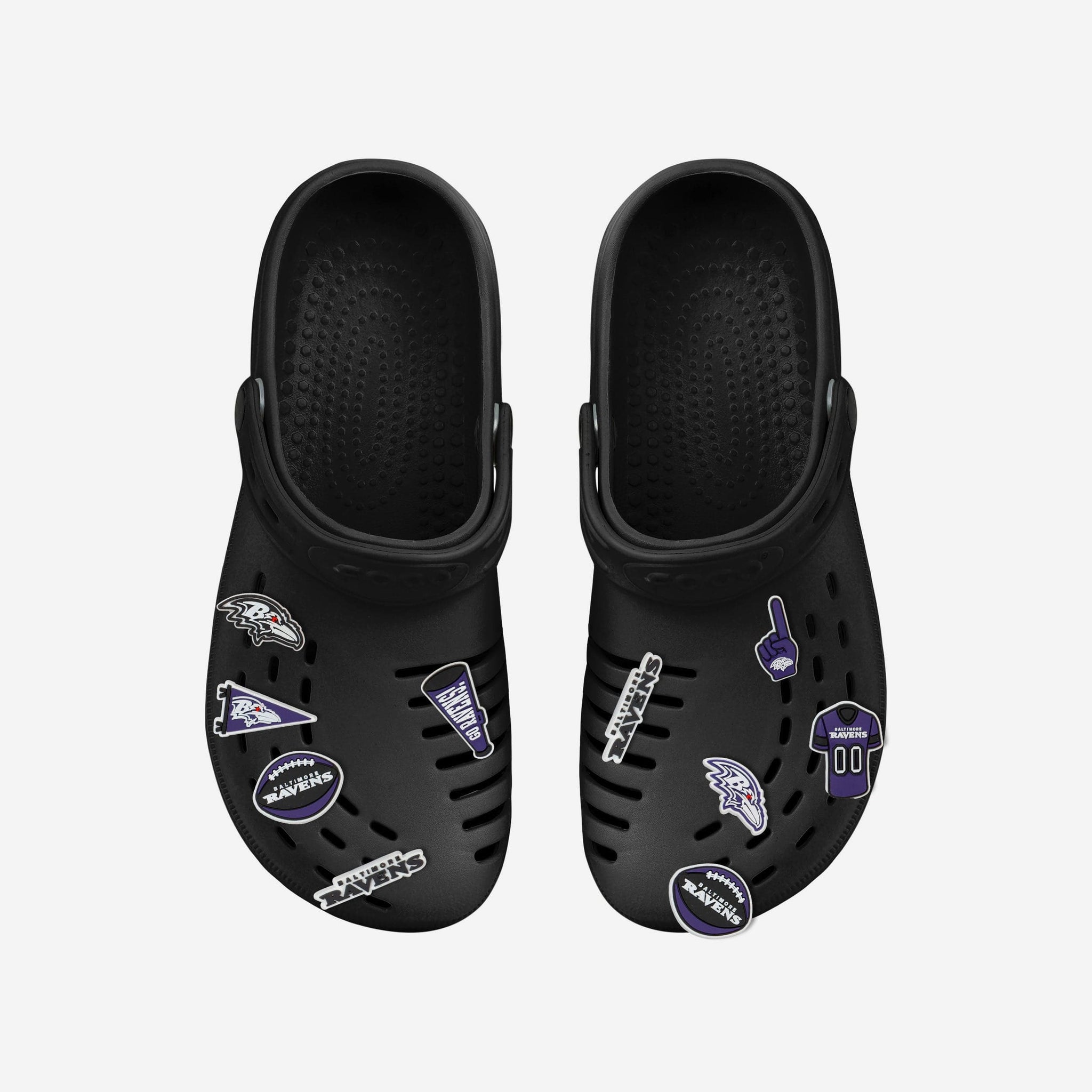 These Baltimore Ravens 10 Pack Team Clog Charms are a perfect ten. Step up your clog style game in a whole new way.