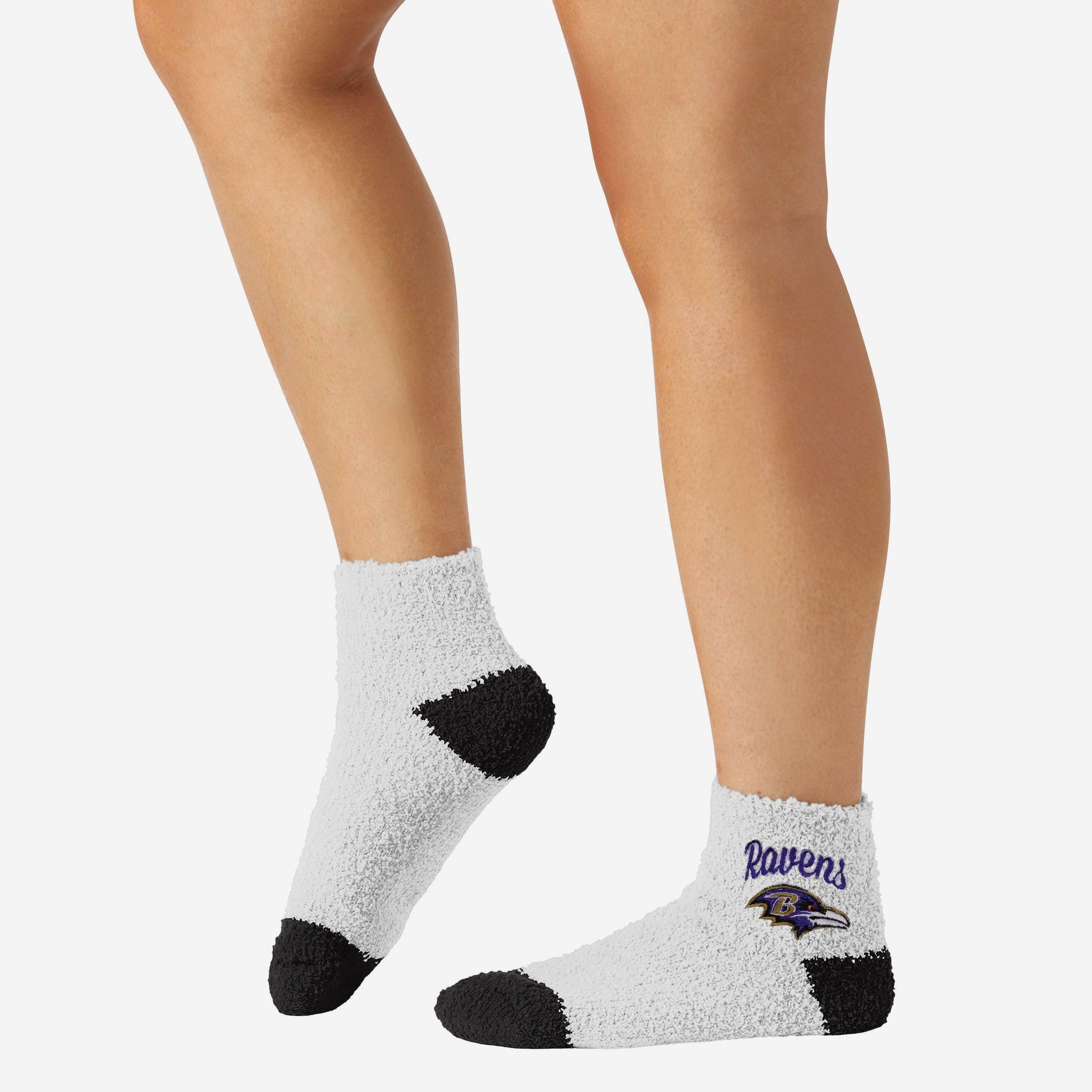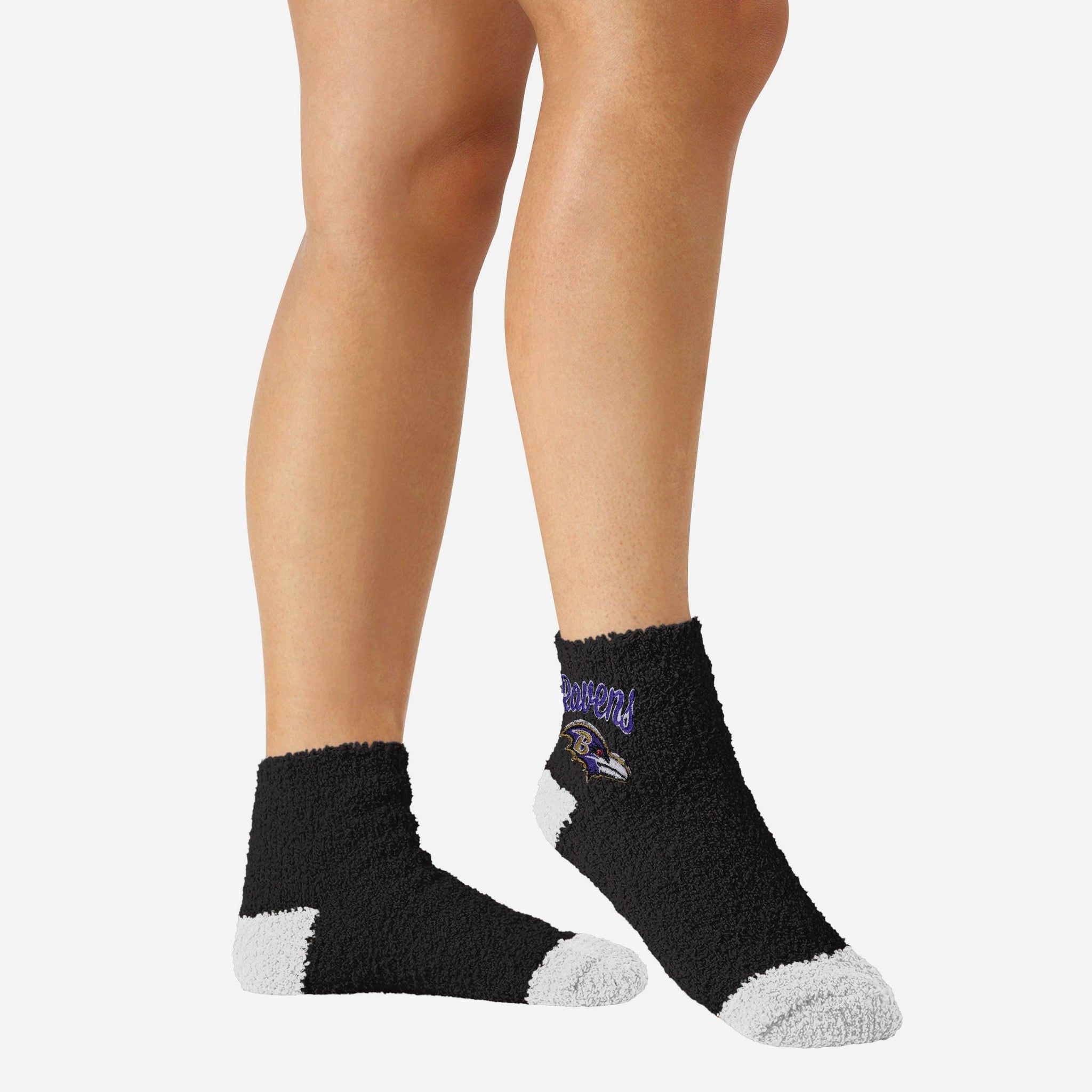 No, you're not seeing double. Just double the sweet socks. Keep your eyes on the prize with these Baltimore Ravens 2 Pack Women's Script Logo Fuzzy Ankle Socks.