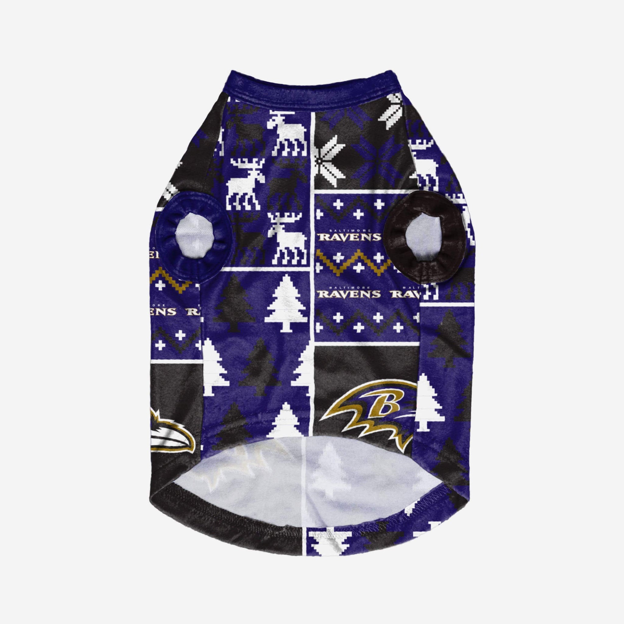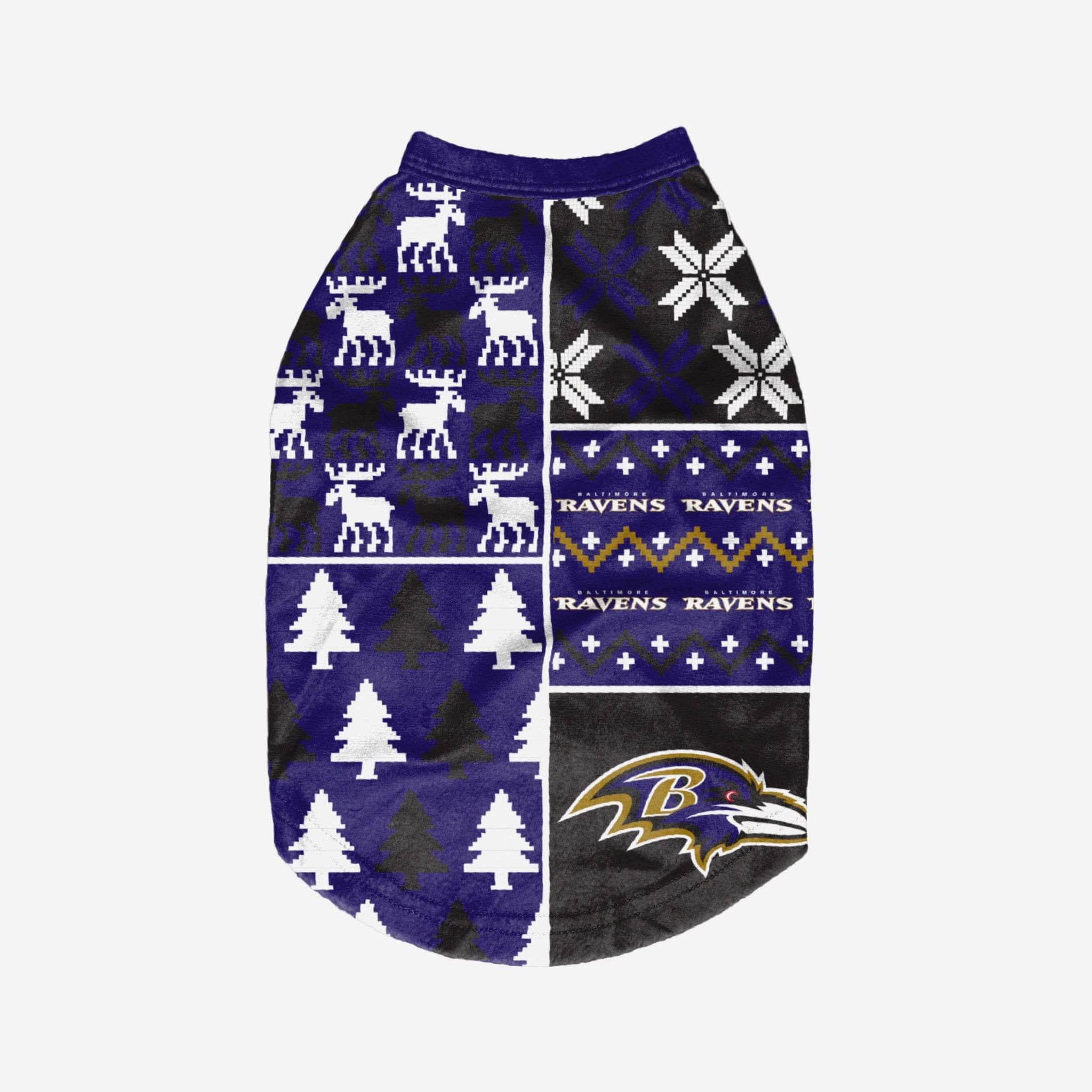 Show off your pet's holiday spirit with this dog sweater! Your good boy (or girl) will love this Baltimore Ravens Busy Block Dog Sweater so much, they'll be saying "woof bark awooo" (that's "thank you" in pup language). Don't forget to match your canine's sweater with a set of matching holiday pajamas!
