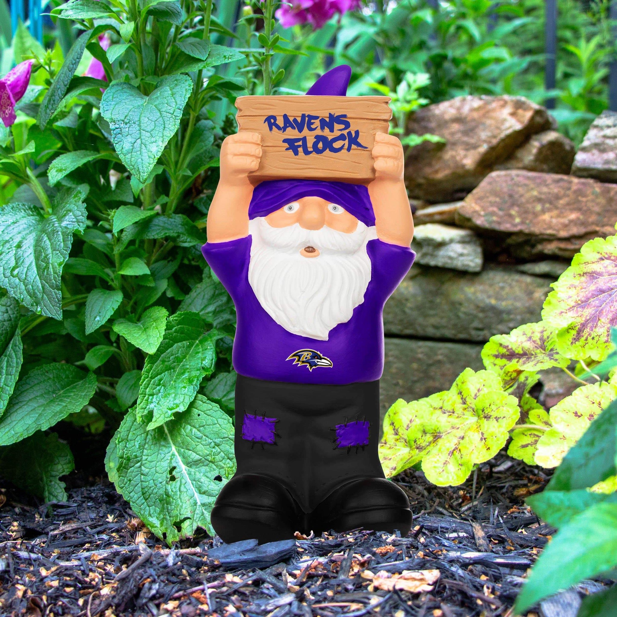 Green grass. Beautiful flowers. Fresh fruits and veggies. Your garden has all the essentials. Well, most of them. Can't forget your fandom. Just add this Baltimore Ravens Slogan Sign Mini Gnome to your garden's lineup and you'll be good to go.