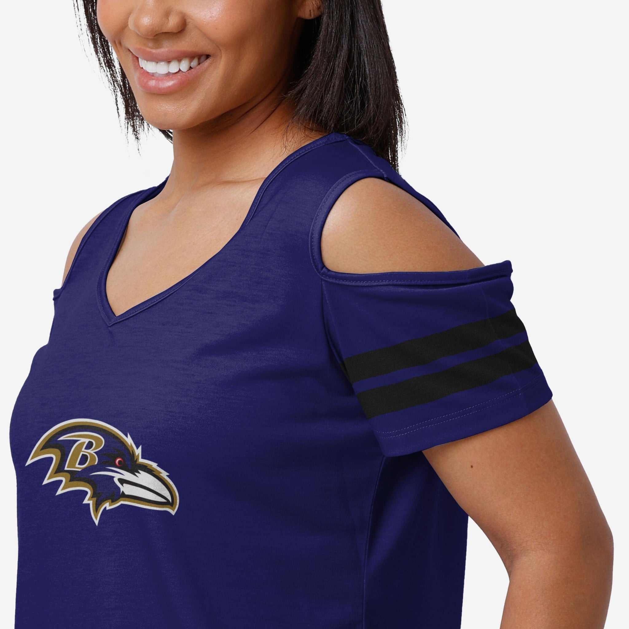 Baltimore Ravens Womens Cold Shoulder T-Shirt FOCO - FOCO.com