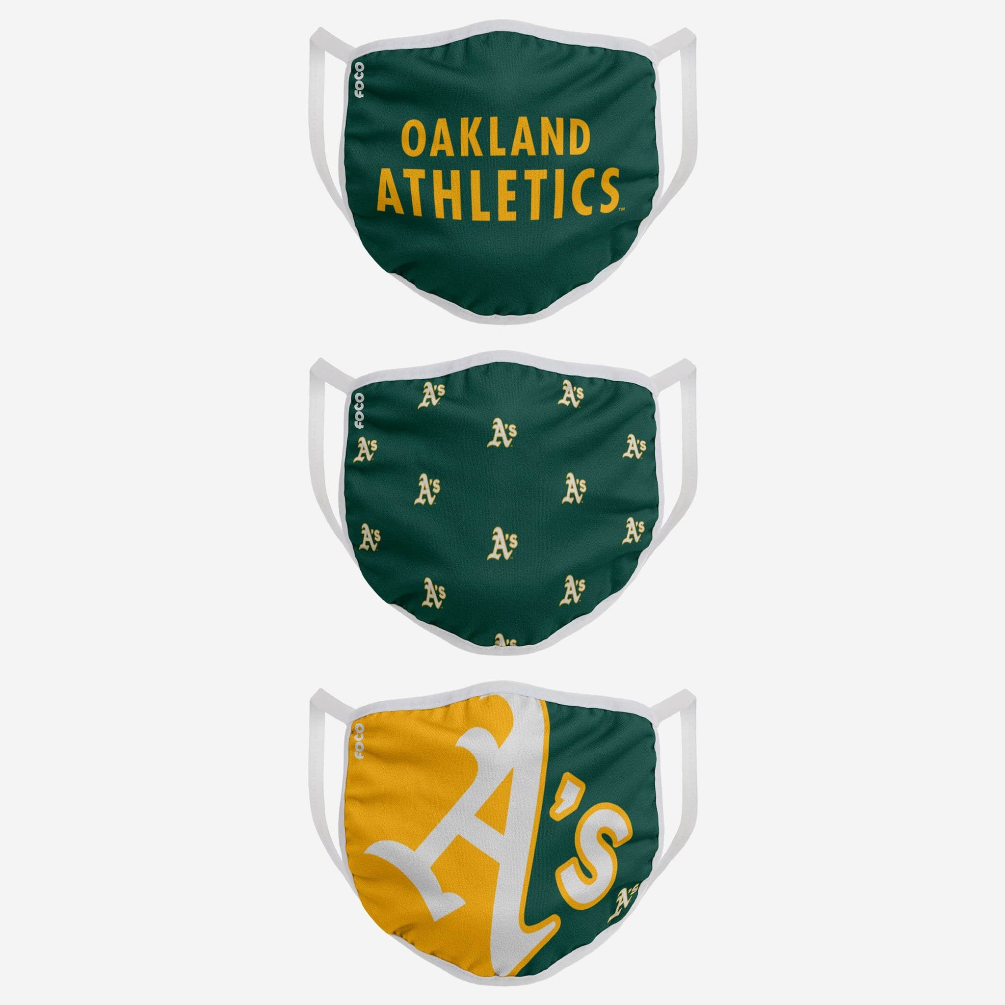 Oakland Athletics 3 Pack Face Cover FOCO - FOCO.com