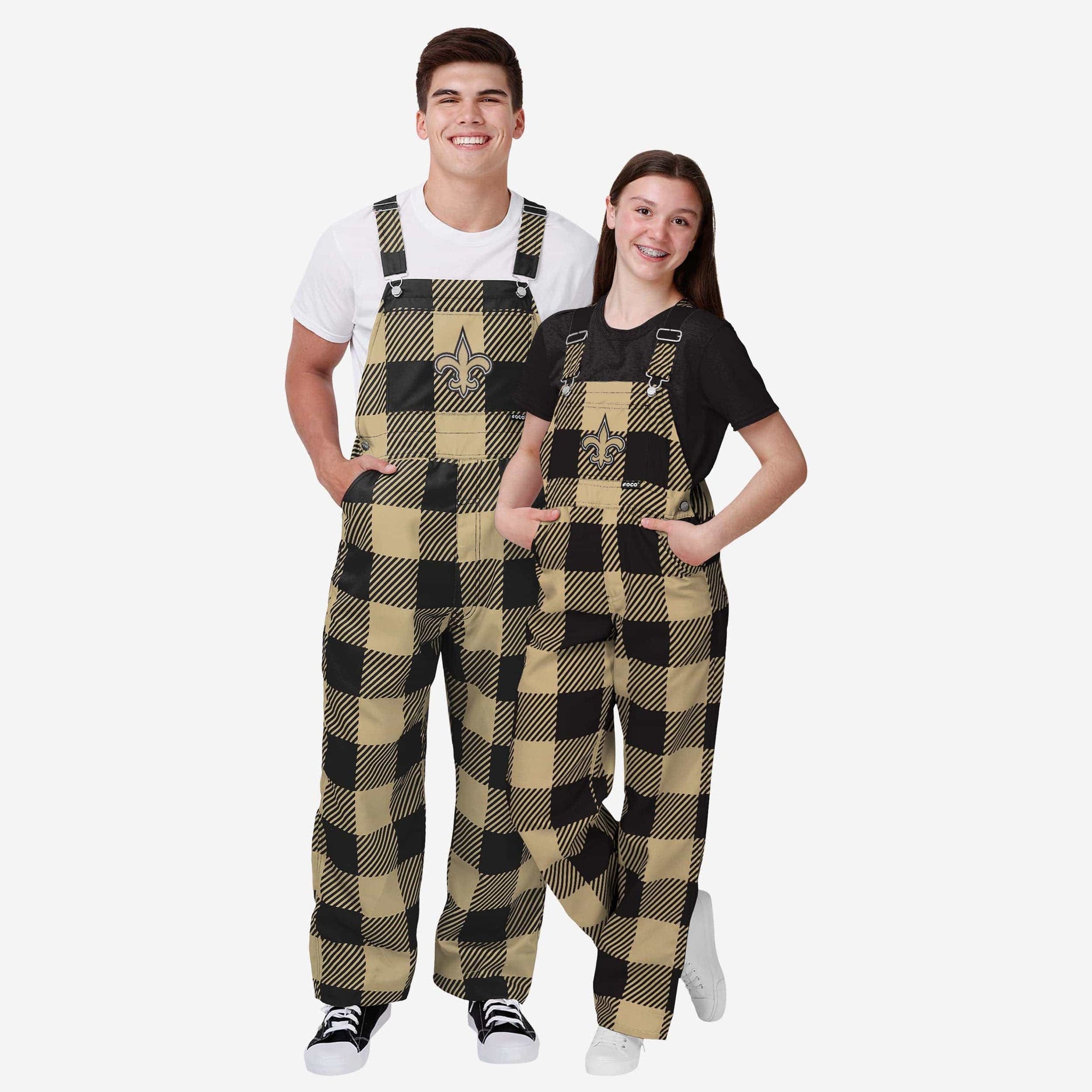 New Orleans Saints Buffalo Youth Plaid Bib Overalls FOCO - FOCO.com