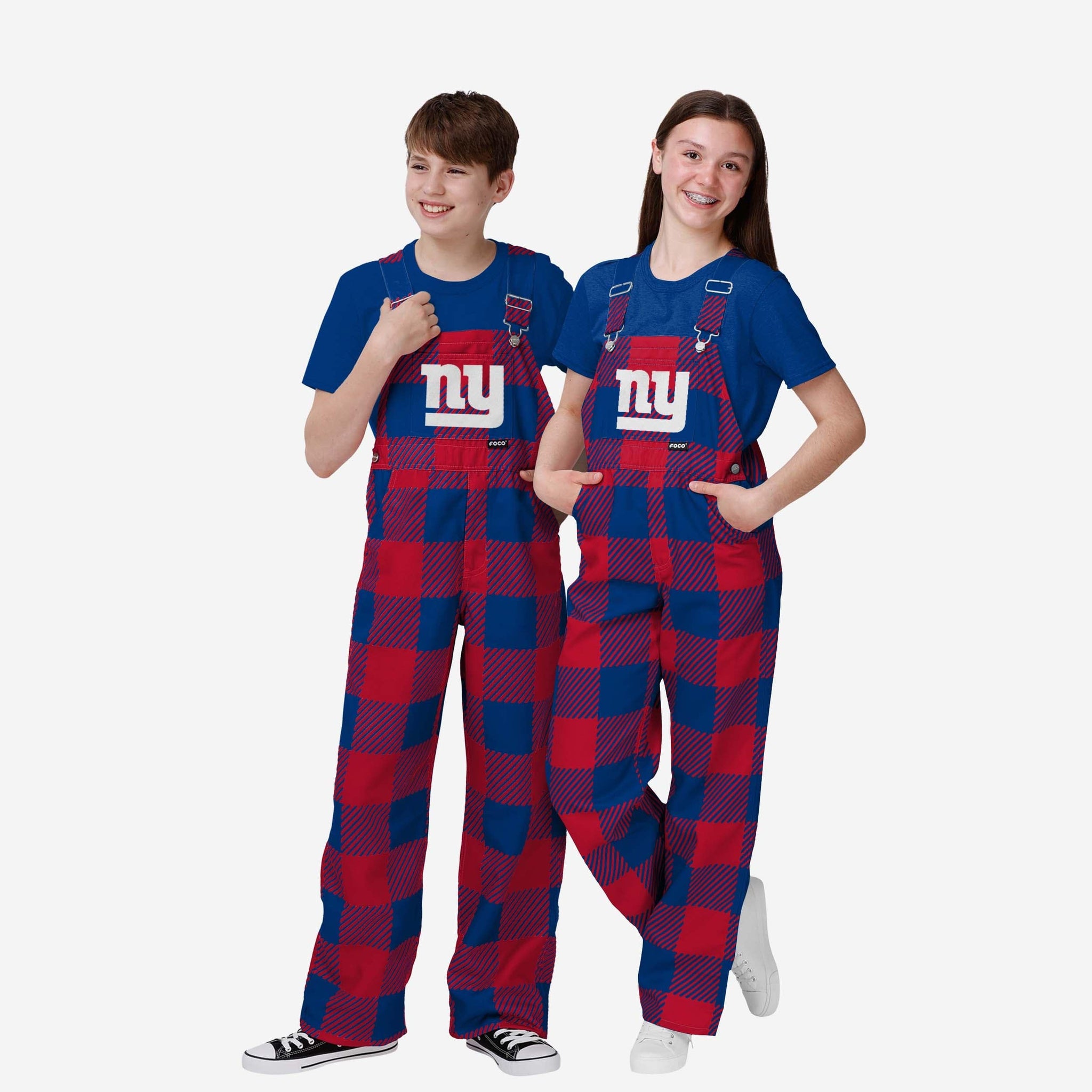 New York Giants Youth Plaid Bib Overalls FOCO - FOCO.com