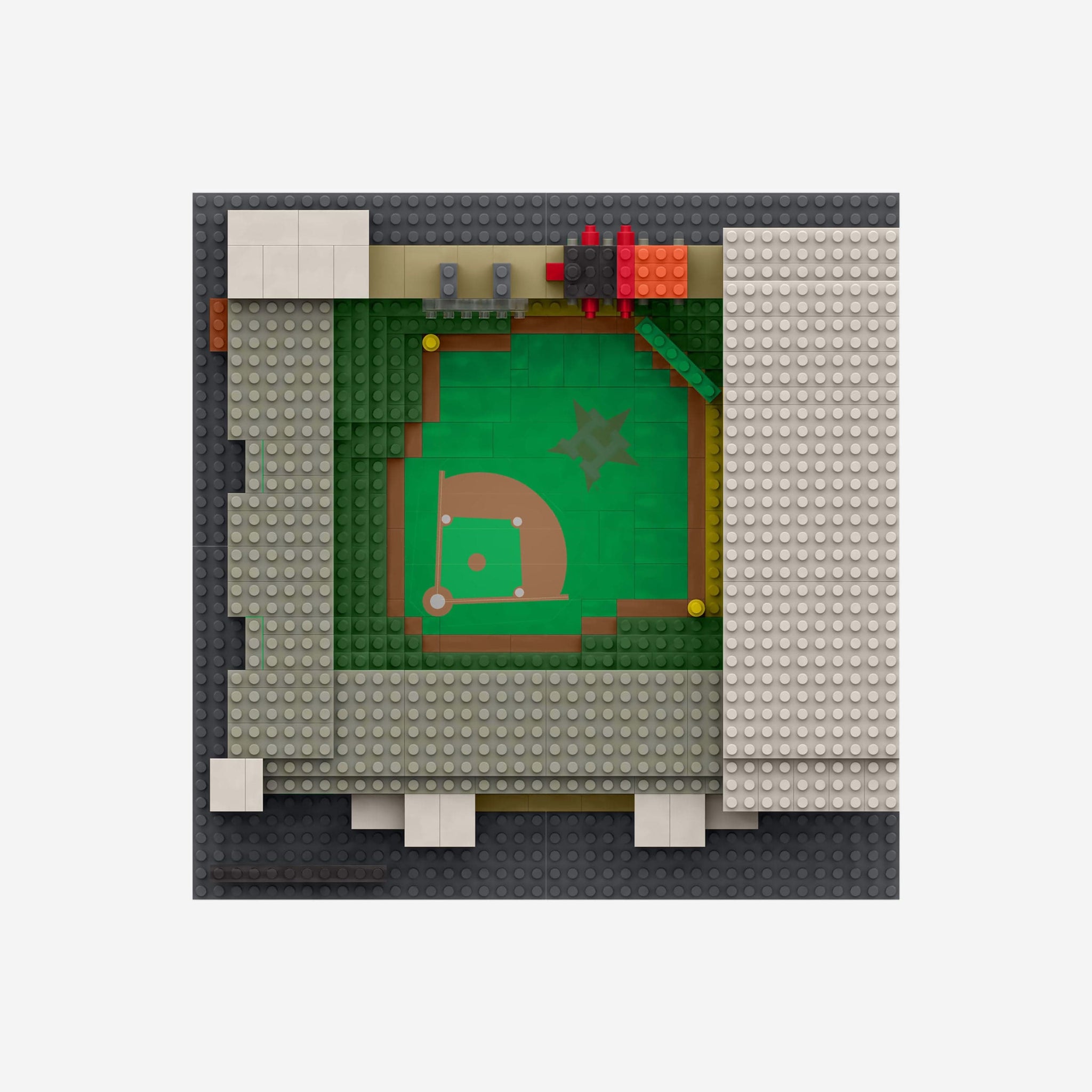 • Construction toy that assembles into miniature replica stadium that will be the centerpiece of your collection