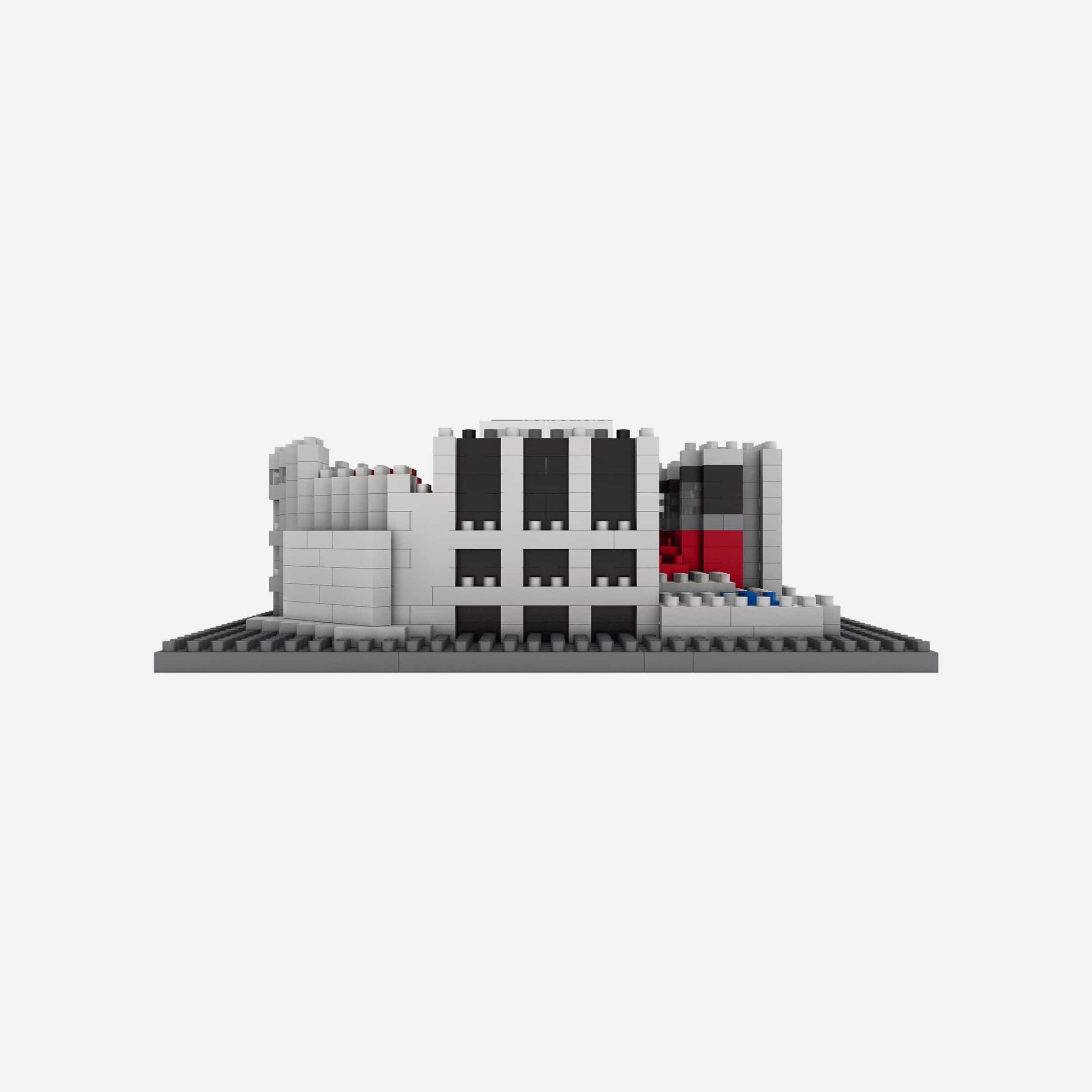 • Construction toy that assembles into miniature replica stadium that will be the centerpiece of your collection