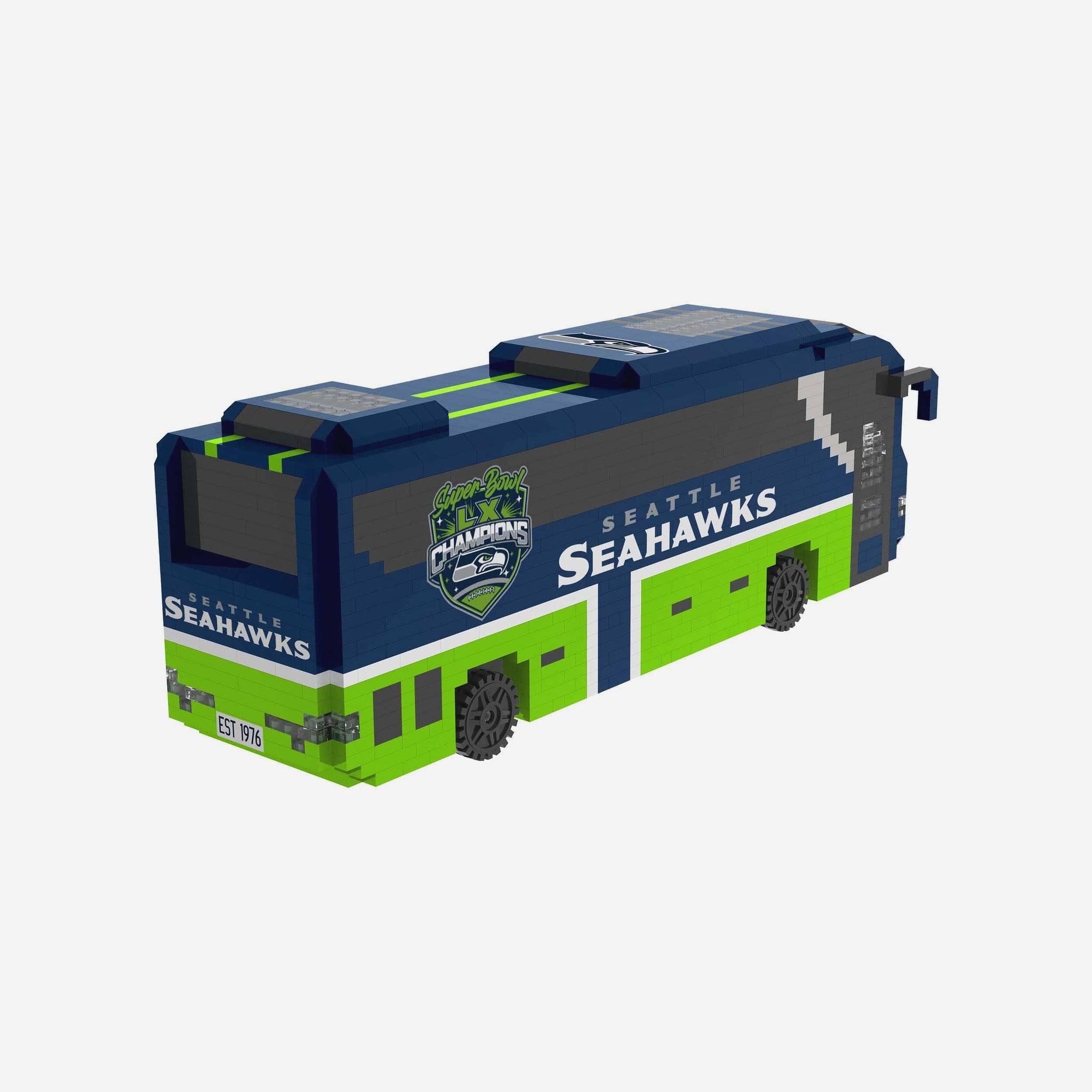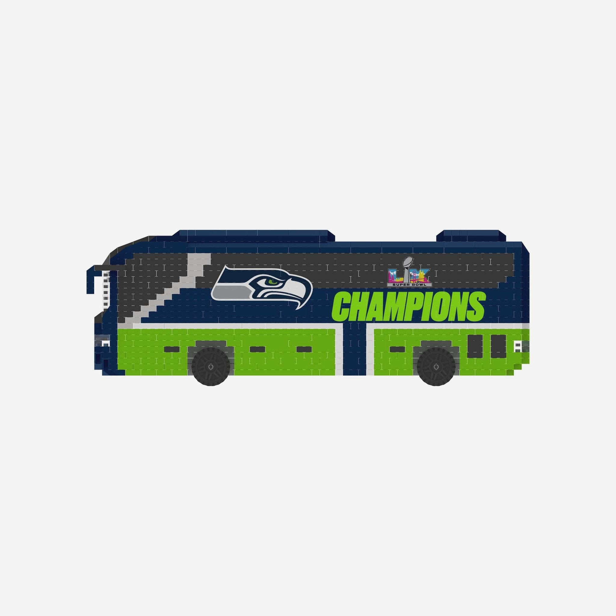 All aboard the championship express! The Seattle Seahawks Super Bowl LX Champions BRXLZ Bus is ready to roll into your collection with Super Bowl pride packed in every piece.