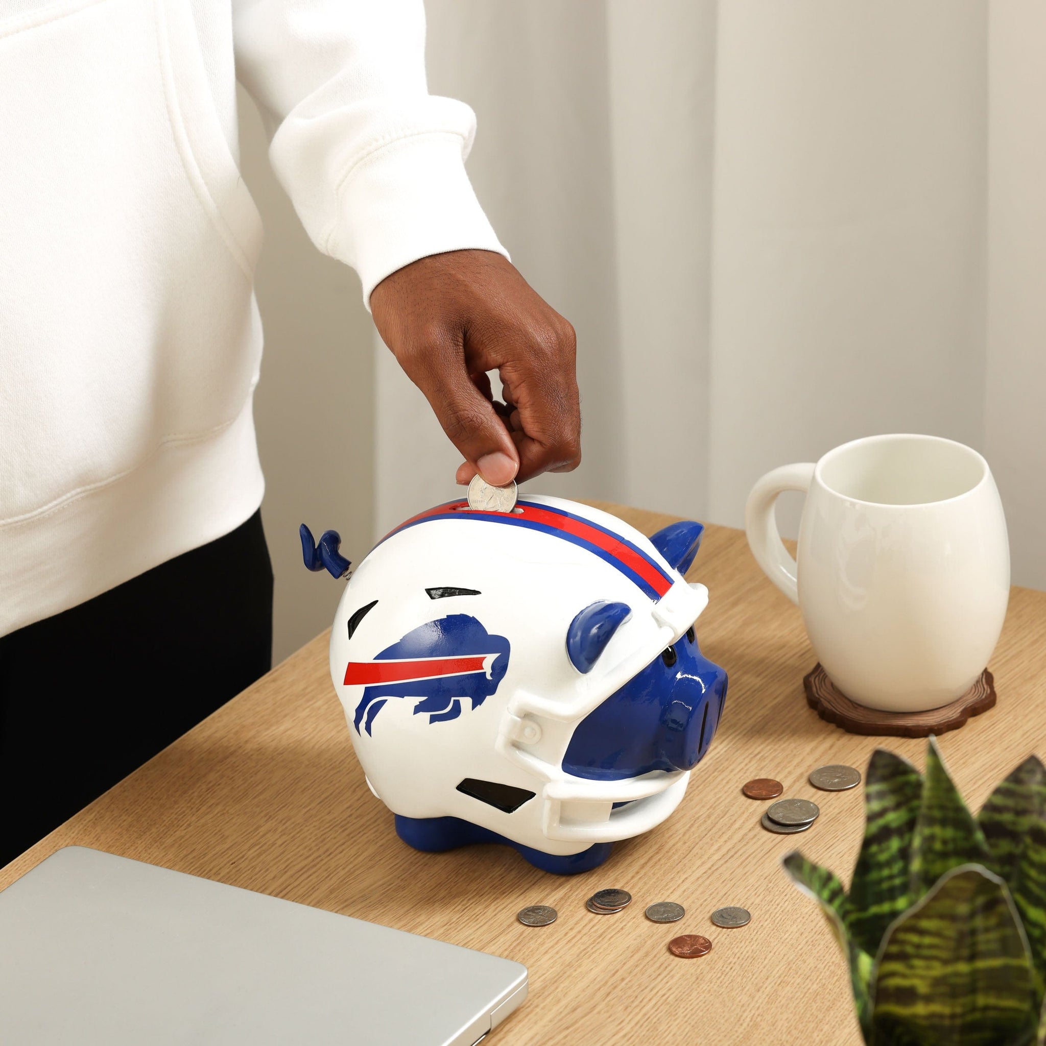 This piggy doesn't just carry the team spirit - This pig carries your change, too. Don't get what we're saying? It'll make "cents" when you've got this Buffalo Bills Helmet Piggy Bank in your collection.