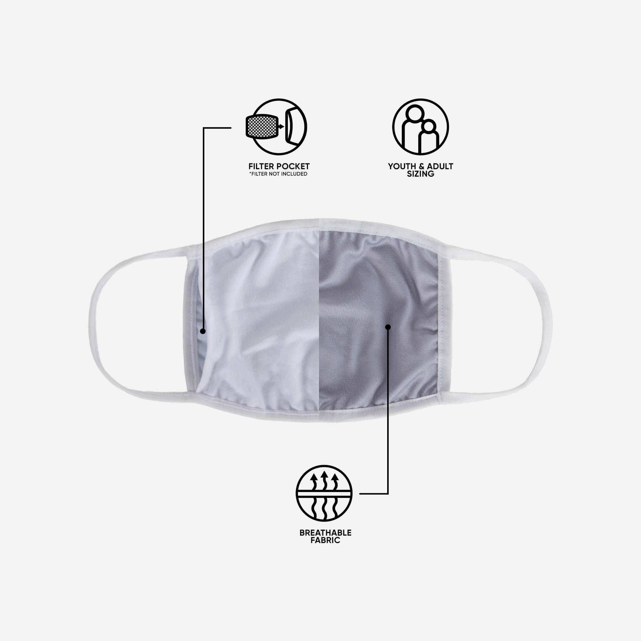 - One face cover with team-colored camouflage design and bold team logo display for even more team spirit