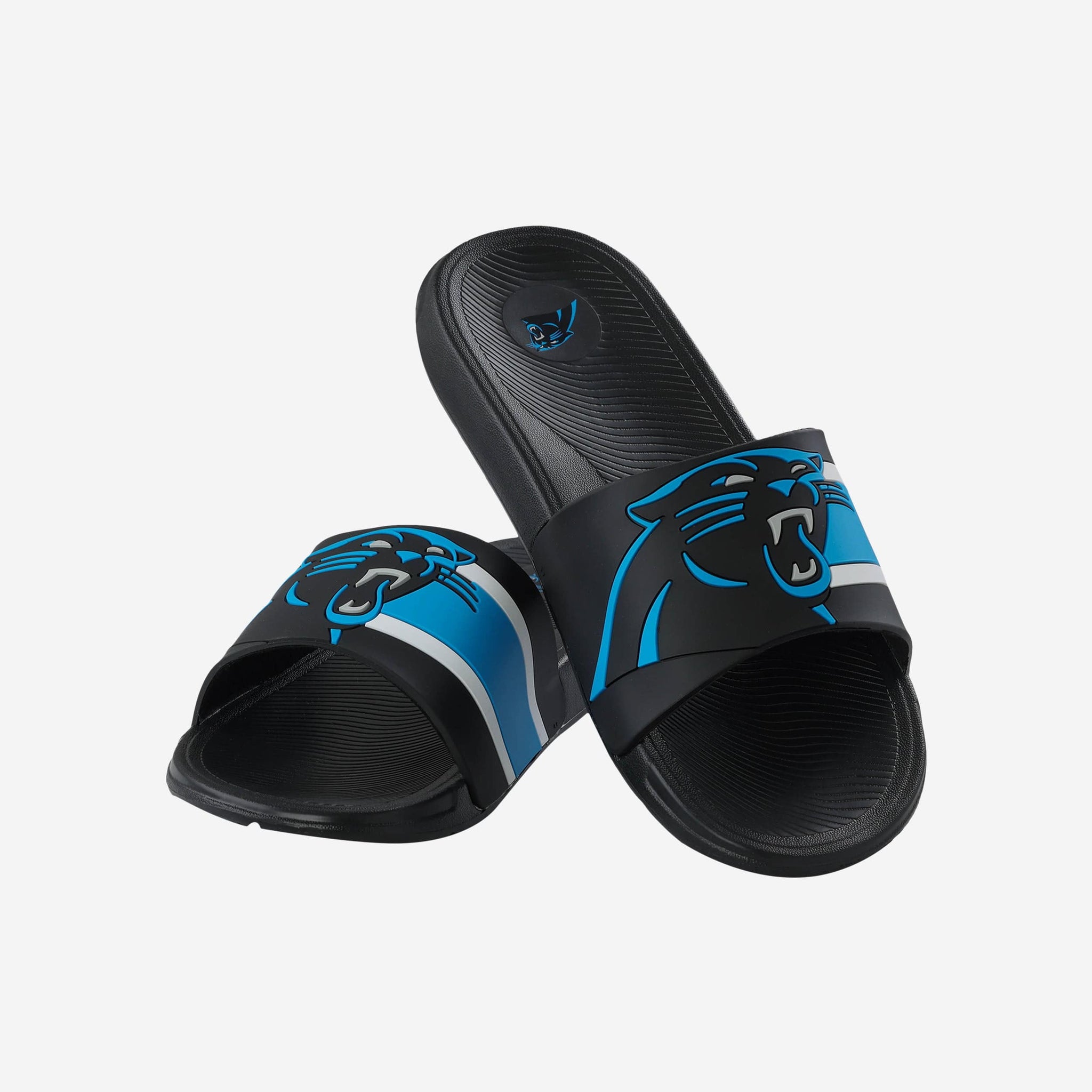 These Carolina Panthers Striped Big Logo Raised Slides give a whole new meaning to the idea of putting some pep in your step.