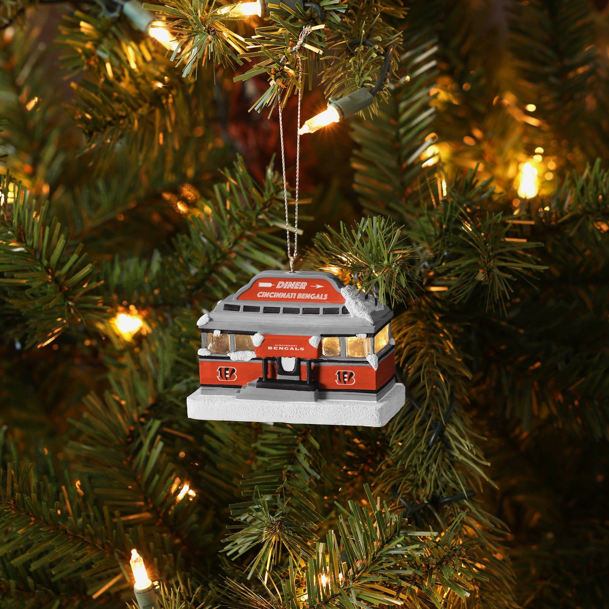 This Cincinnati Bengals Light Up Diner Ornament is the best thing on the menu, right up there with a loaded cheeseburger and gravy fries!