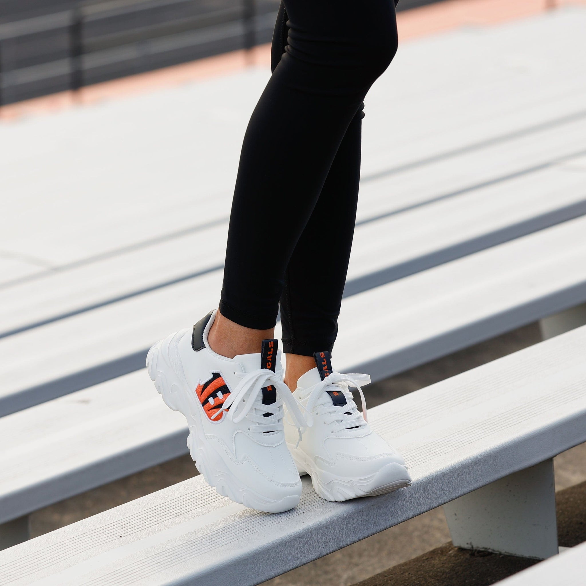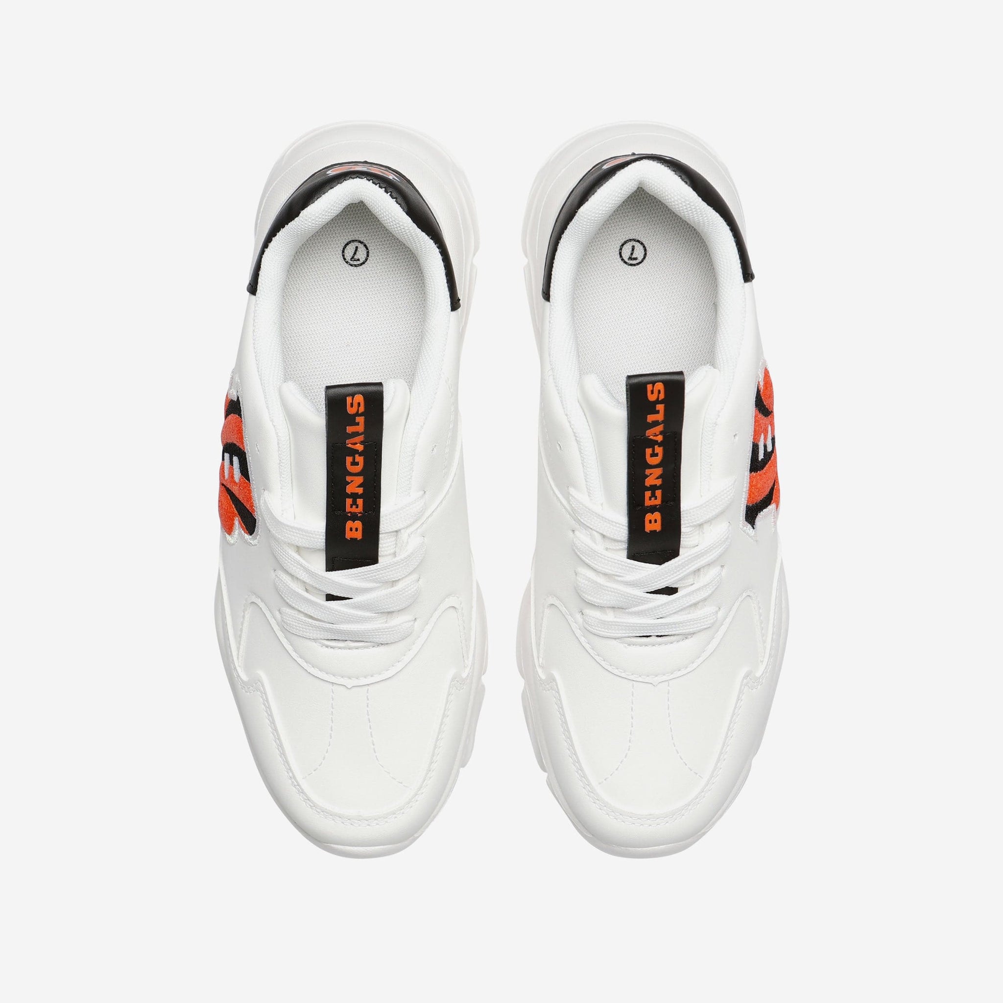 Looking for a way to step up your fan fashion game? You’ve found it! Put some team spirit in your stride with the Cincinnati Bengals Vintage White Chunky Sneakers.