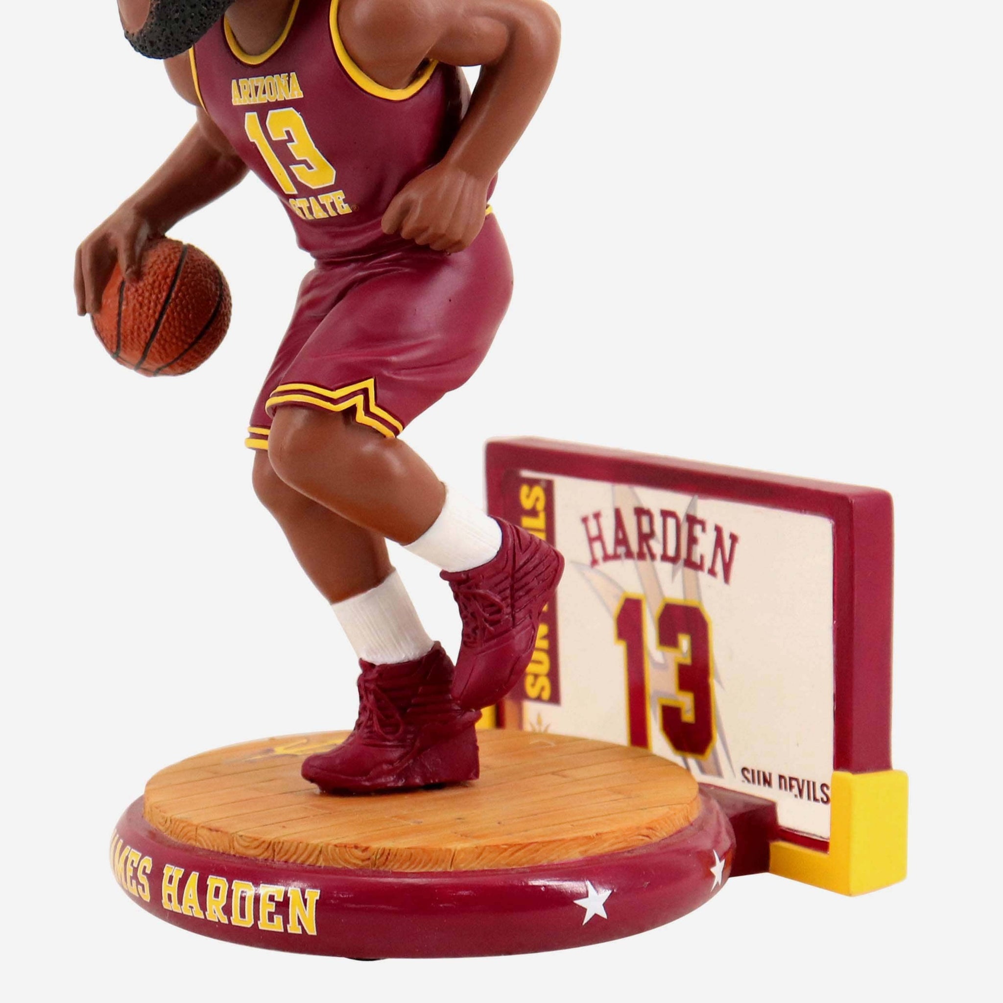He was a king of the court on his college campus before making highlight reels as a pro. Add a little madness to your collection and kick it old school with this James Harden Arizona State Sun Devils Arena Bobblehead.