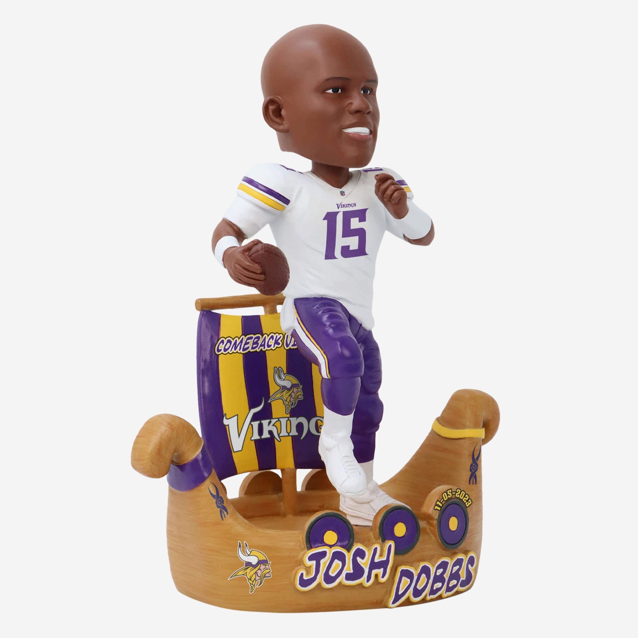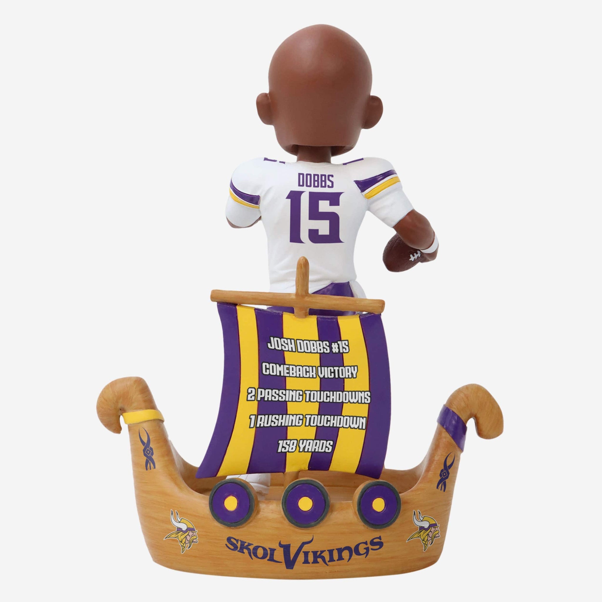 20-for-30. 158 yards. Two TDs through the air and another on the ground. All while coming off the bench. Dobbs' debut was one to remember, and you can immortalize that dramatic win with the Joshua Dobbs Minnesota Vikings Gamebreaker Bobblehead.