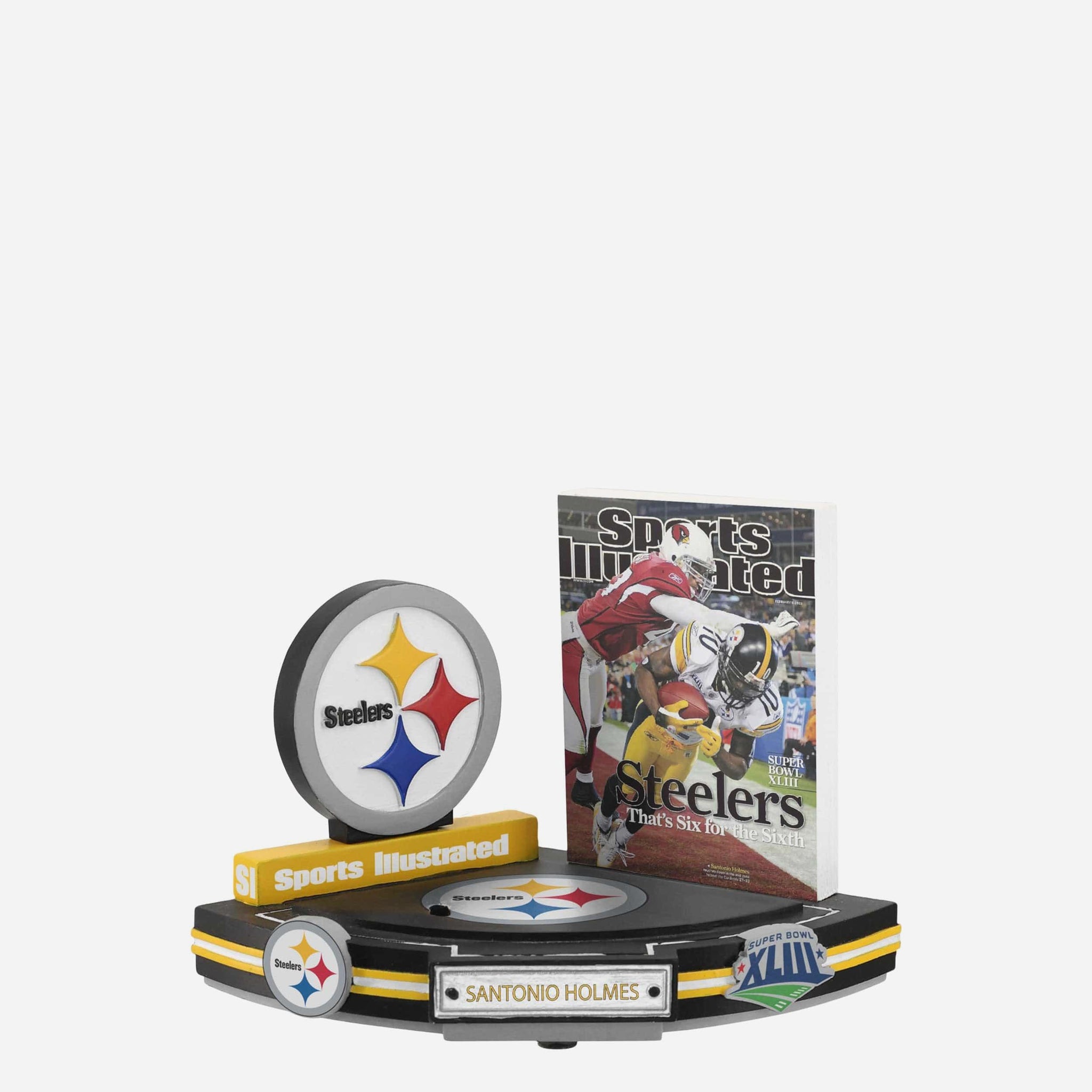 Relive one of the greatest moments in Super Bowl history with this Santonio Holmes Pittsburgh Steelers Six For Sixth Super Bowl XLIII Sports Illustrated Cover Bobblehead!