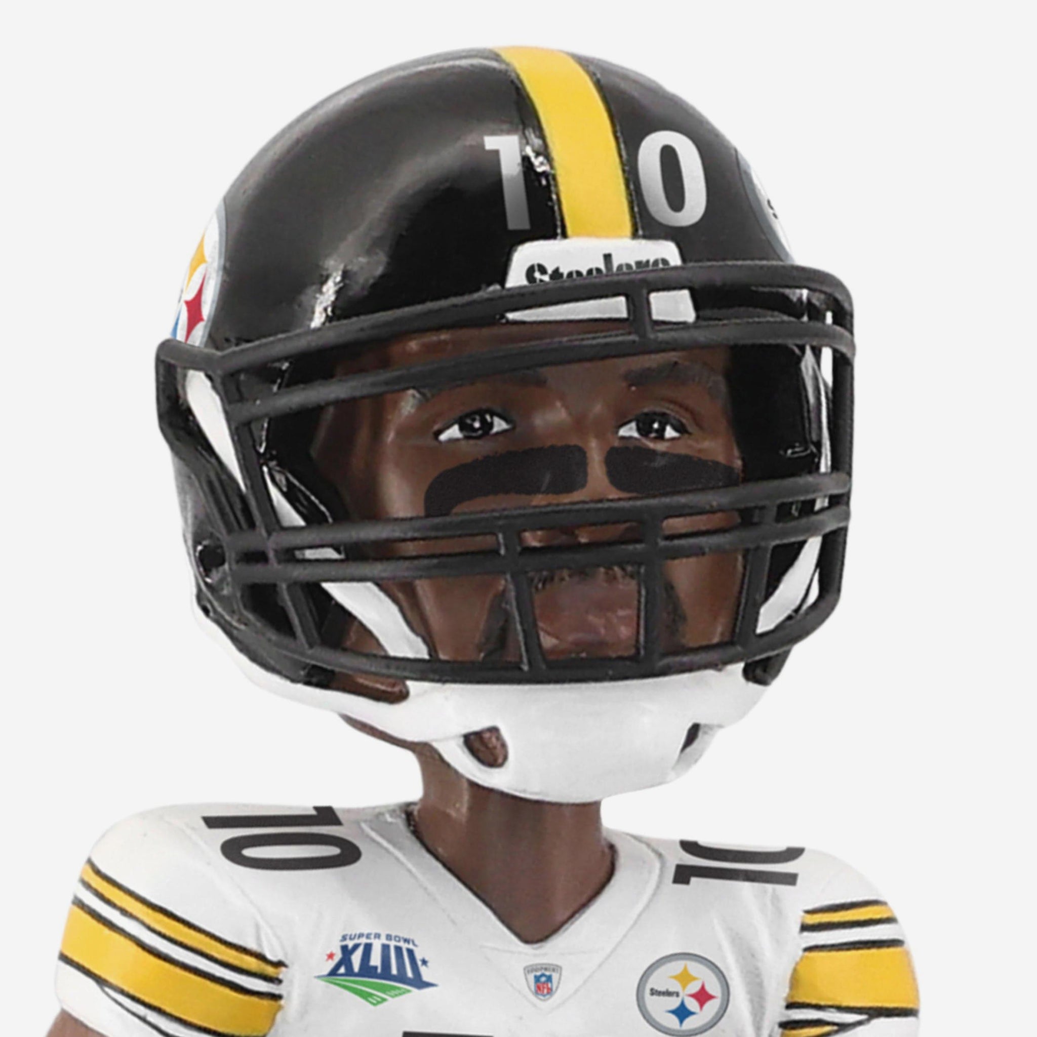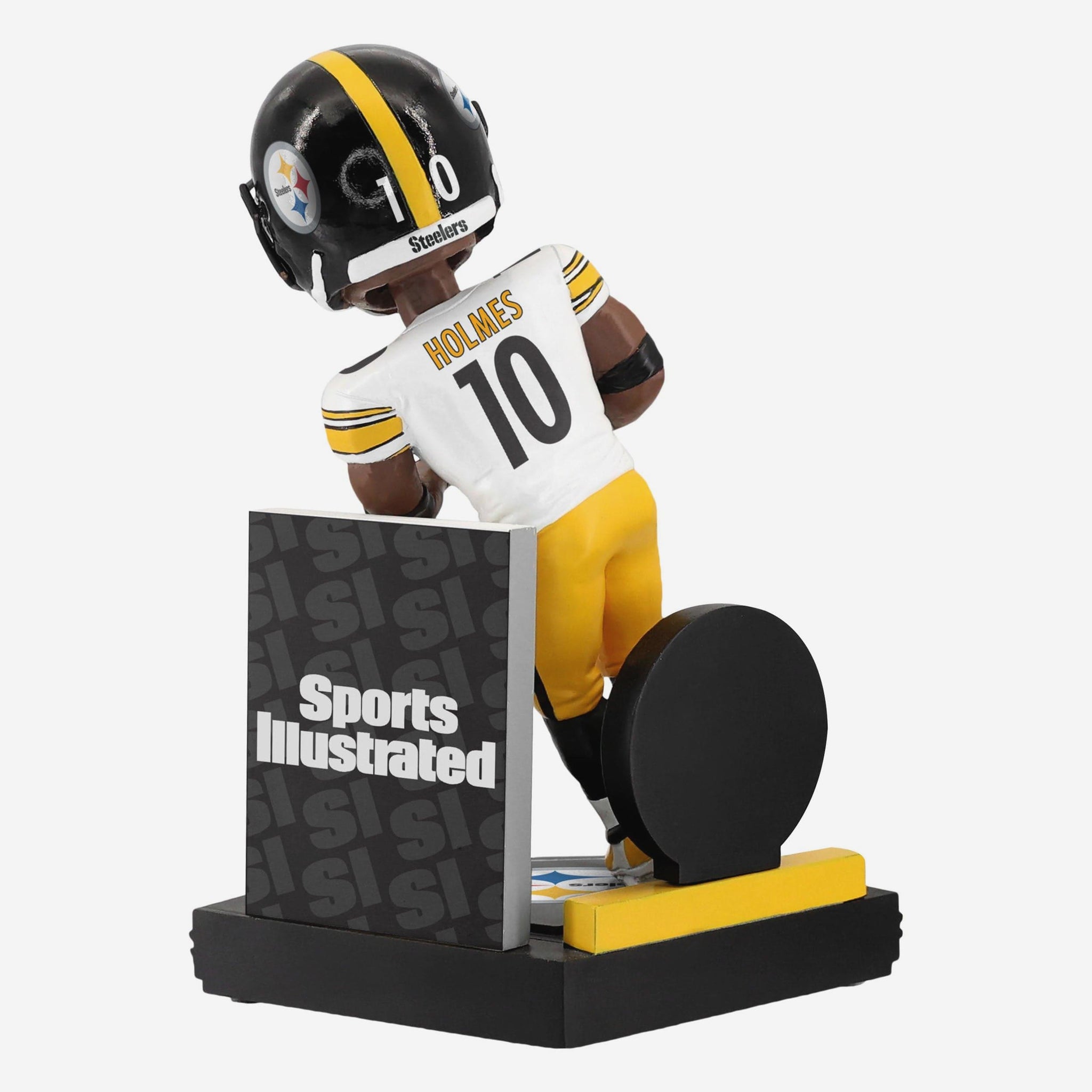- Portrays Holmes wearing his Pittsburgh Steelers gameday uniform in an iconic action pose from his legendary Super Bowl XLIII performance