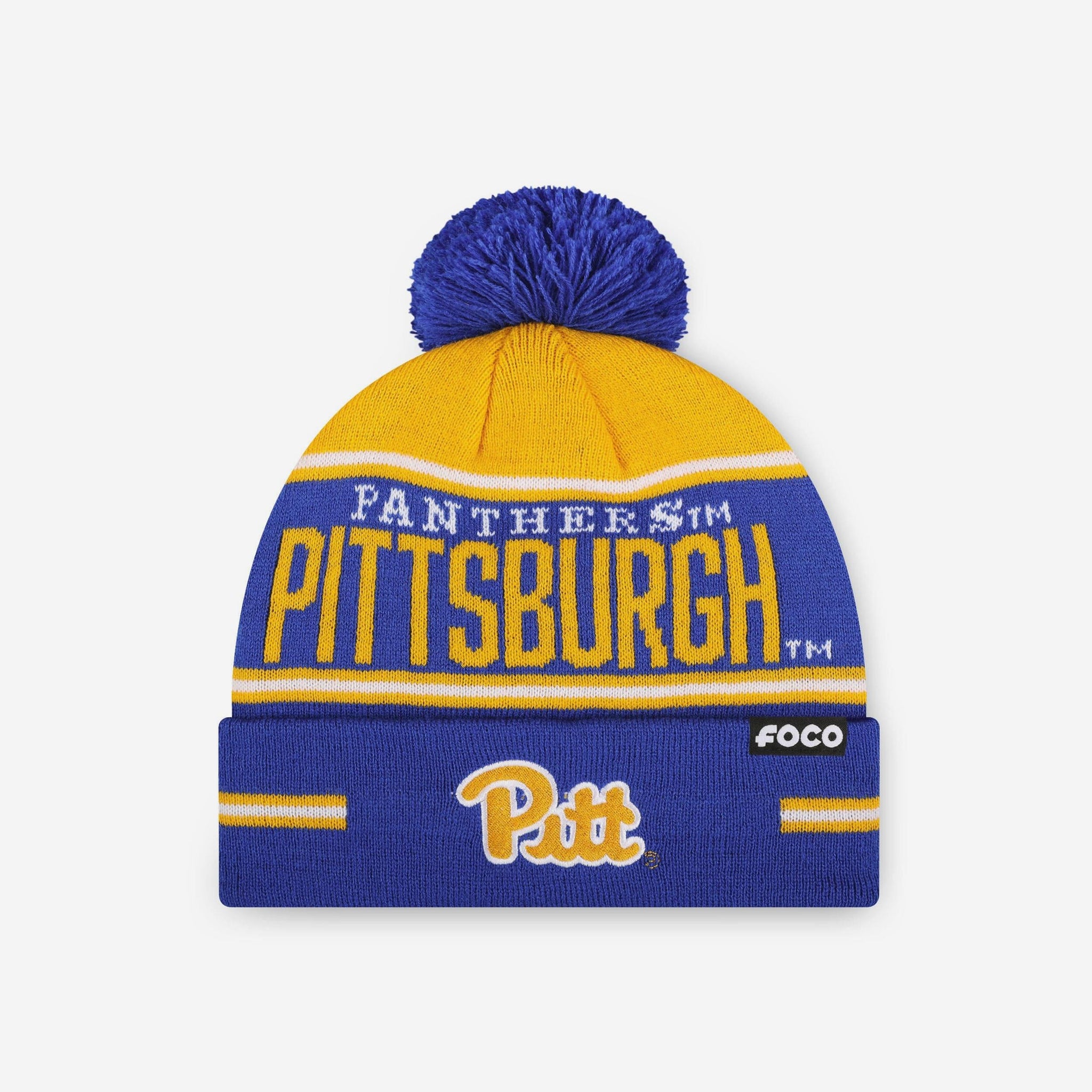 Pittsburgh Panthers Big Wordmark Stripe Pom Beanie FOCO - FOCO.com