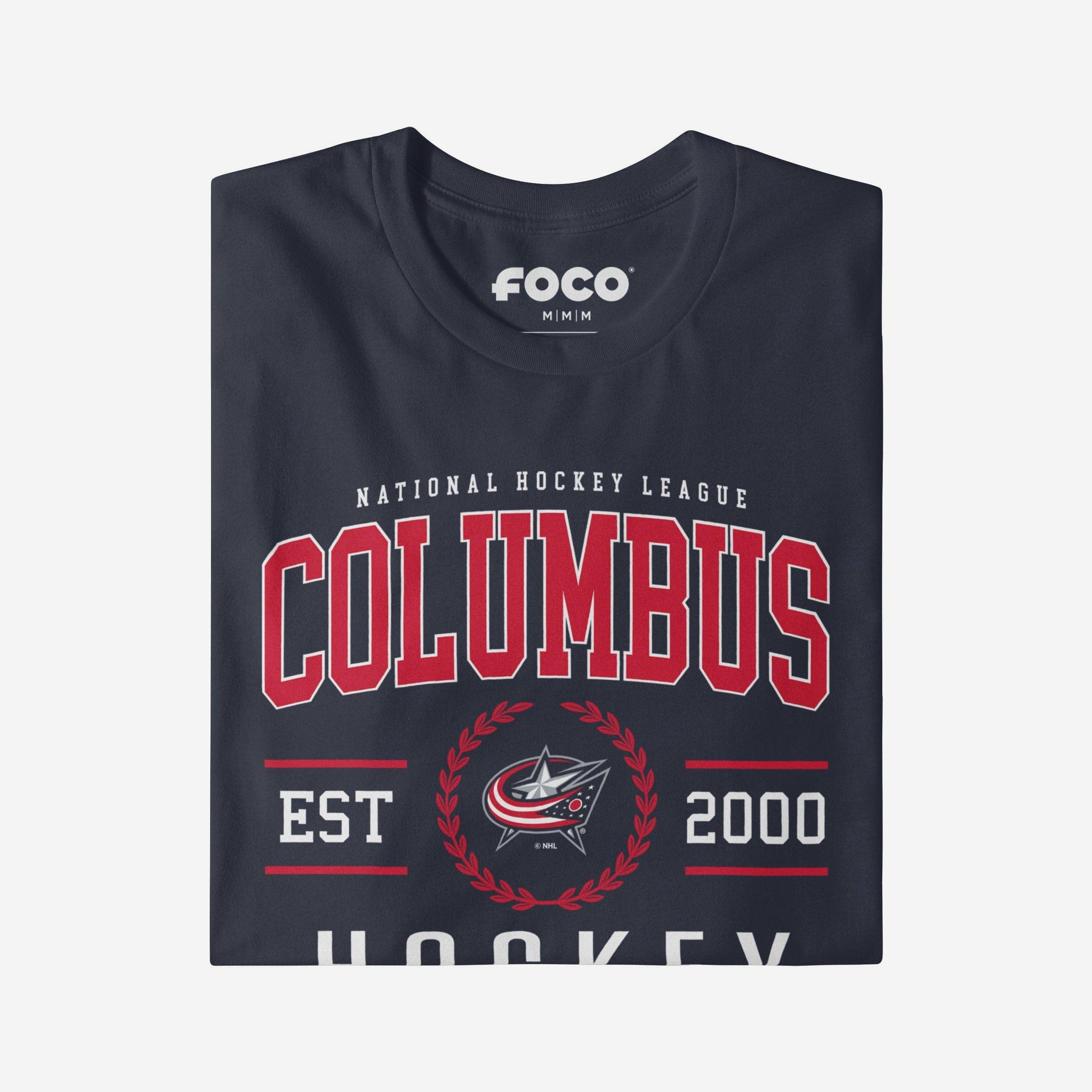 Columbus Blue Jackets Hockey Legacy Crest T-Shirt FOCO Navy S - FOCO.com