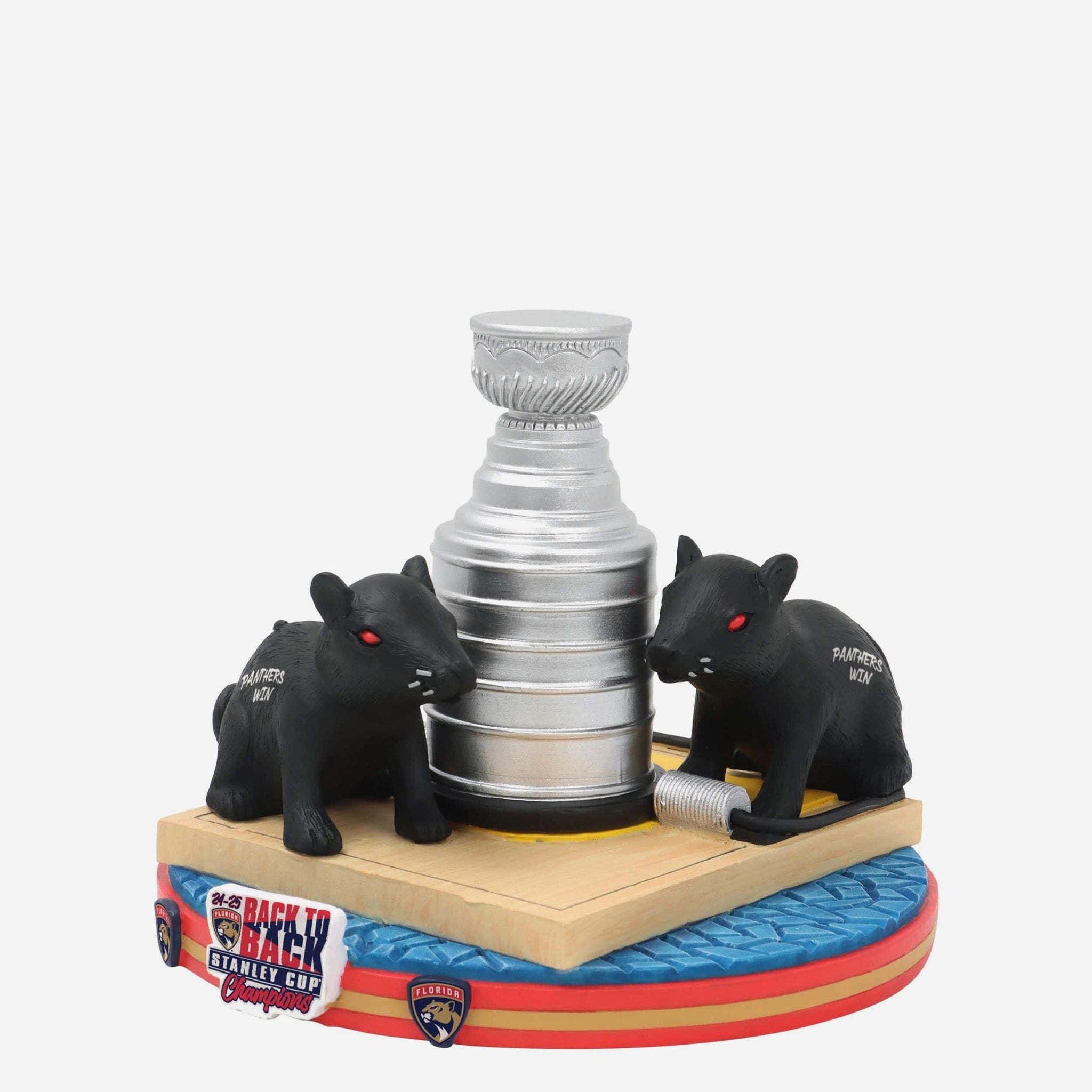 These rats don’t respond to cheese. They’re more of the trophy type! Celebrate the Panthers’ back-to-back glory like a true Florida fan with the Florida Panthers 2025 Back To Back Stanley Cup Champions Rat Trick Mini Bobblehead Scene.