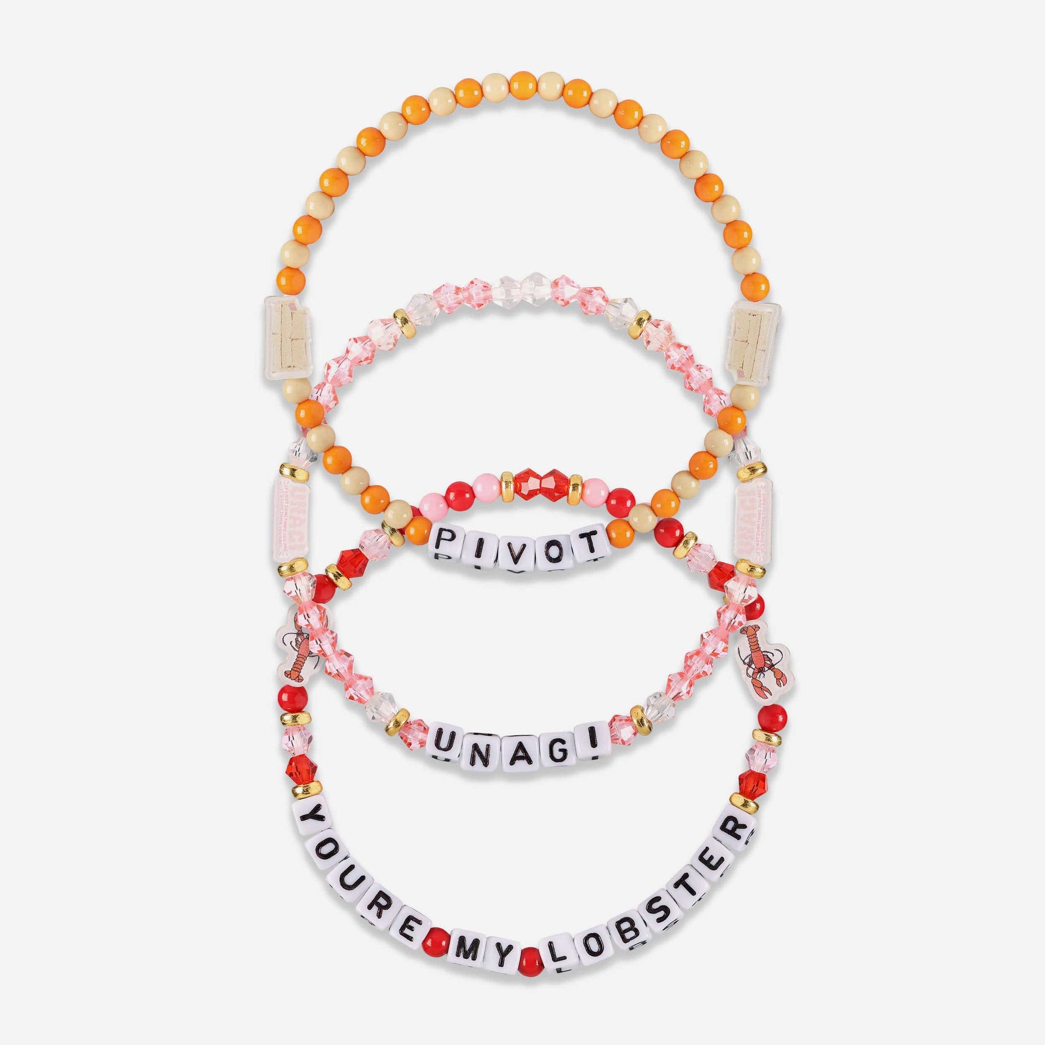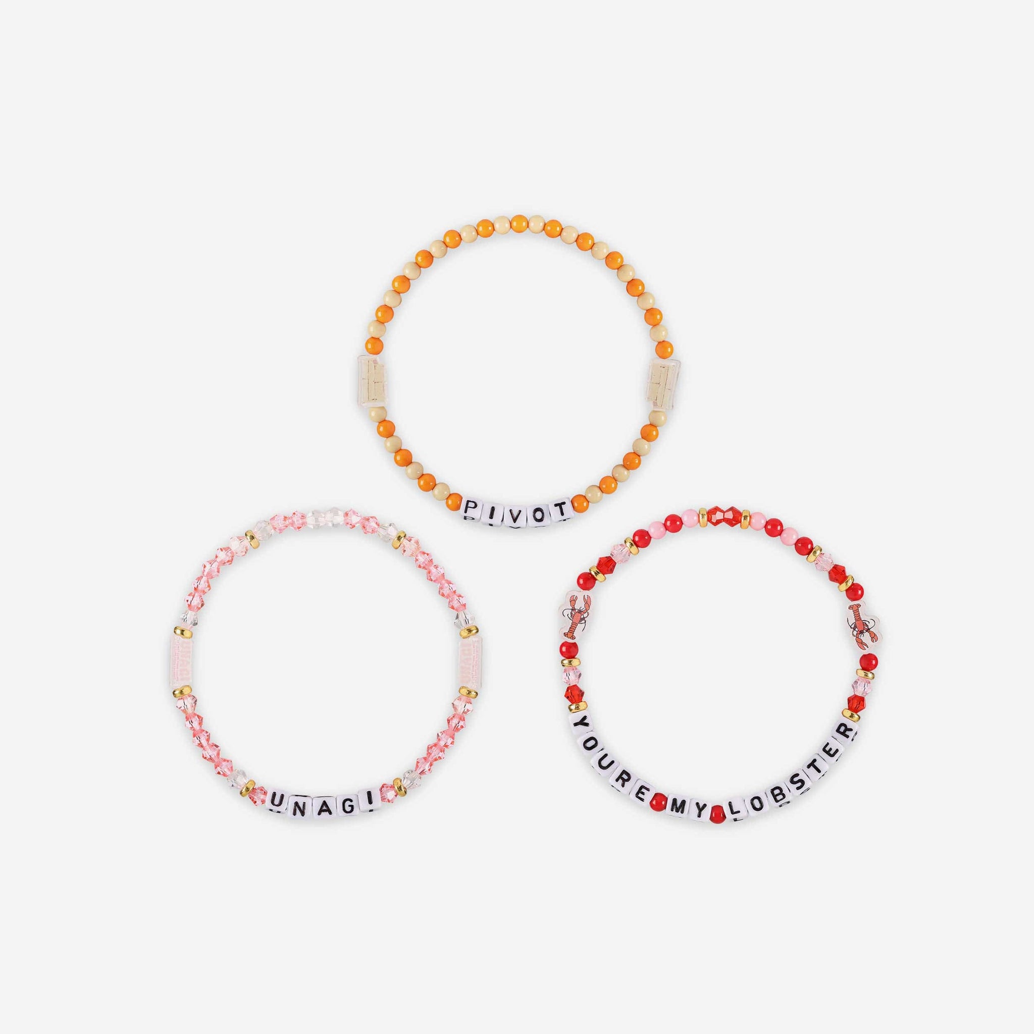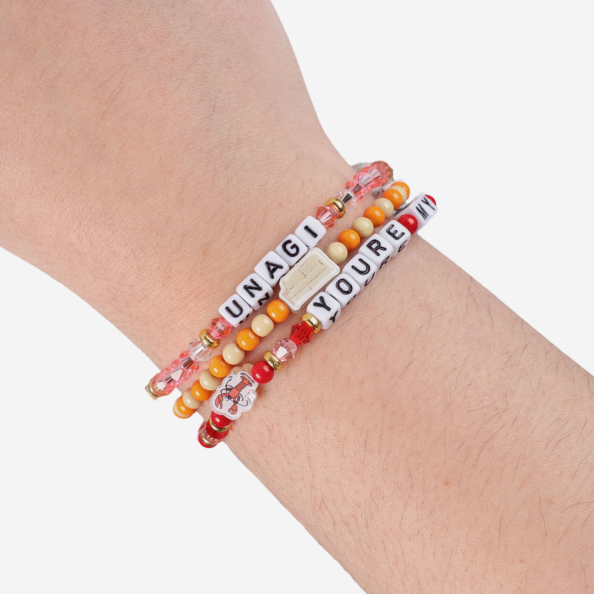- Thematic words displayed: Letter cubes are organized on a friendship bracelet string to display words and messages that will make sure your fandom is always front and center.