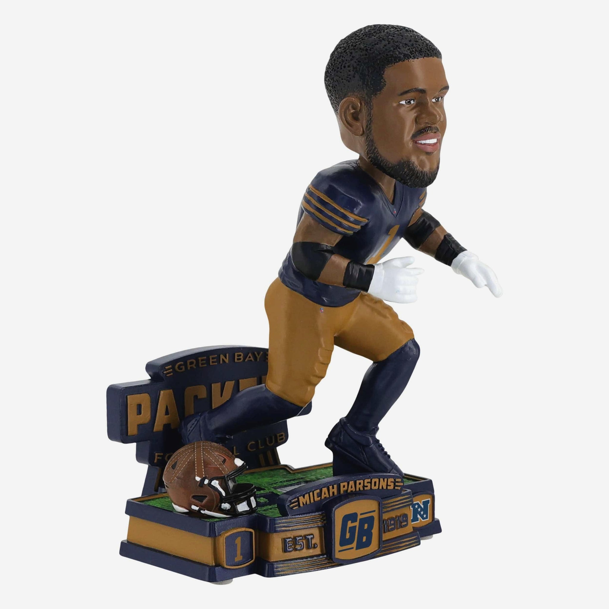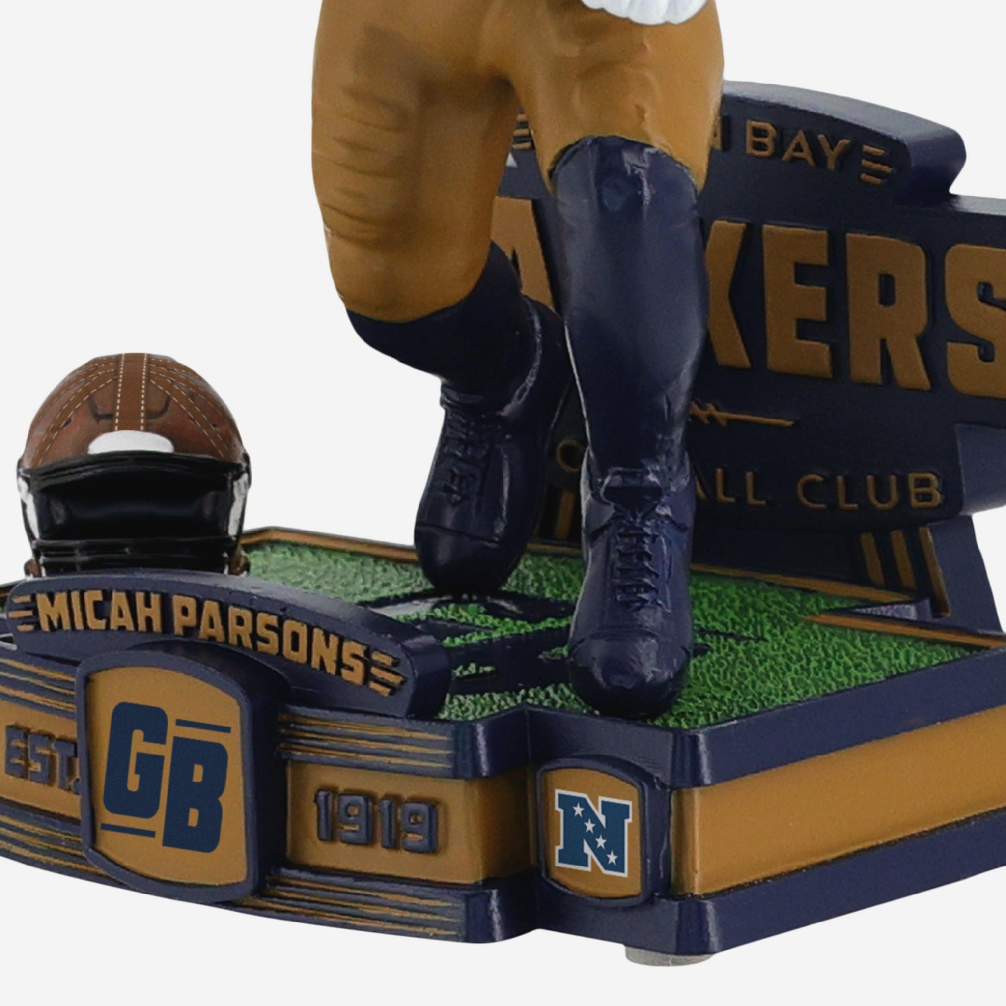 • Team logo, “EST. 1919,” and “GB” details on the base to honor Green Bay’s rich football legacy