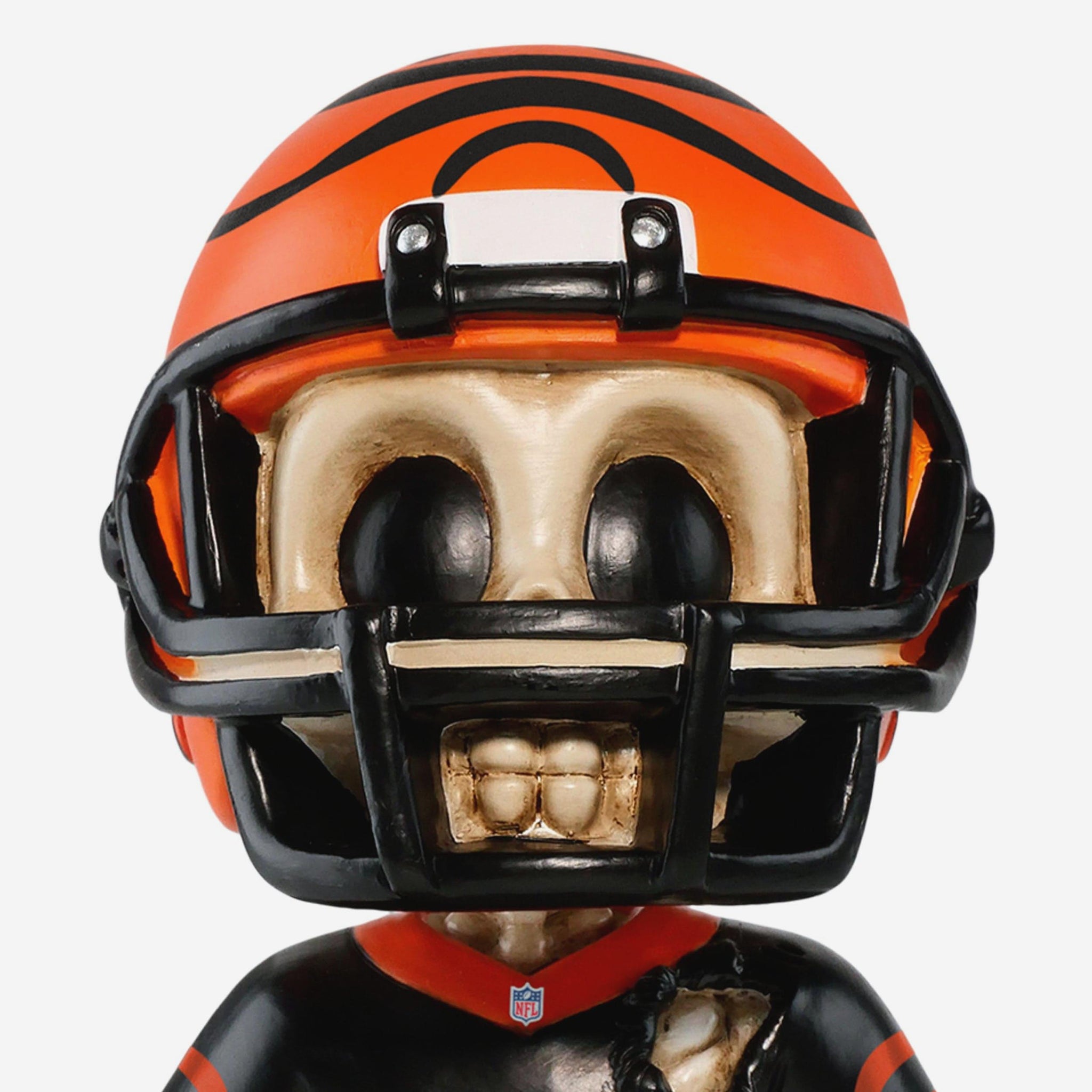 Bring spooky season straight to the gridiron with this Cincinnati Bengals 2025 Team Skull Mini Bobblehead! Perfect for fans who love to blend their game day spirit with a little Halloween flair, this bone-chilling collectible is ready to haunt your collection — in the best way possible.
