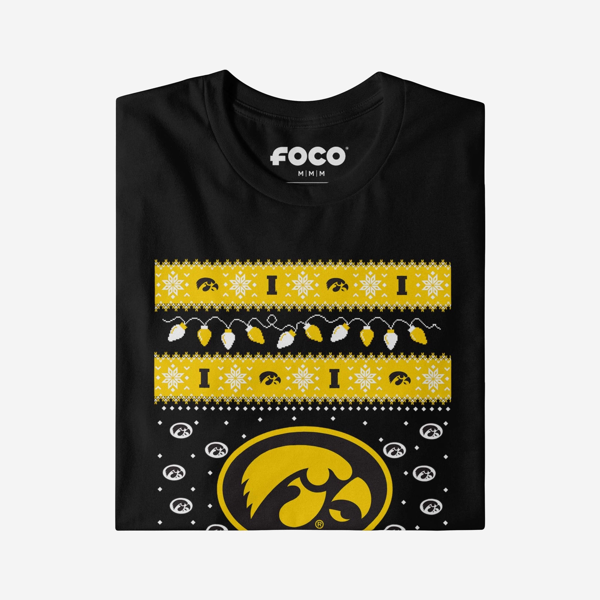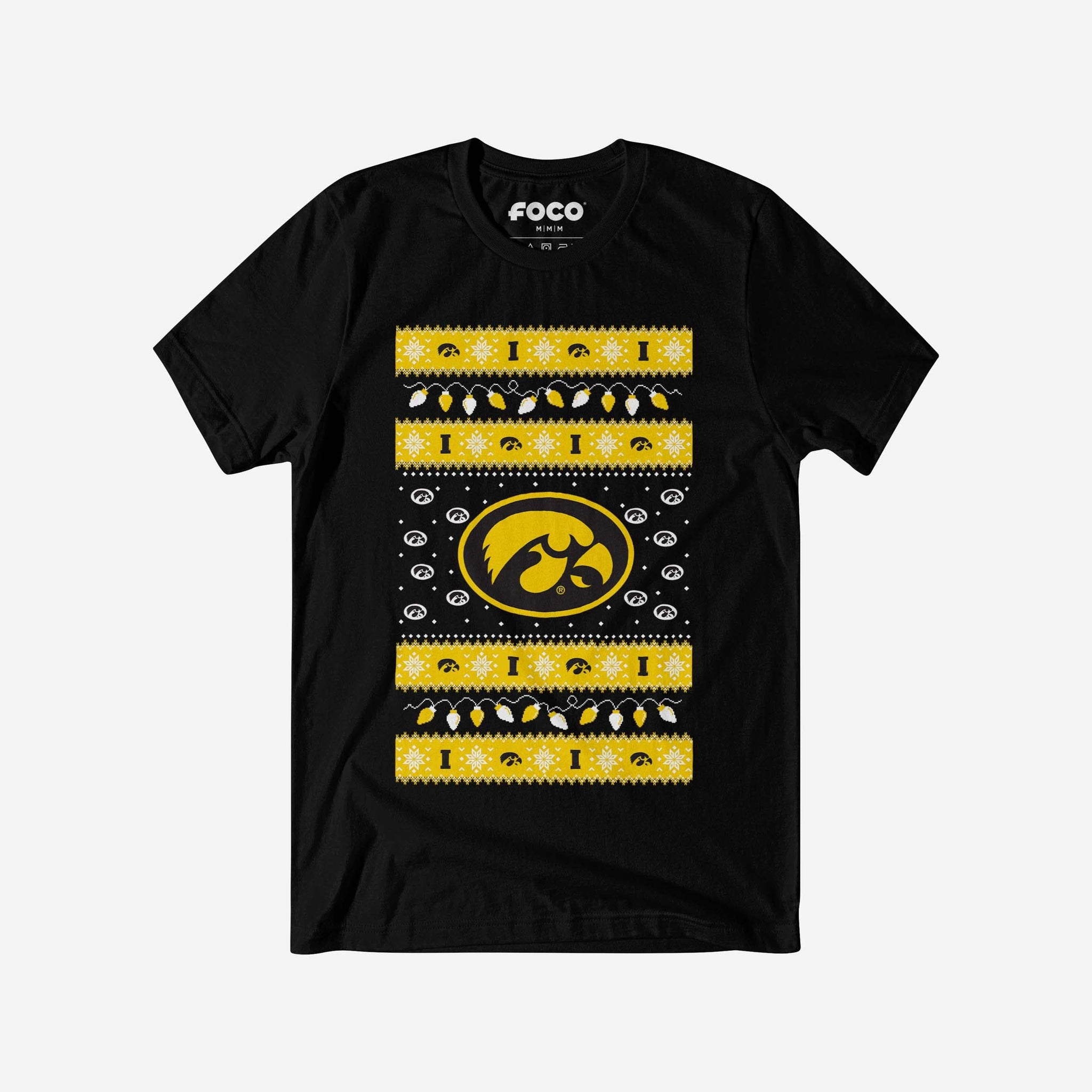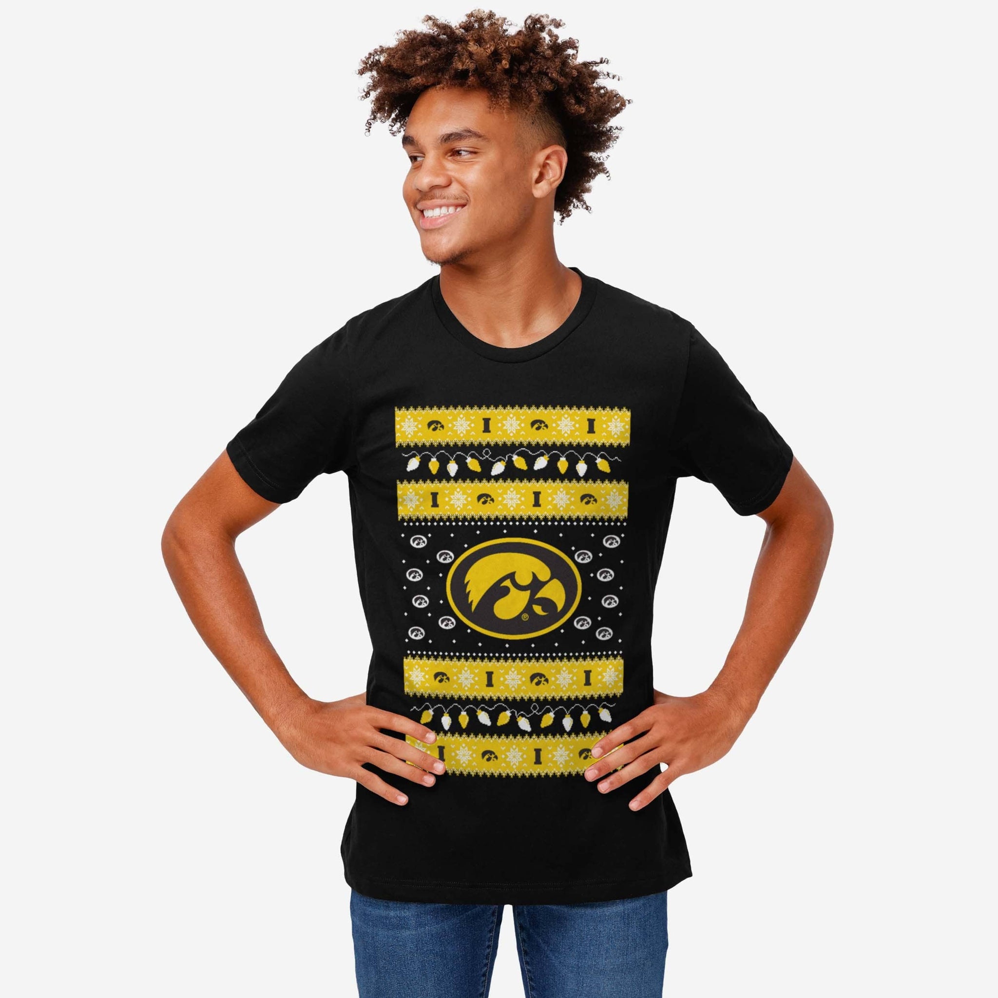 ‘Tis the season for some festive fandom! Make this holiday merry and bright with the Iowa Hawkeyes Holiday Lights Sweater T-Shirt.
