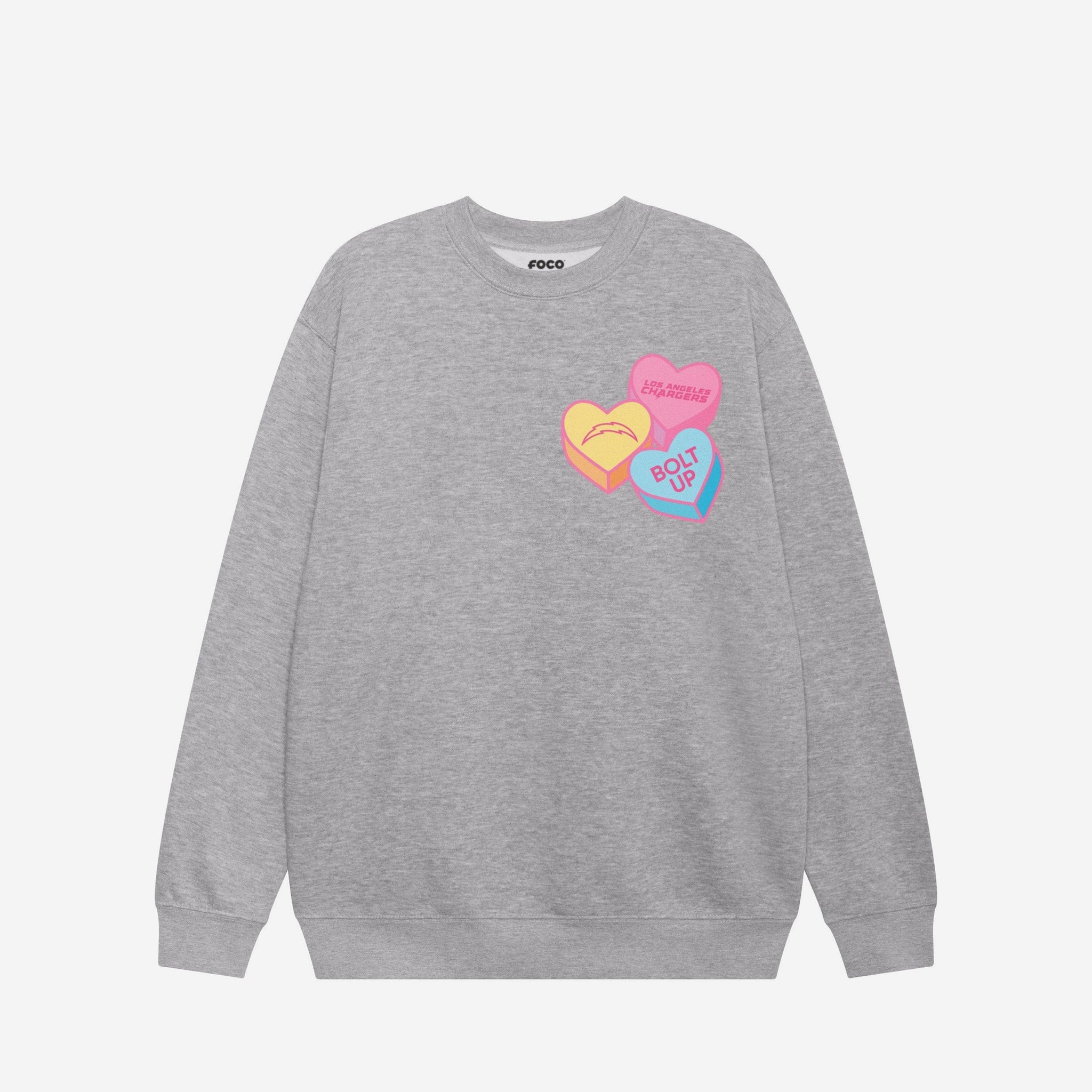 Los Angeles Chargers Candy Heart Crew Neck Sweatshirt FOCO Athletic Heather S - FOCO.com