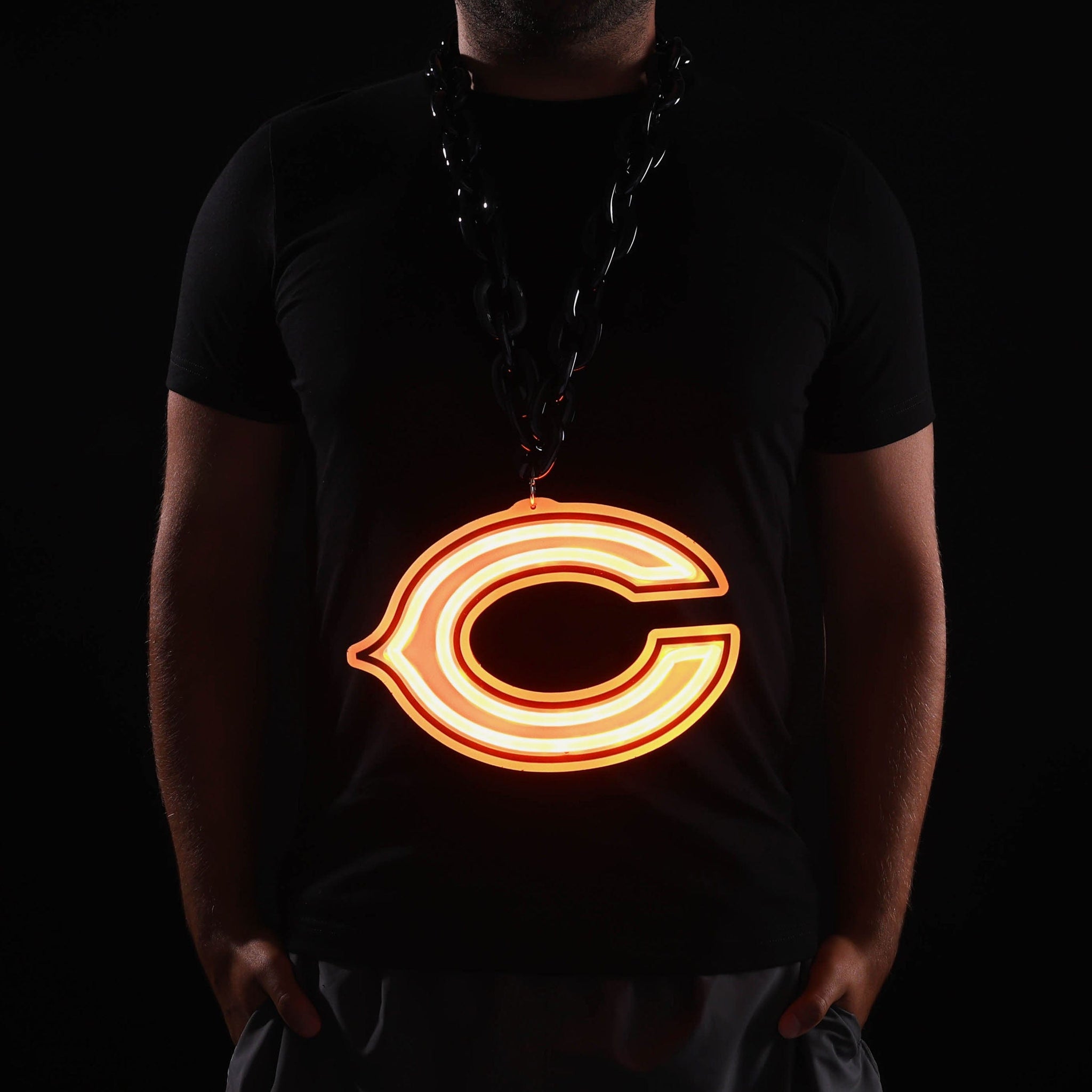 Fandom so bright, you’re going to need shades! Get ready to light things up on gamedays and beyond with the Chicago Bears LED Neon Big Logo Chain Necklace.