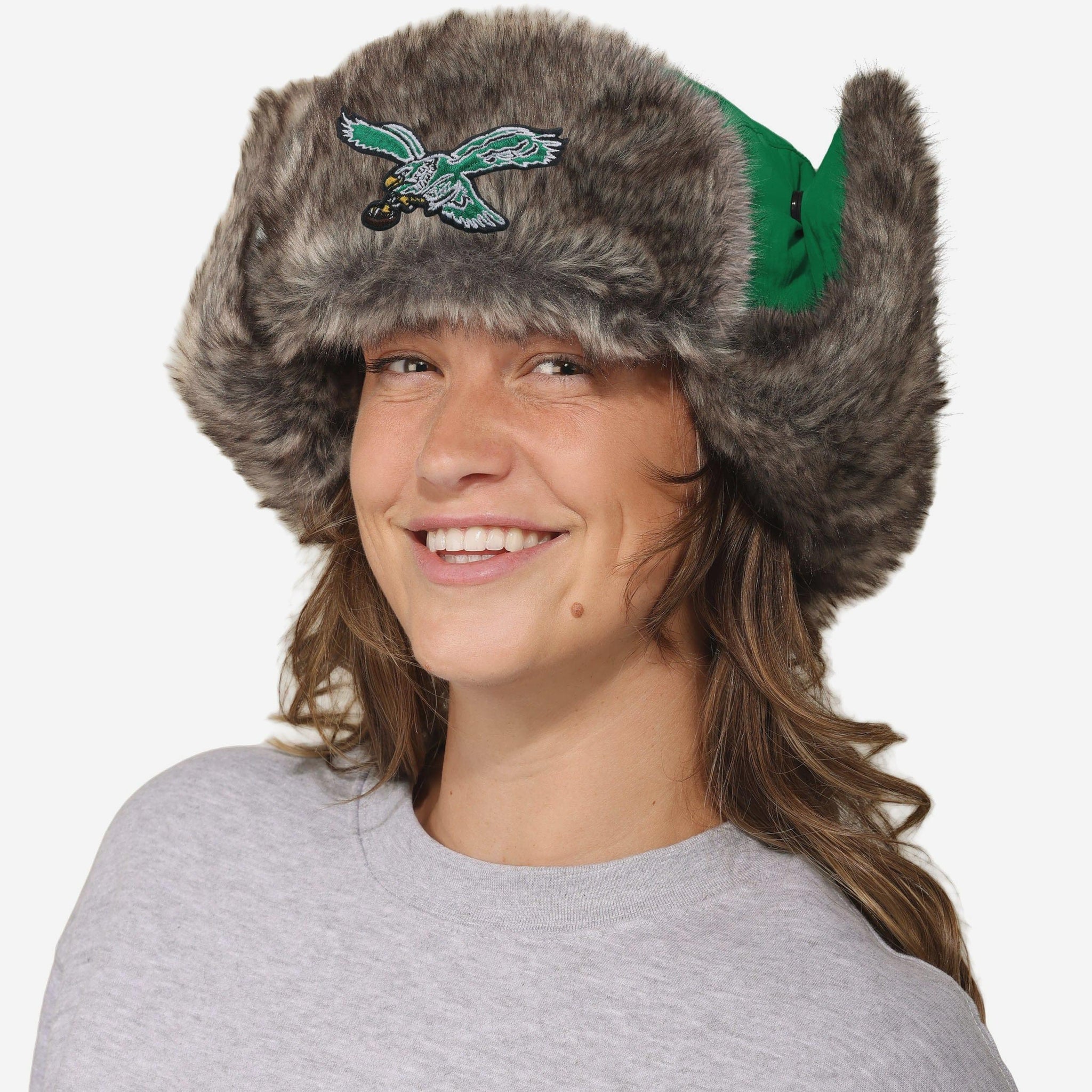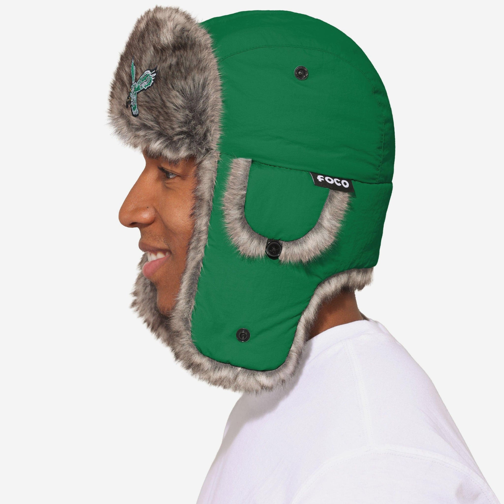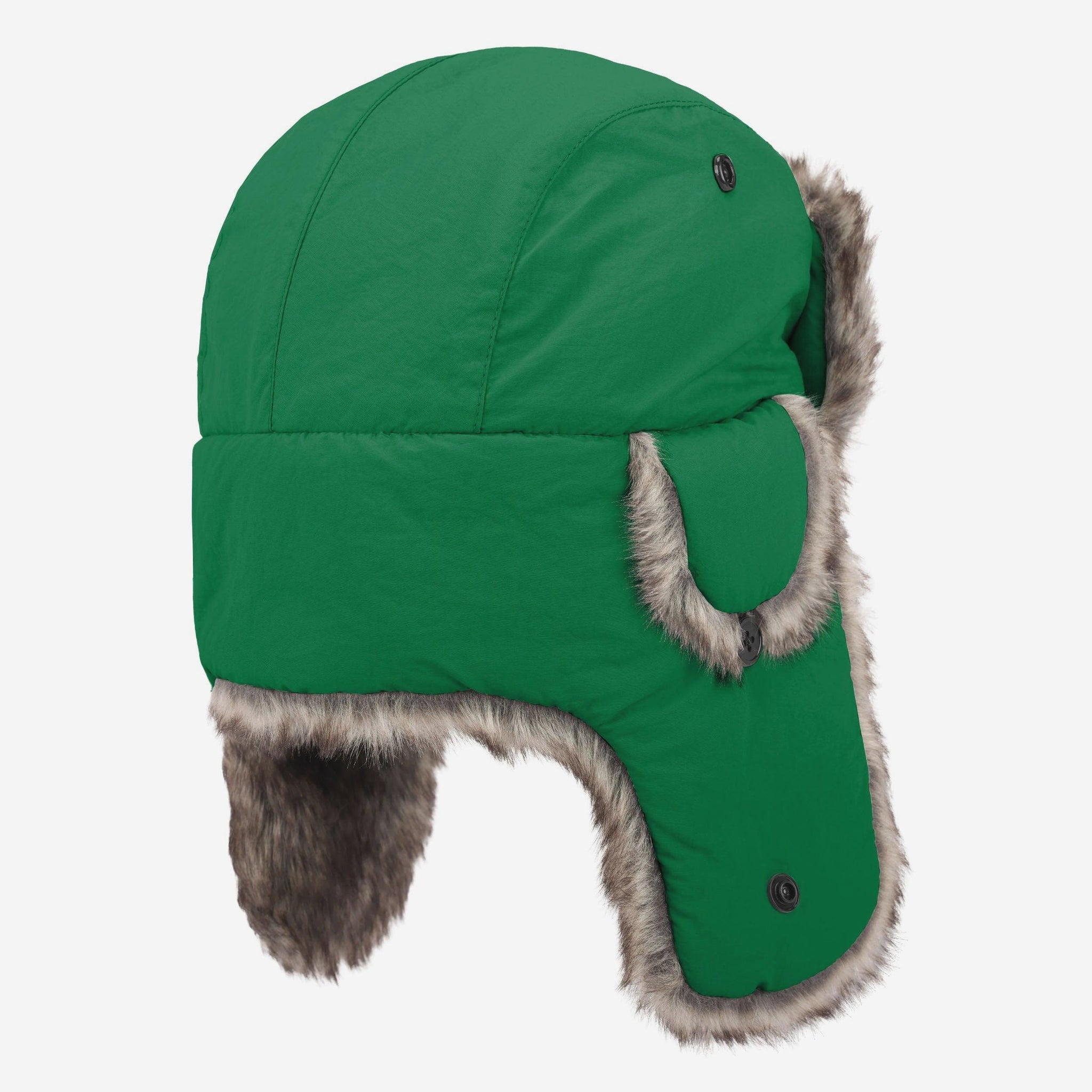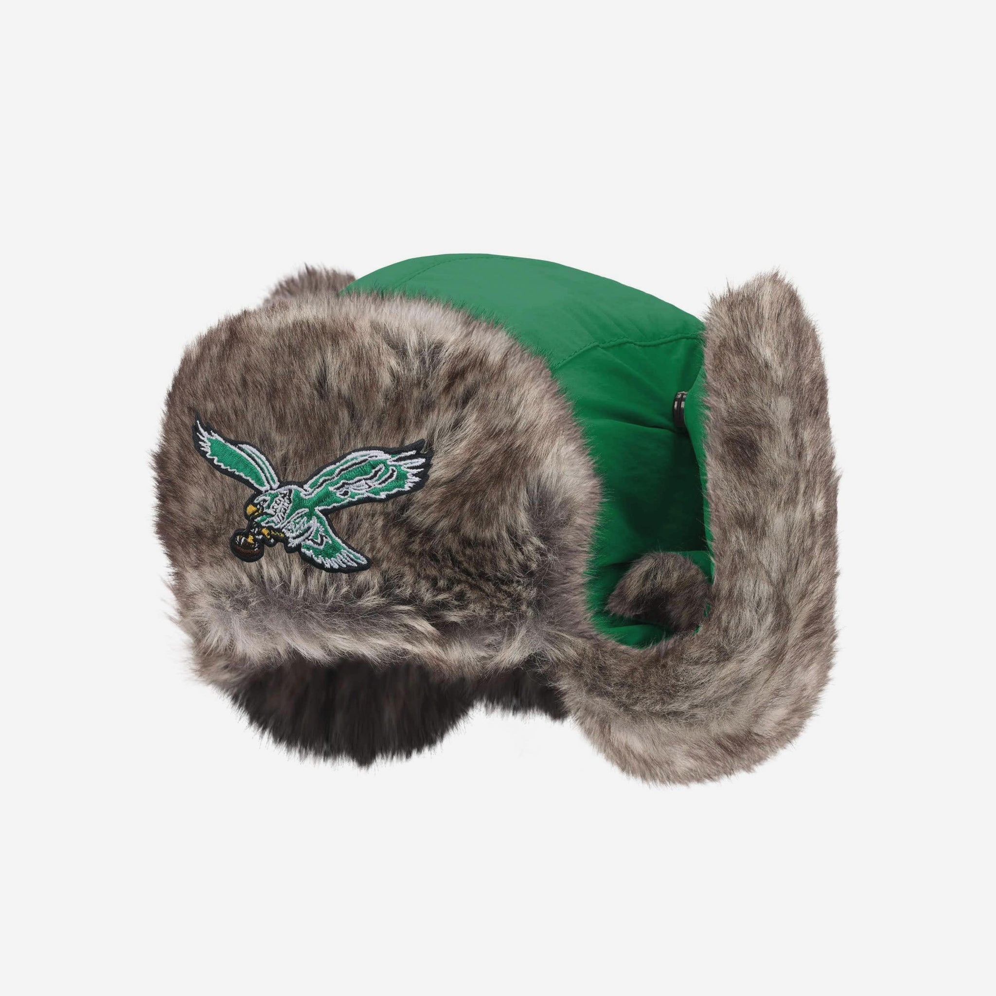 Cold weather? Bring it on. The Philadelphia Eagles Kelly Green Faux Fur Trapper Hat is built for the bleachers and ready to take on the elements. Team colors and a bold embroidered logo make sure your fandom stands out, while the faux fur lining keeps you cozy when the temperature drops.